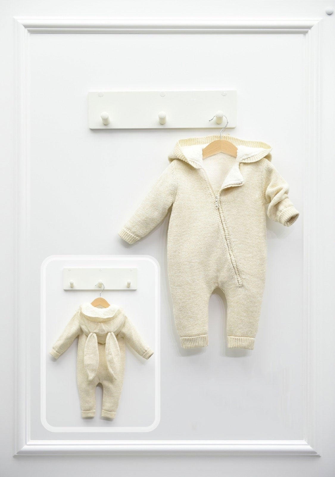 Cream MI LOVES SIGNATURE Knitted BUNNY Pramsuit.
