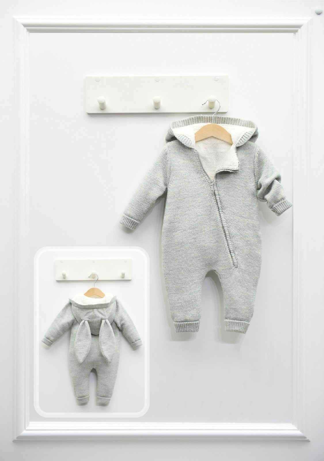 Grey MI LOVES SIGNATURE Knitted BUNNY Pramsuit.