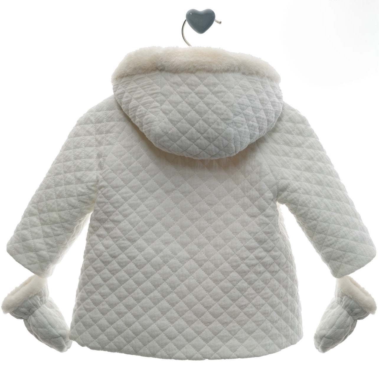 Beautiful White/Cream Hooded Jacket and mittens 2 piece set.