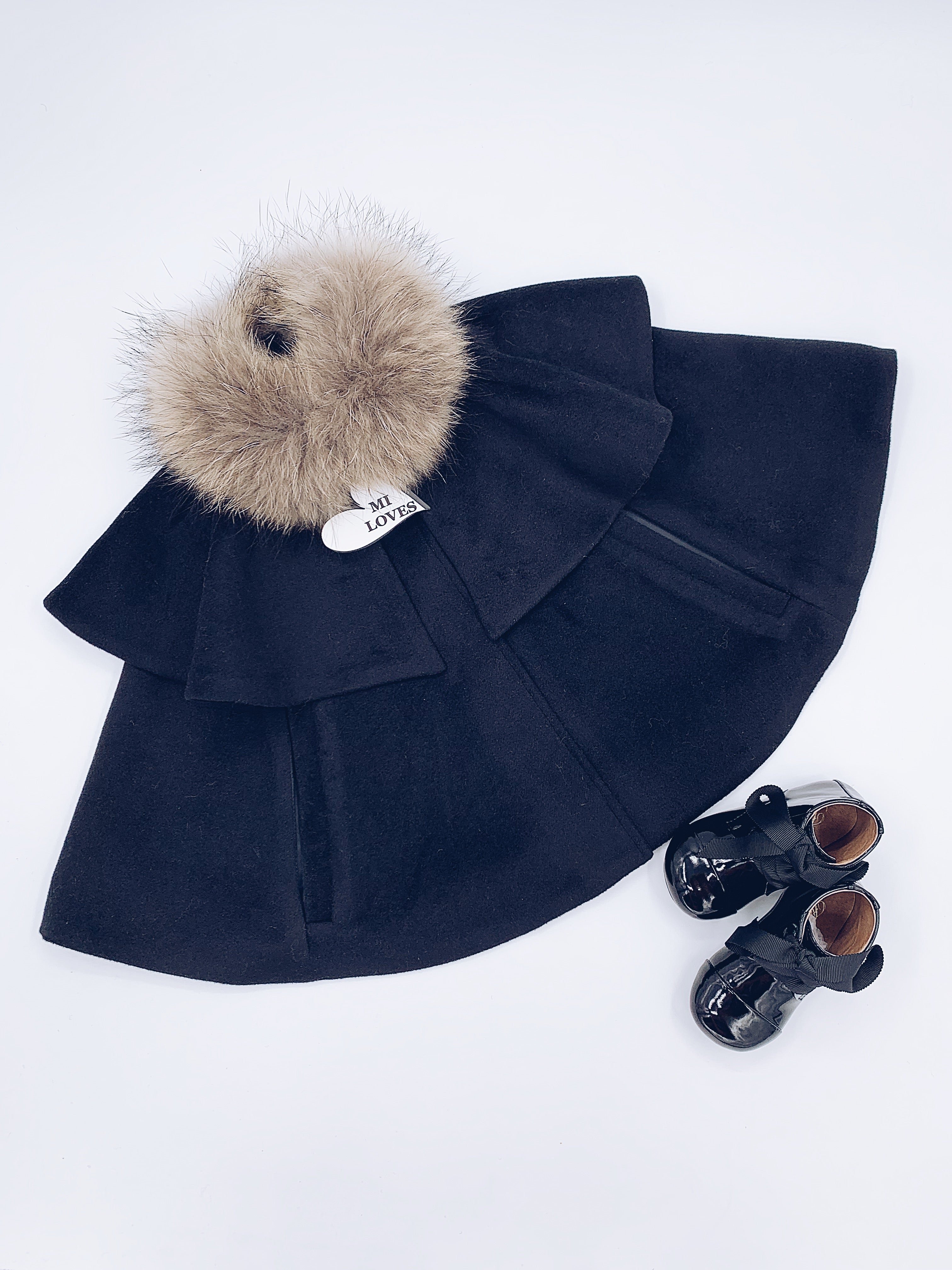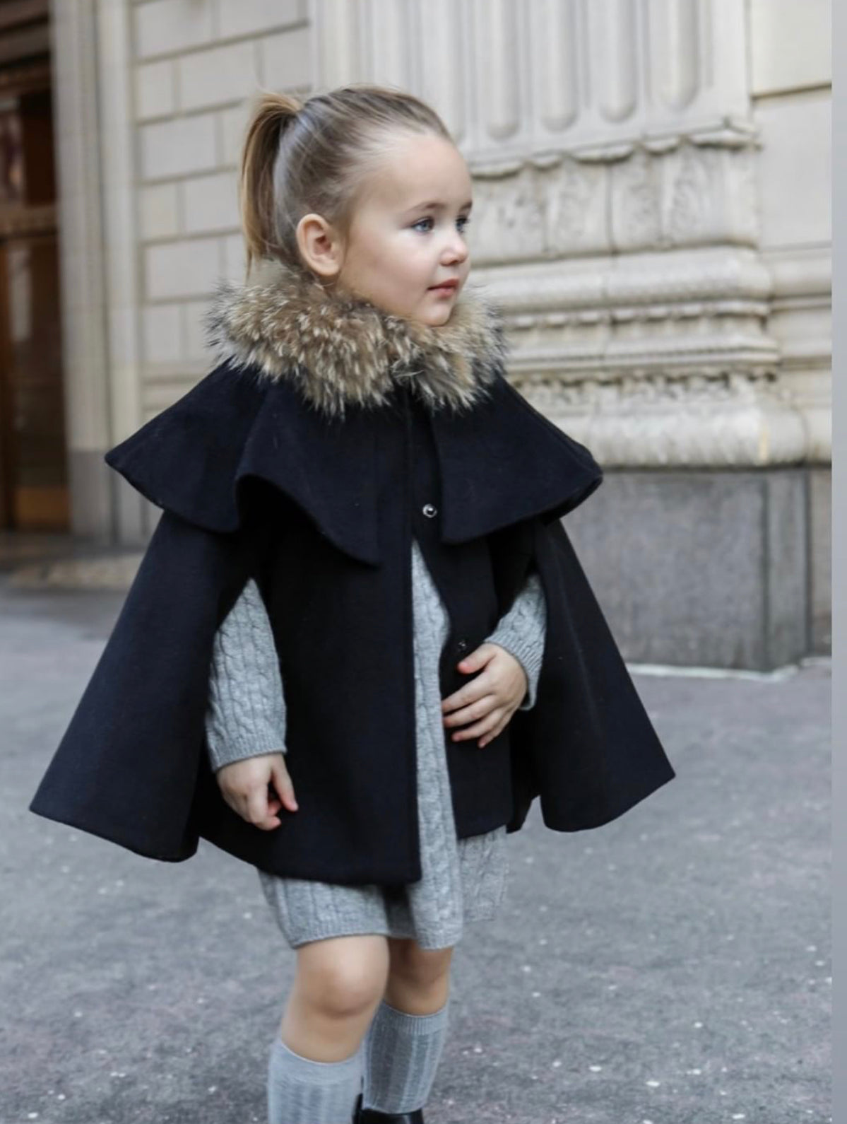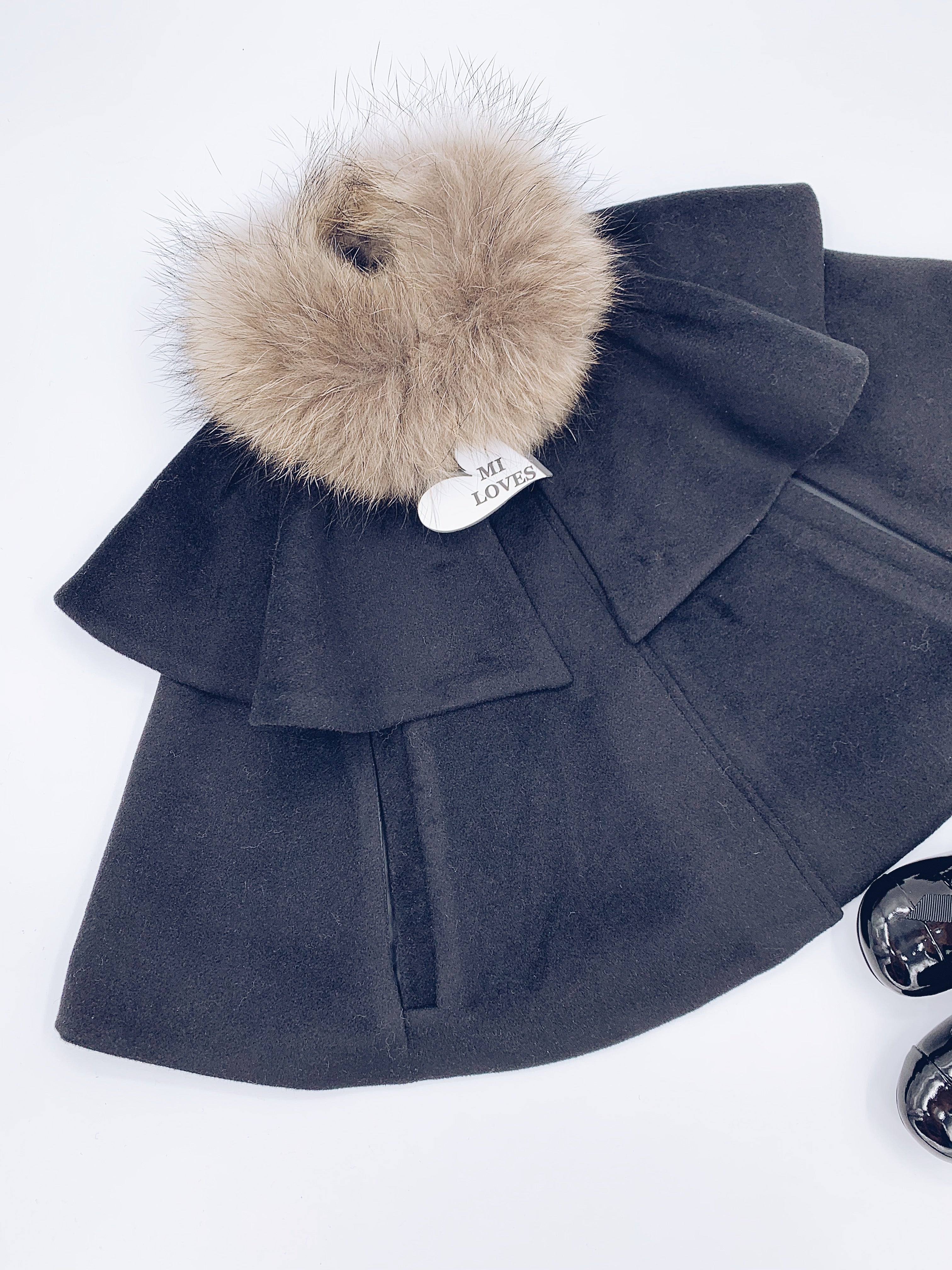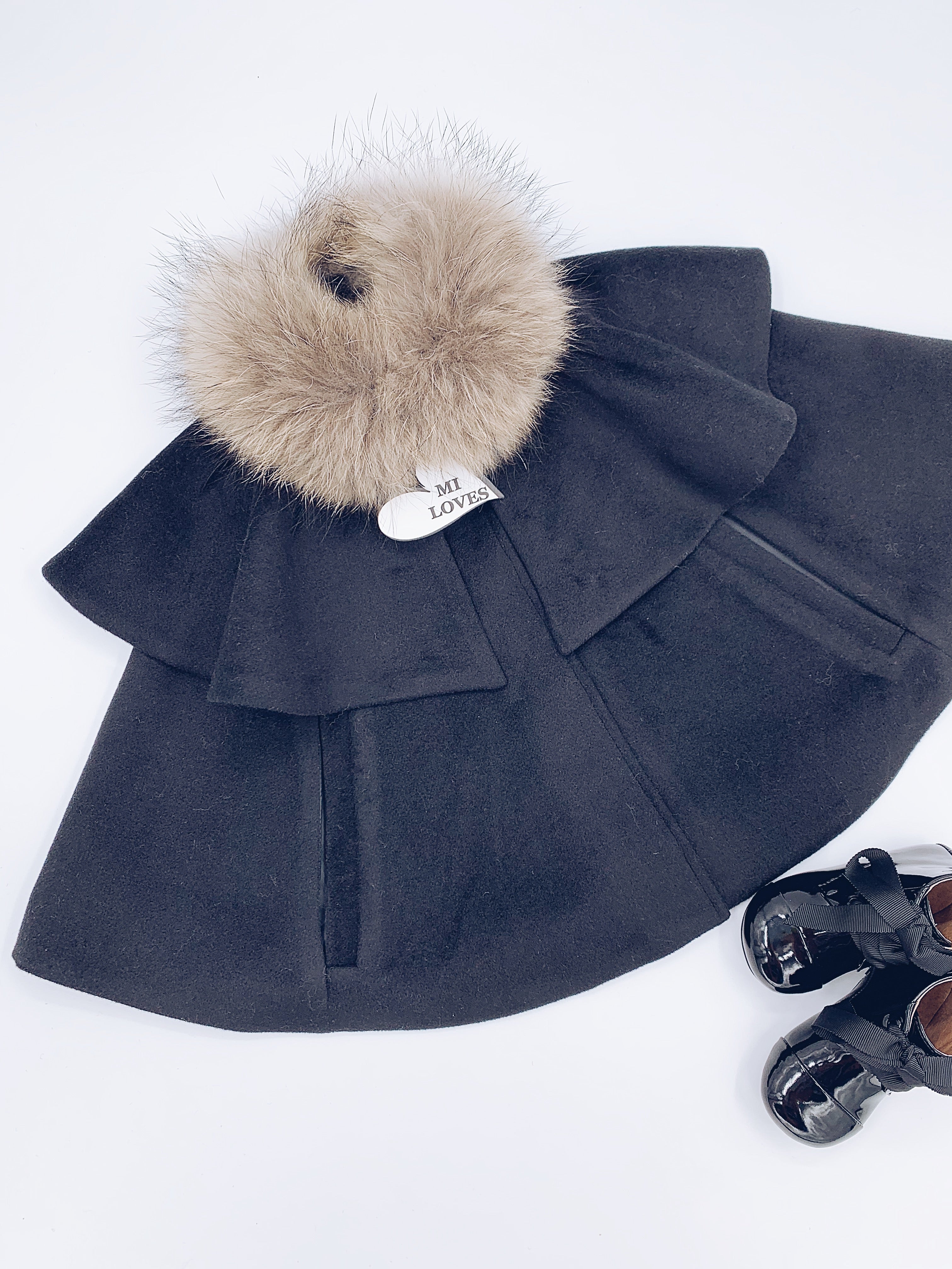 Black MI LOVES SIGNATURE LUXURIOUS Cashmere Cape With Racoon Fur Trim!!