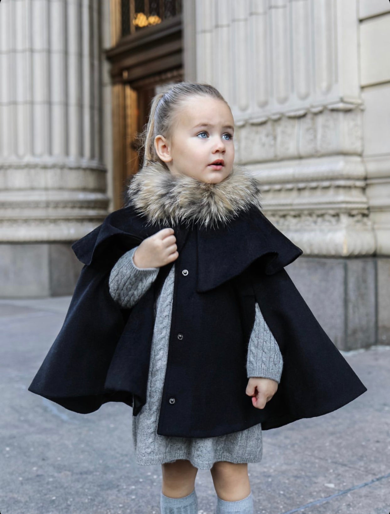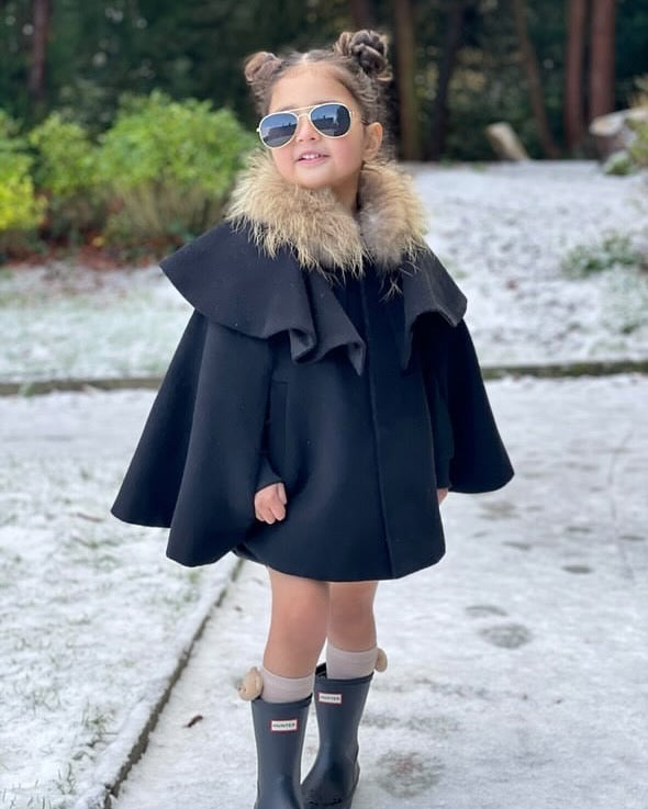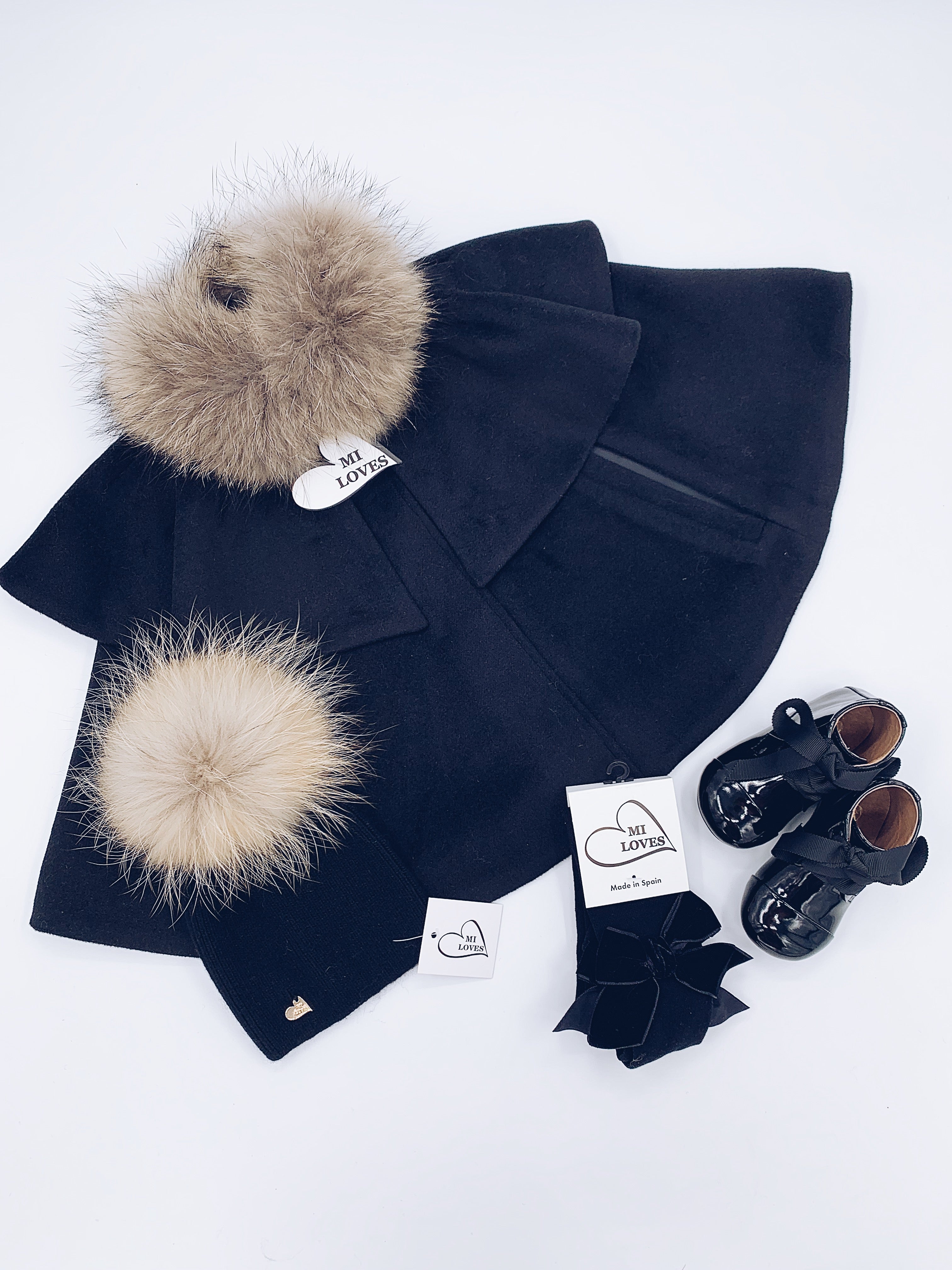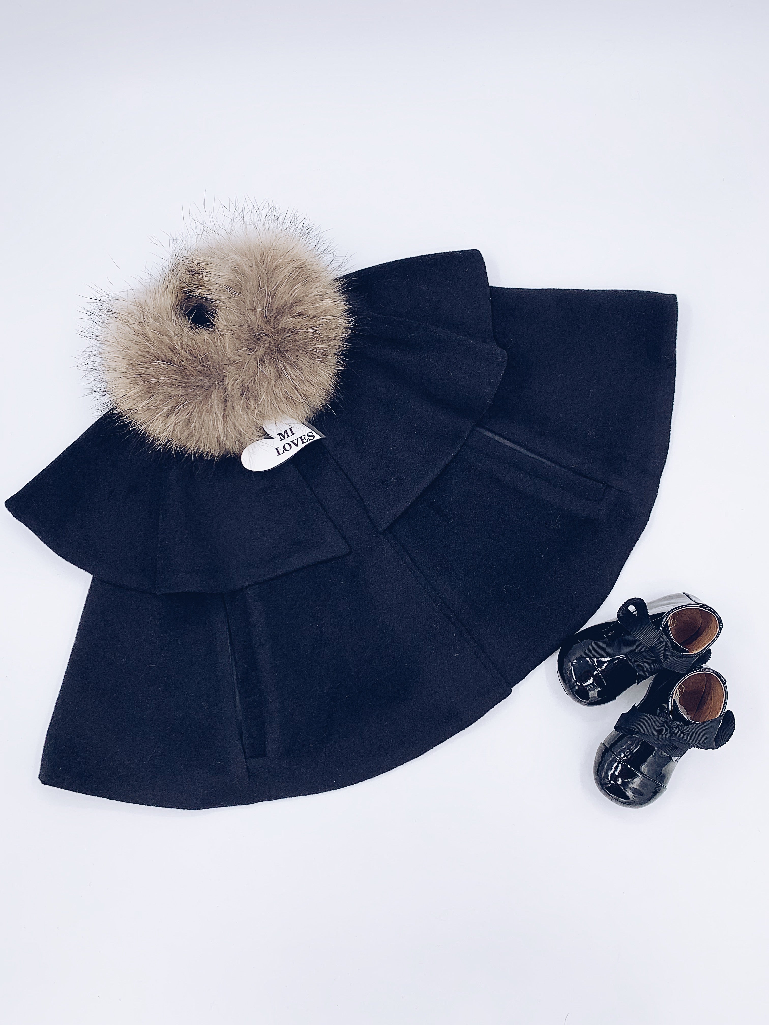 Black MI LOVES SIGNATURE LUXURIOUS Cashmere Cape With Racoon Fur Trim!!