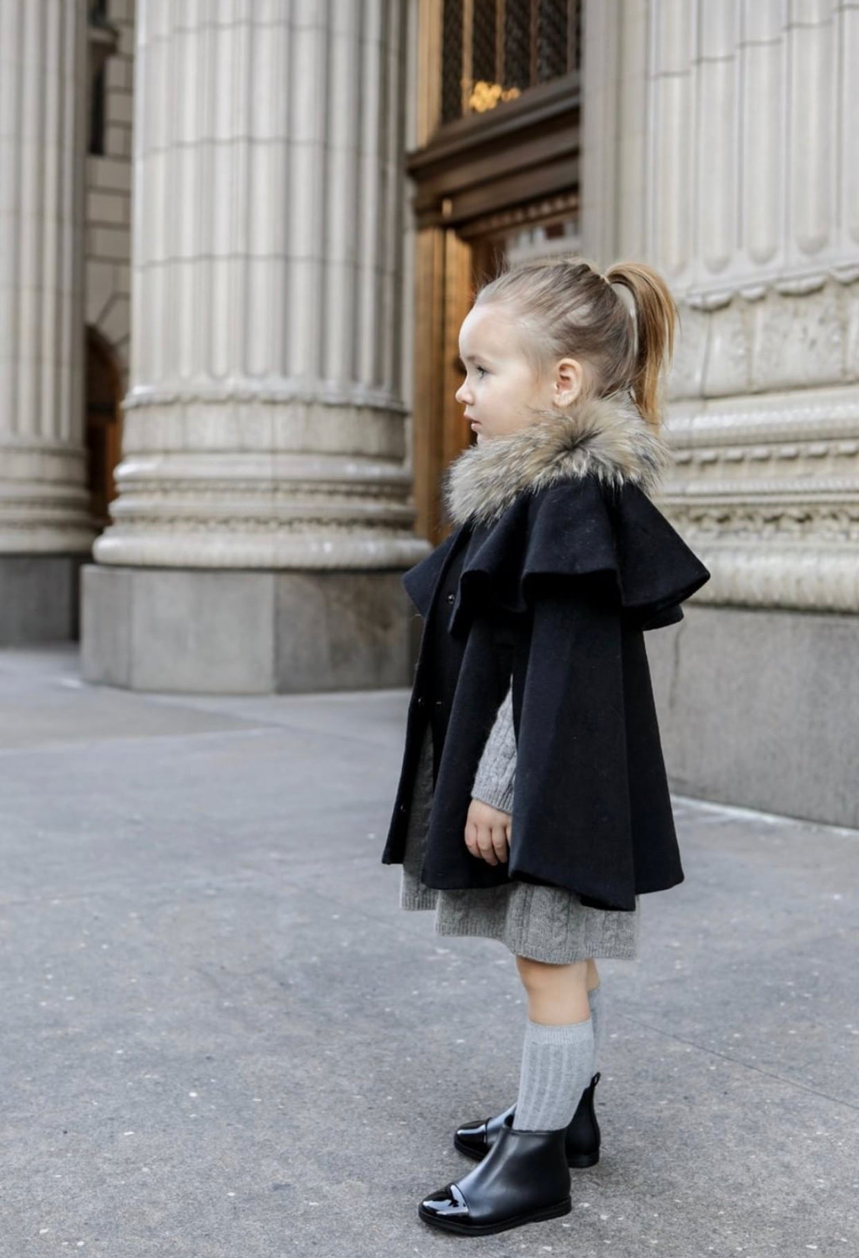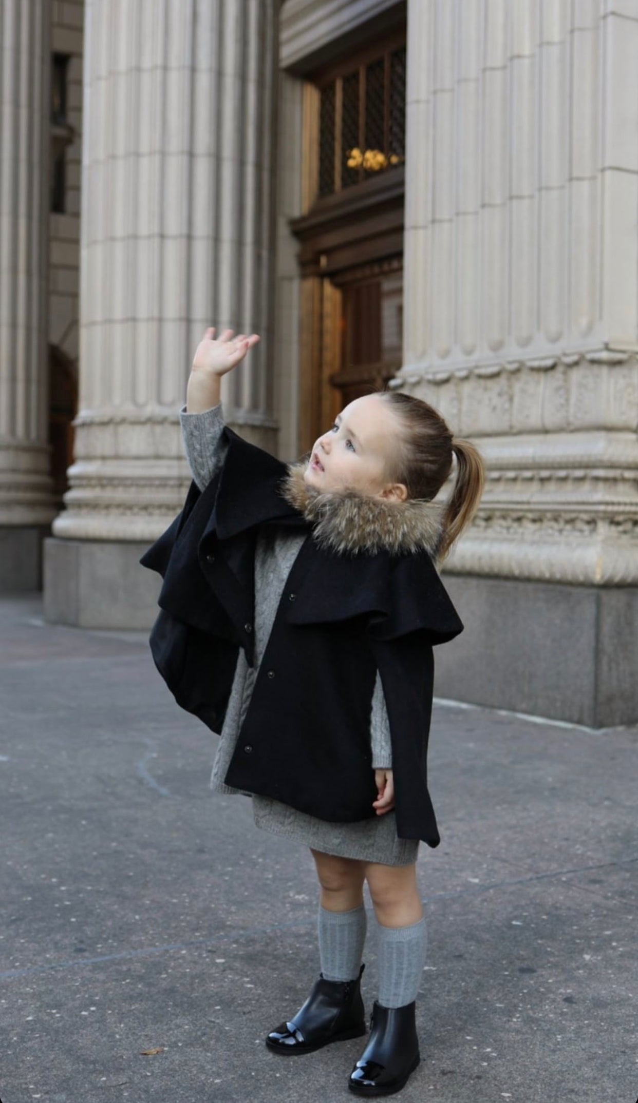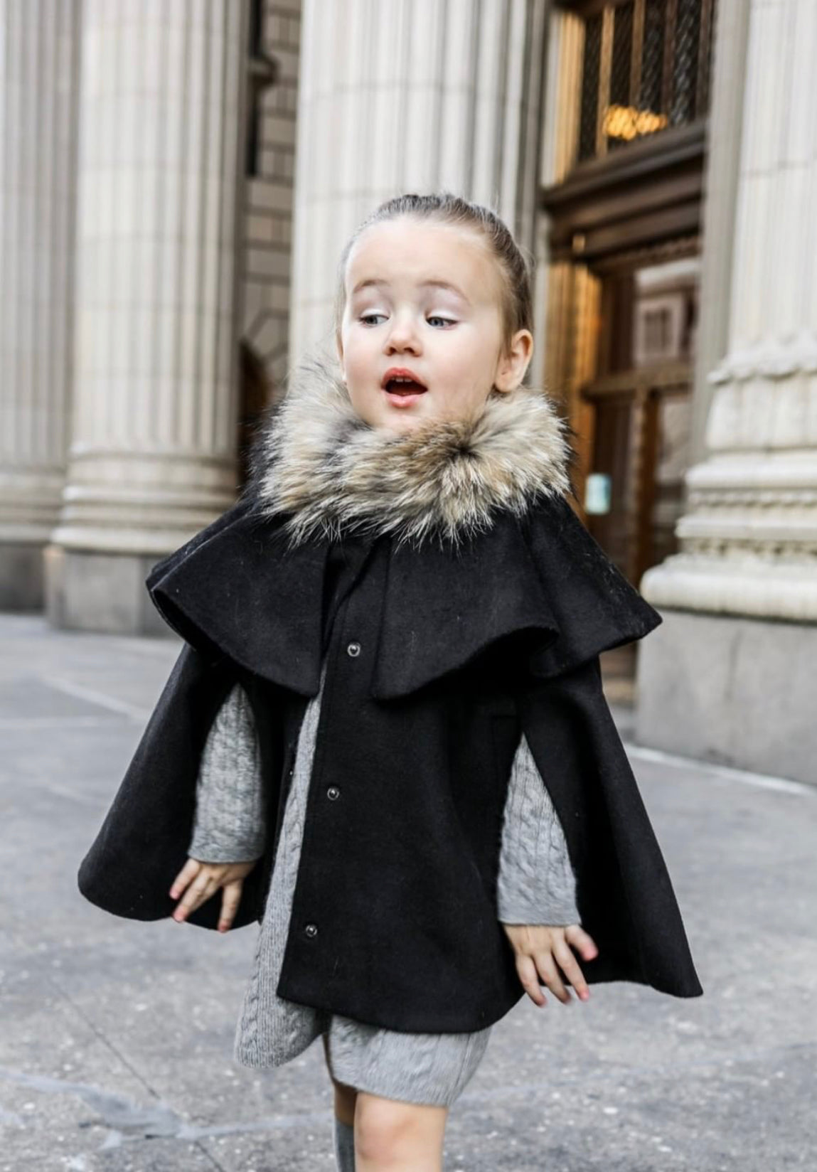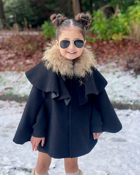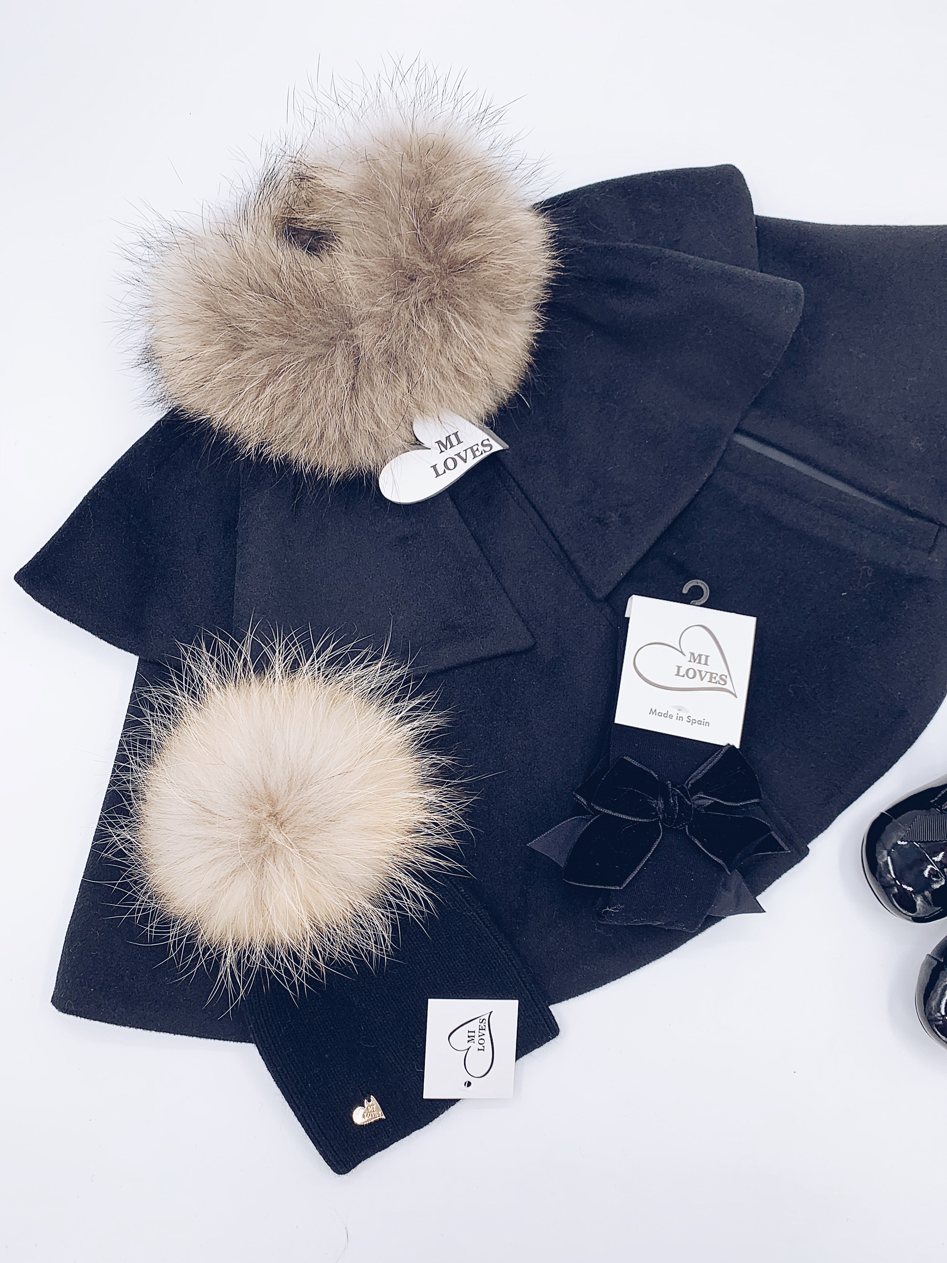 Black MI LOVES SIGNATURE LUXURIOUS Cashmere Cape With Racoon Fur Trim!!