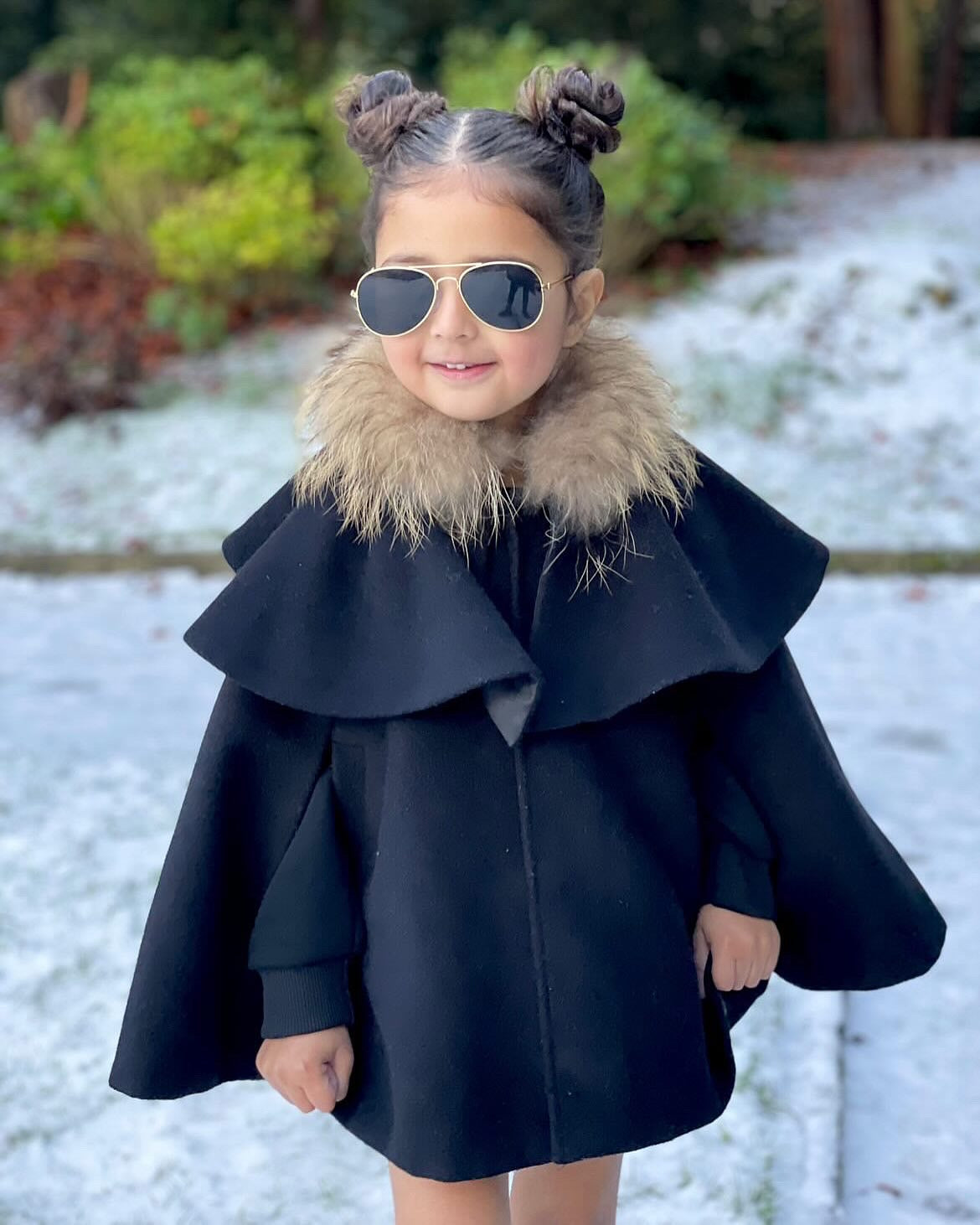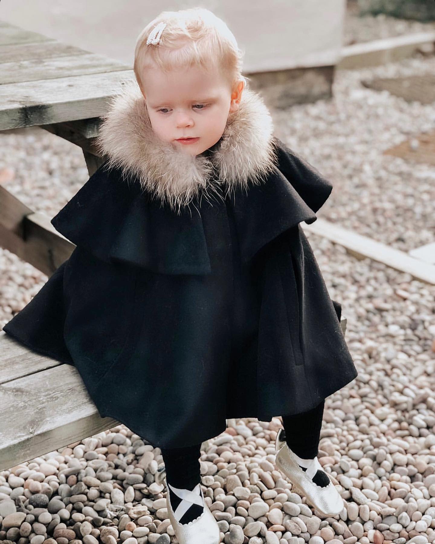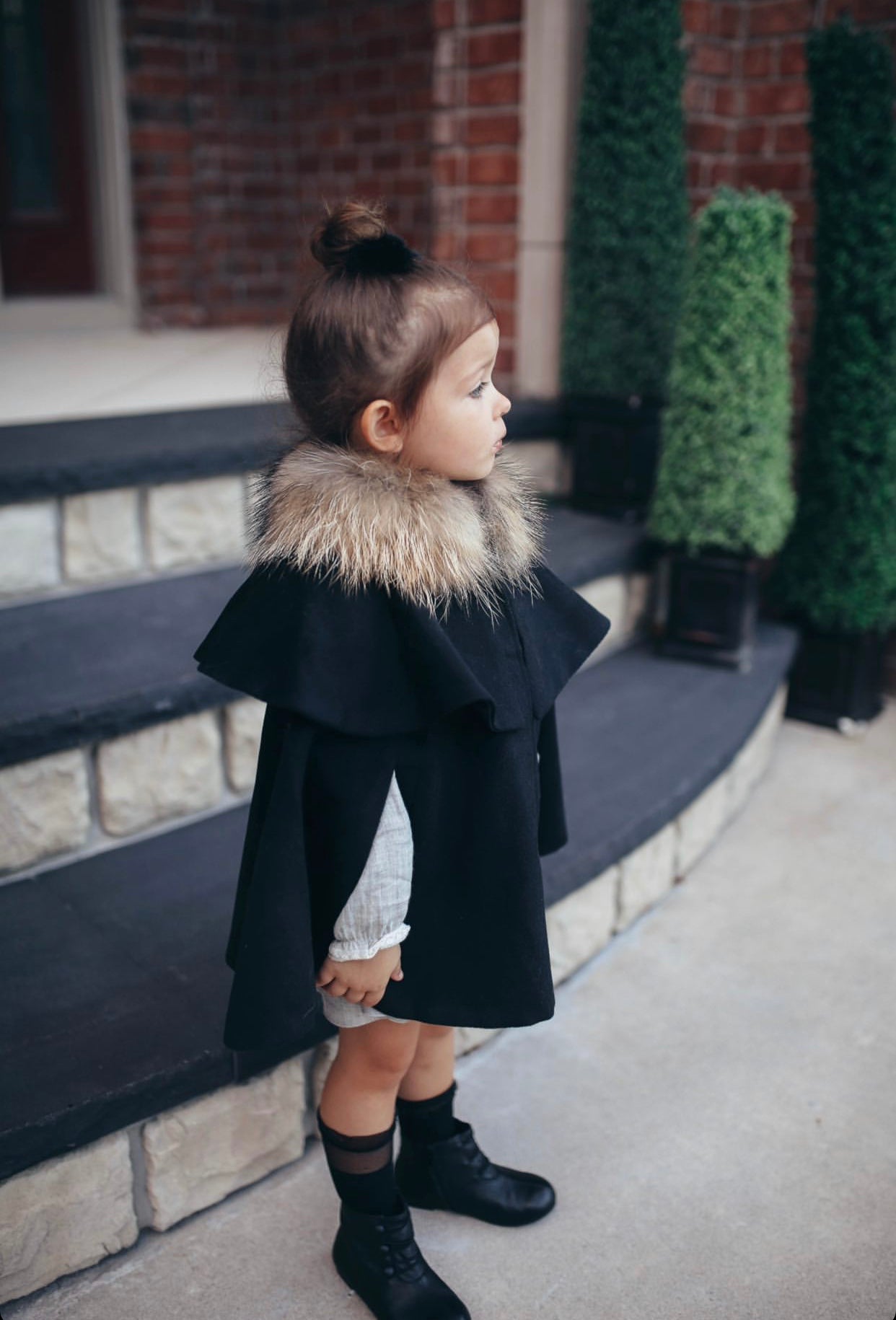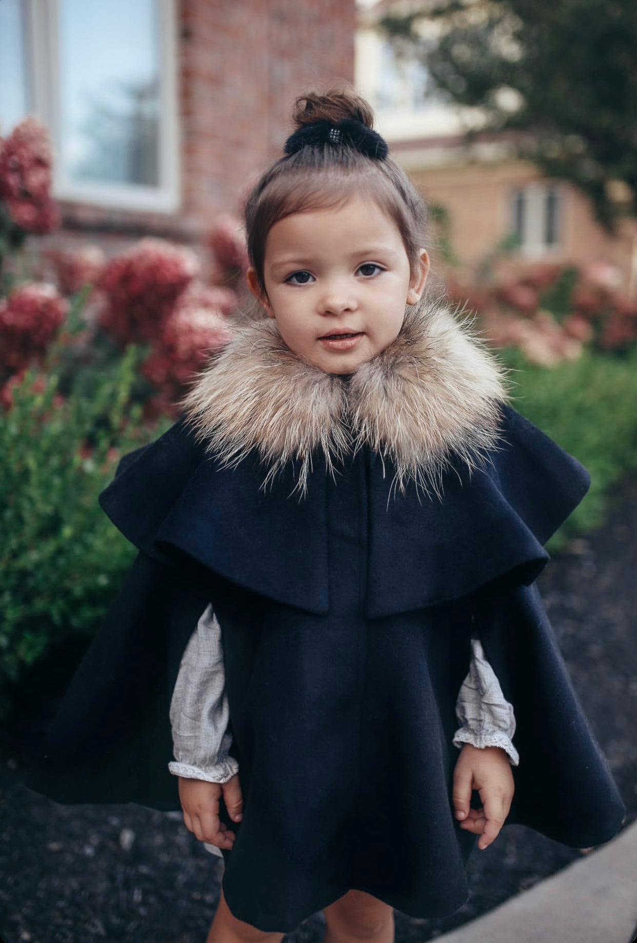 Black MI LOVES SIGNATURE LUXURIOUS Cashmere Cape With Racoon Fur Trim!!