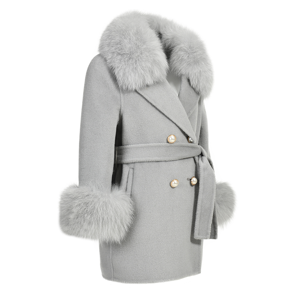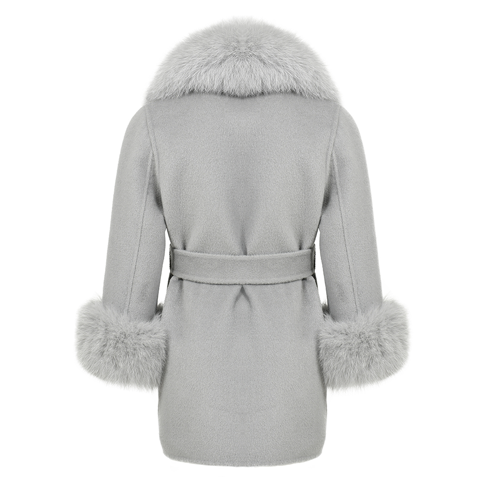 Removable Fox fur collar and cuffs.