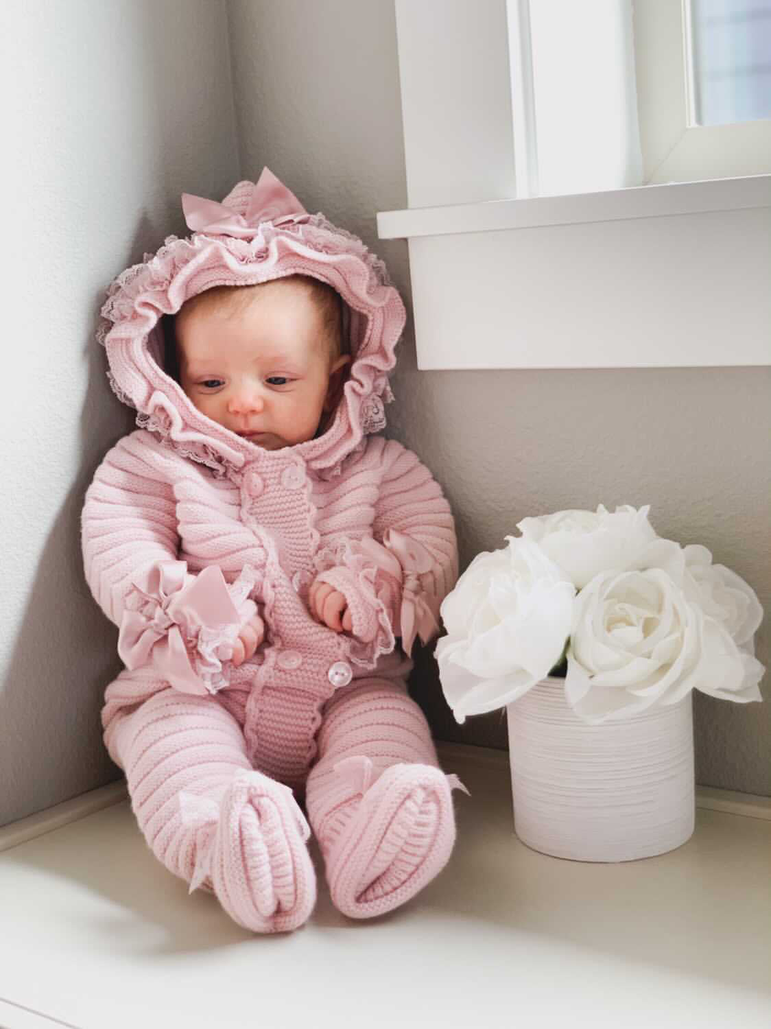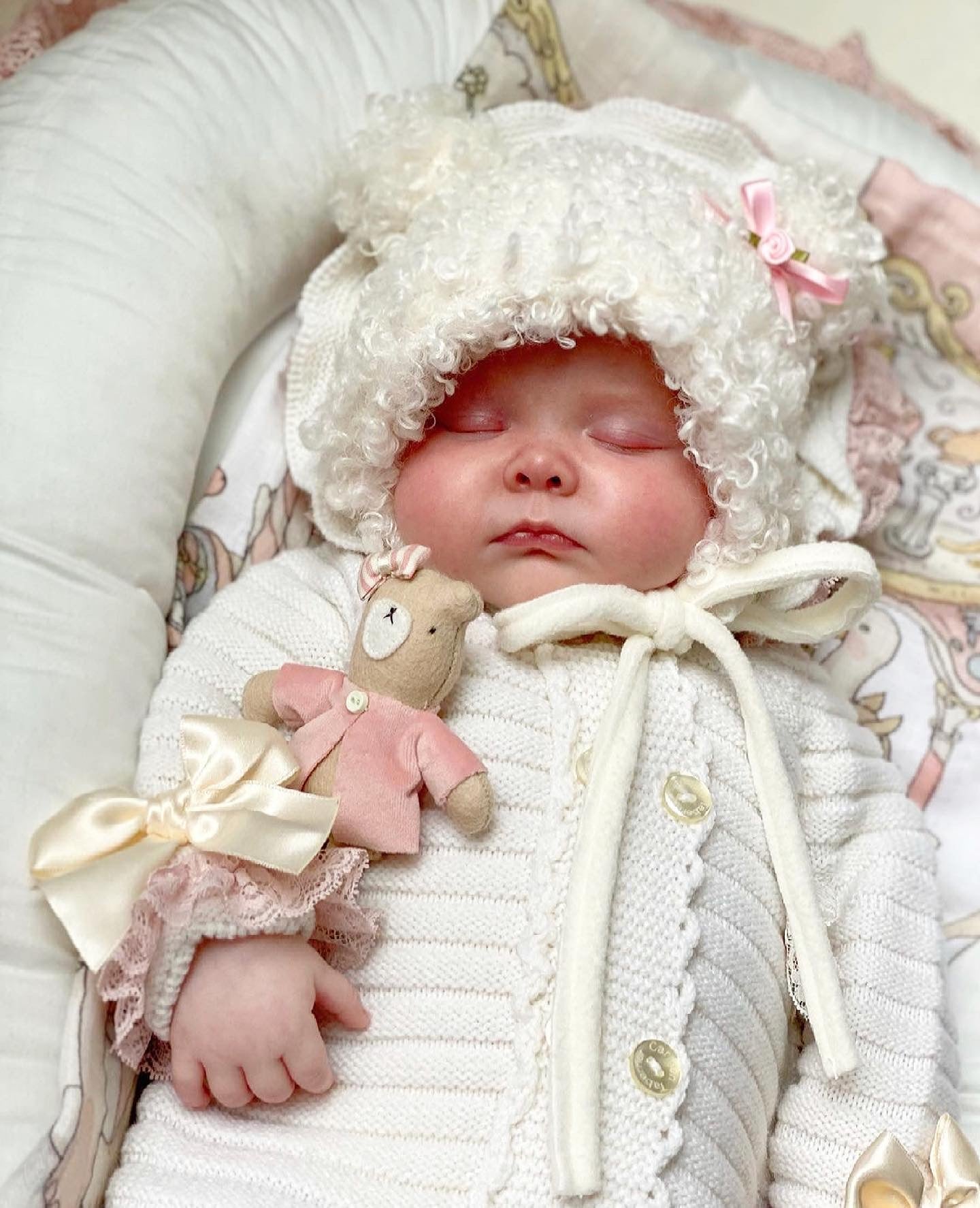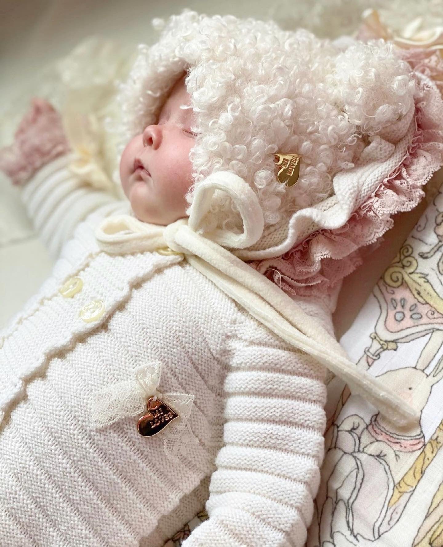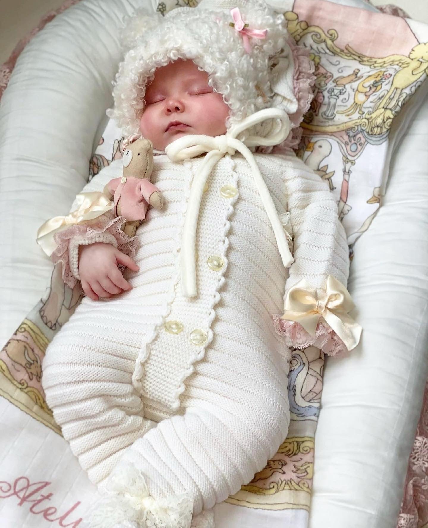 MI LOVES SIGNATURE Luxurious knitted Pramsuit with beautiful Lace and bow details