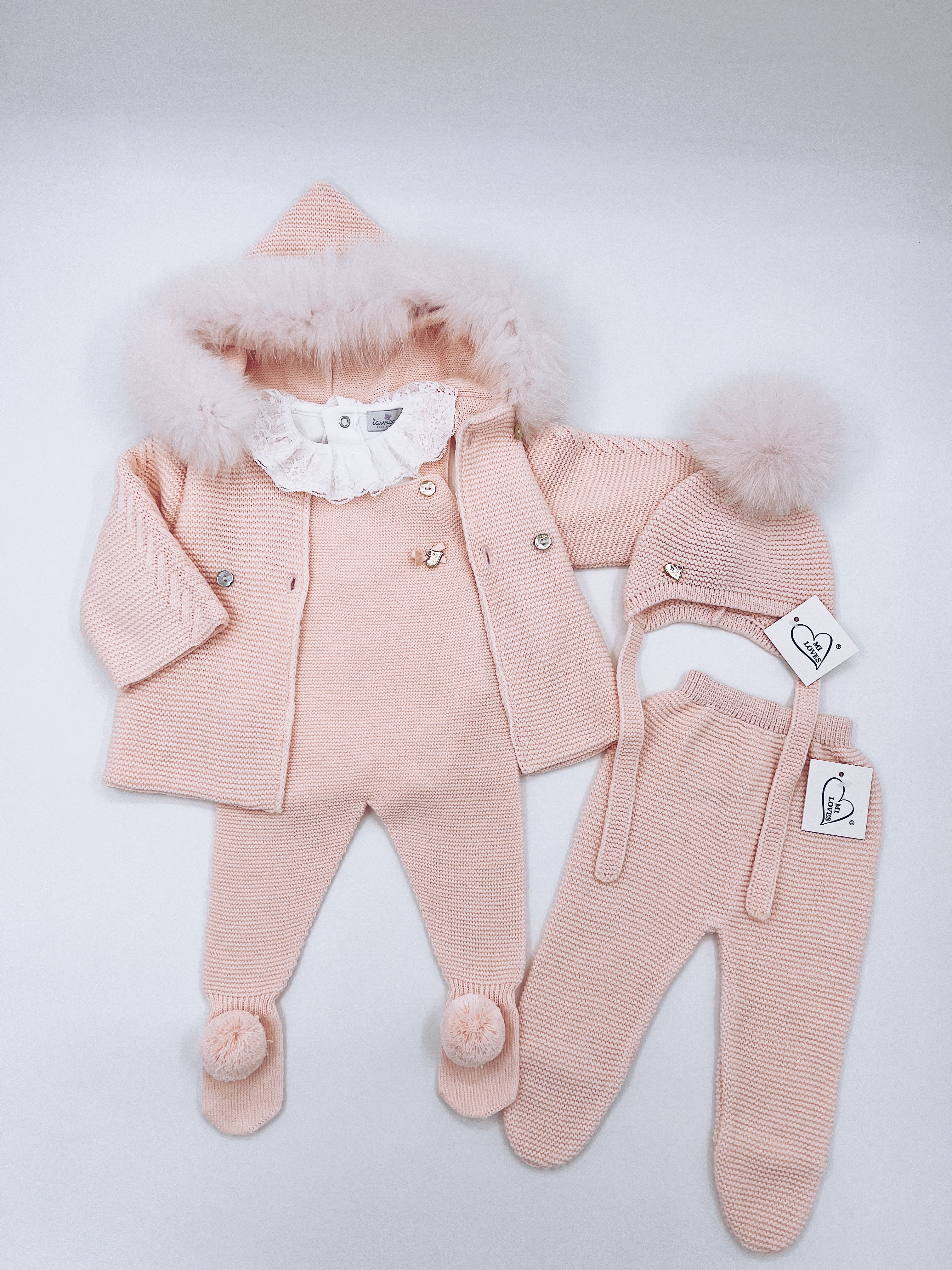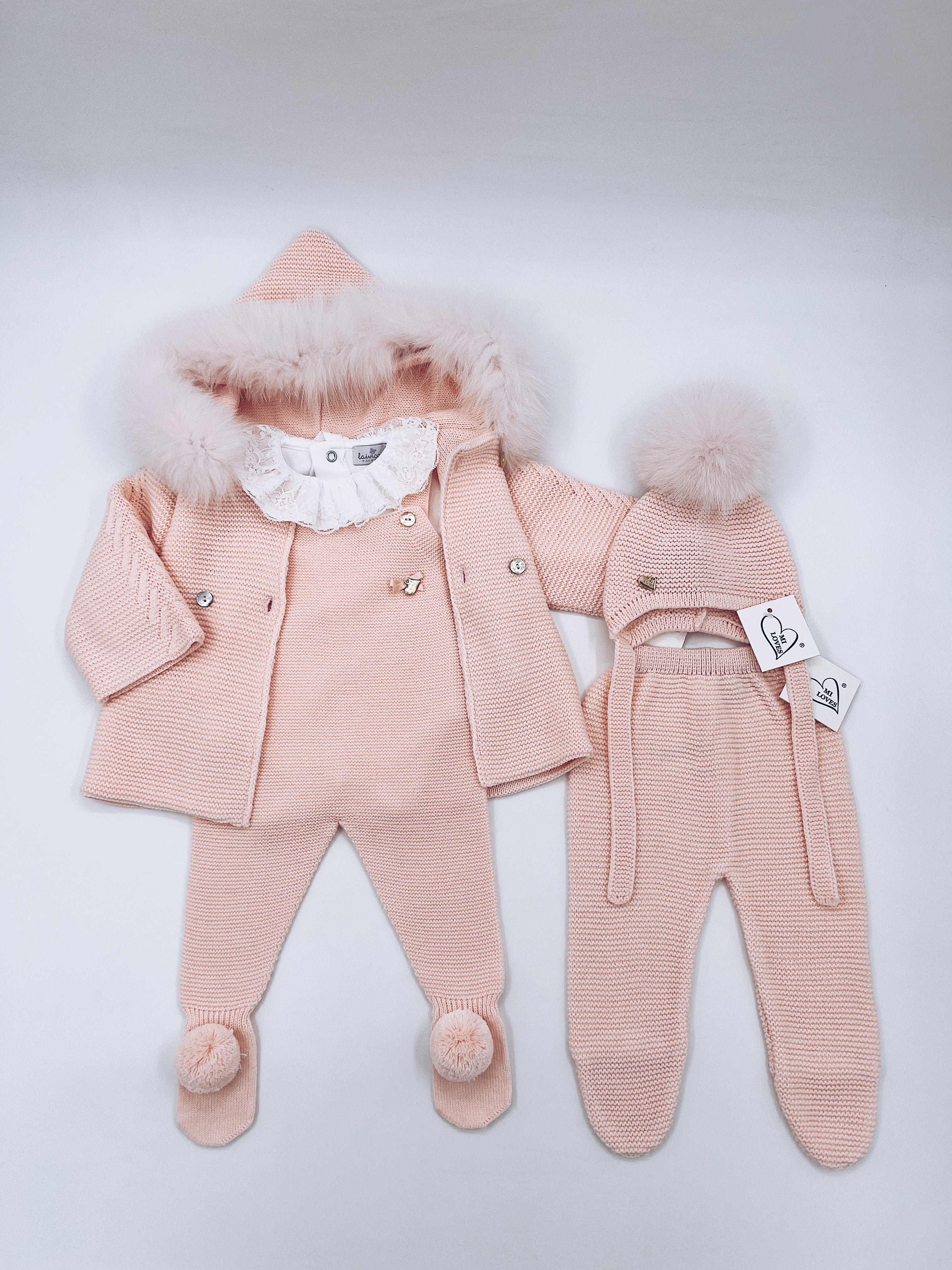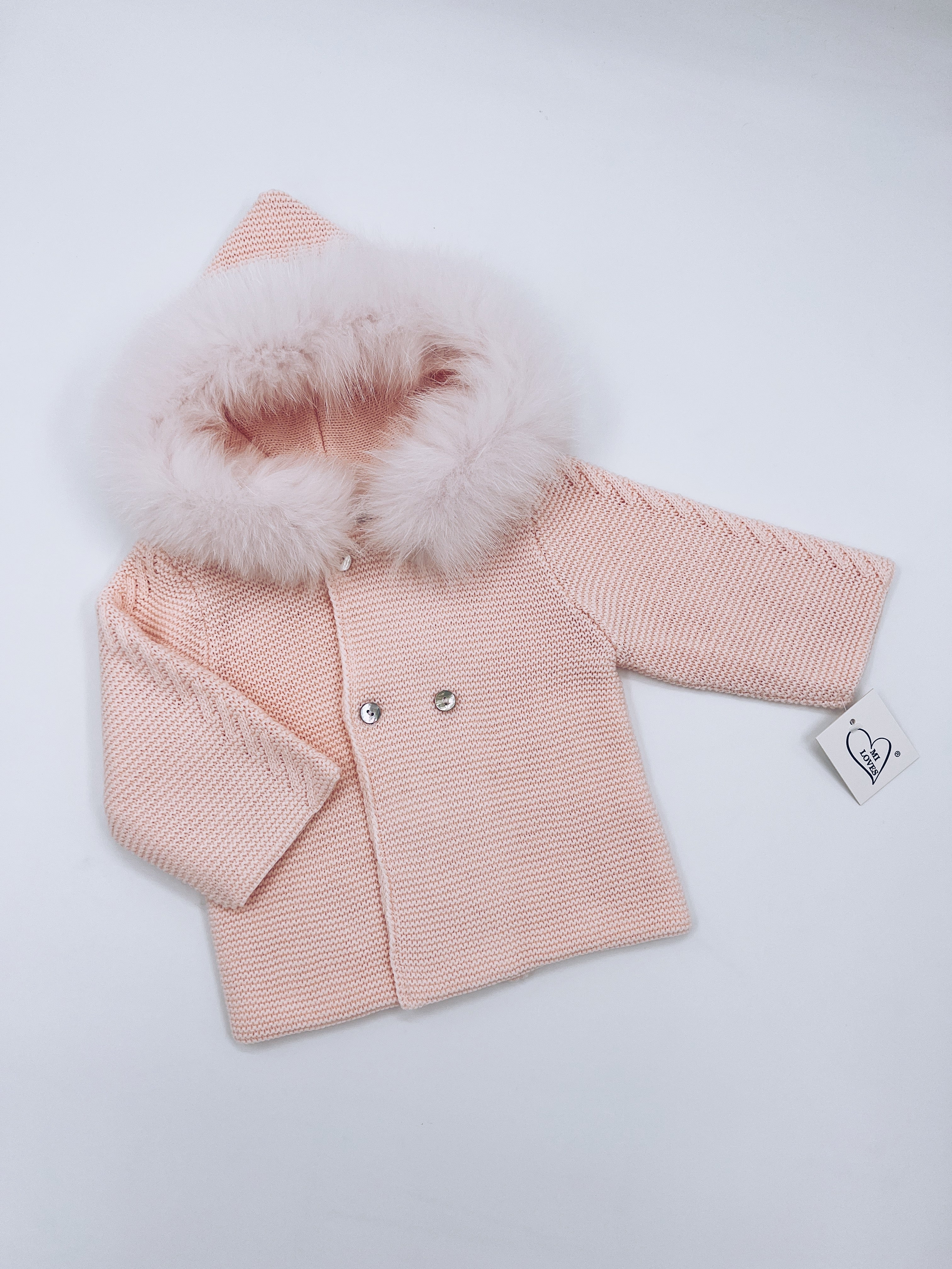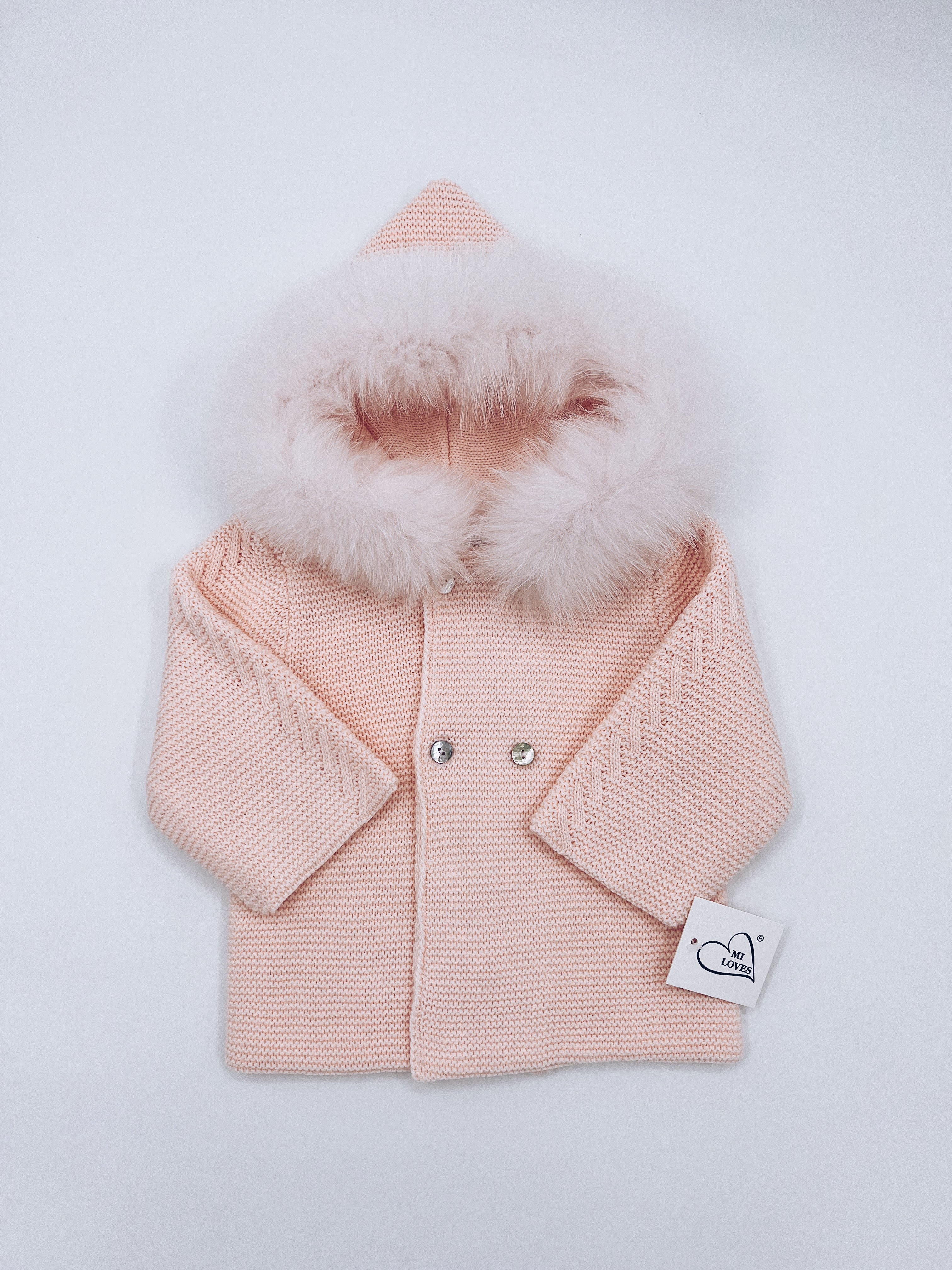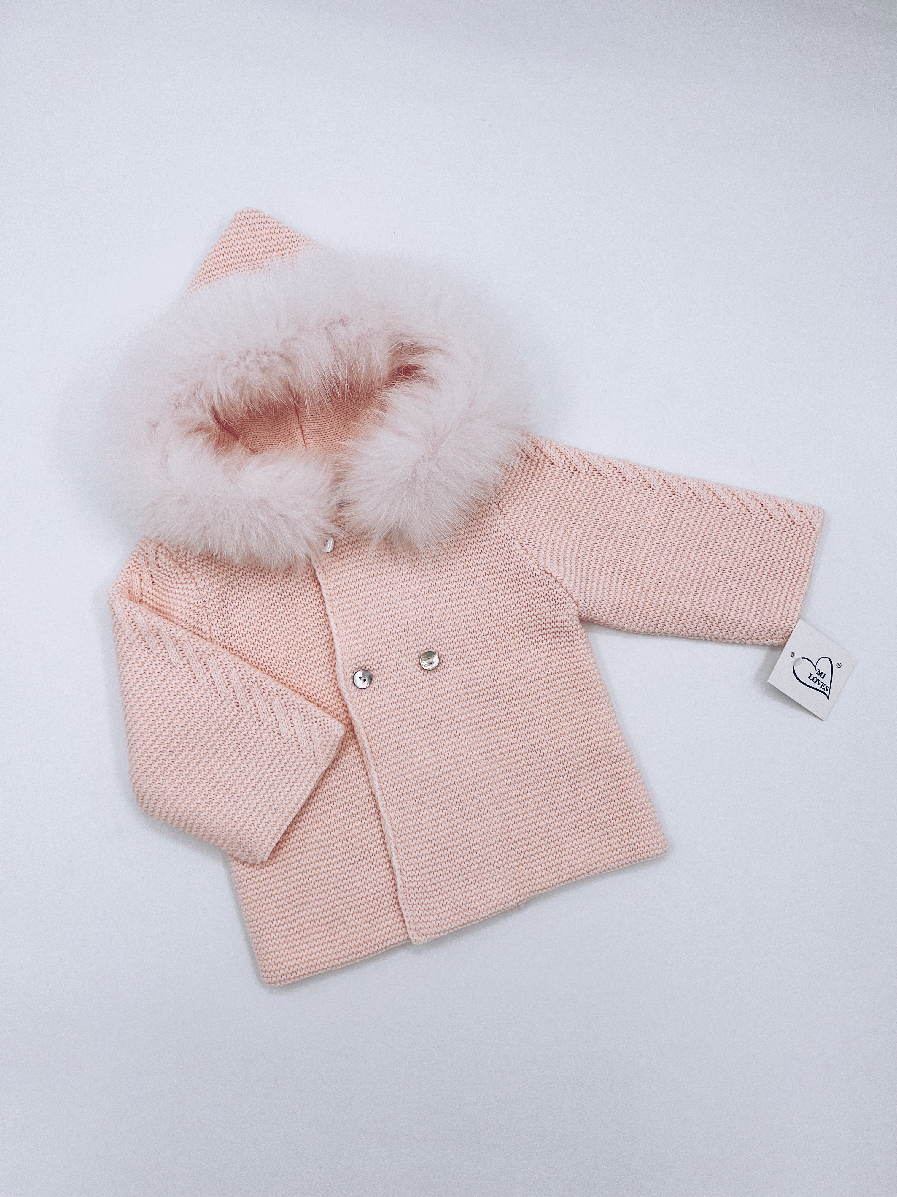MI LOVES Beautiful Pink Knitted Cardigan with Luxurious fur trim.