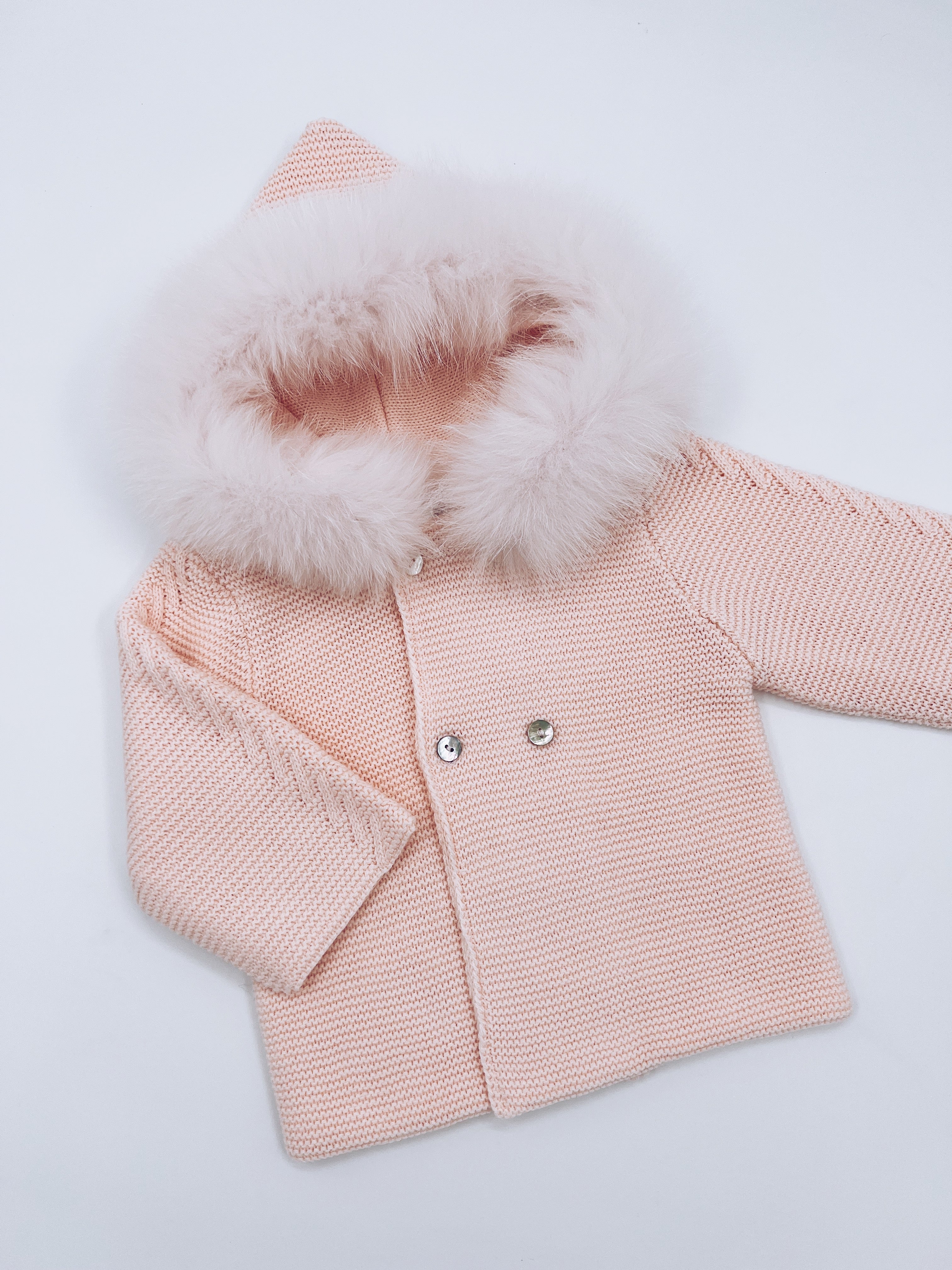 Beautiful Pink Knitted Cardigan with Luxurious fur trim.