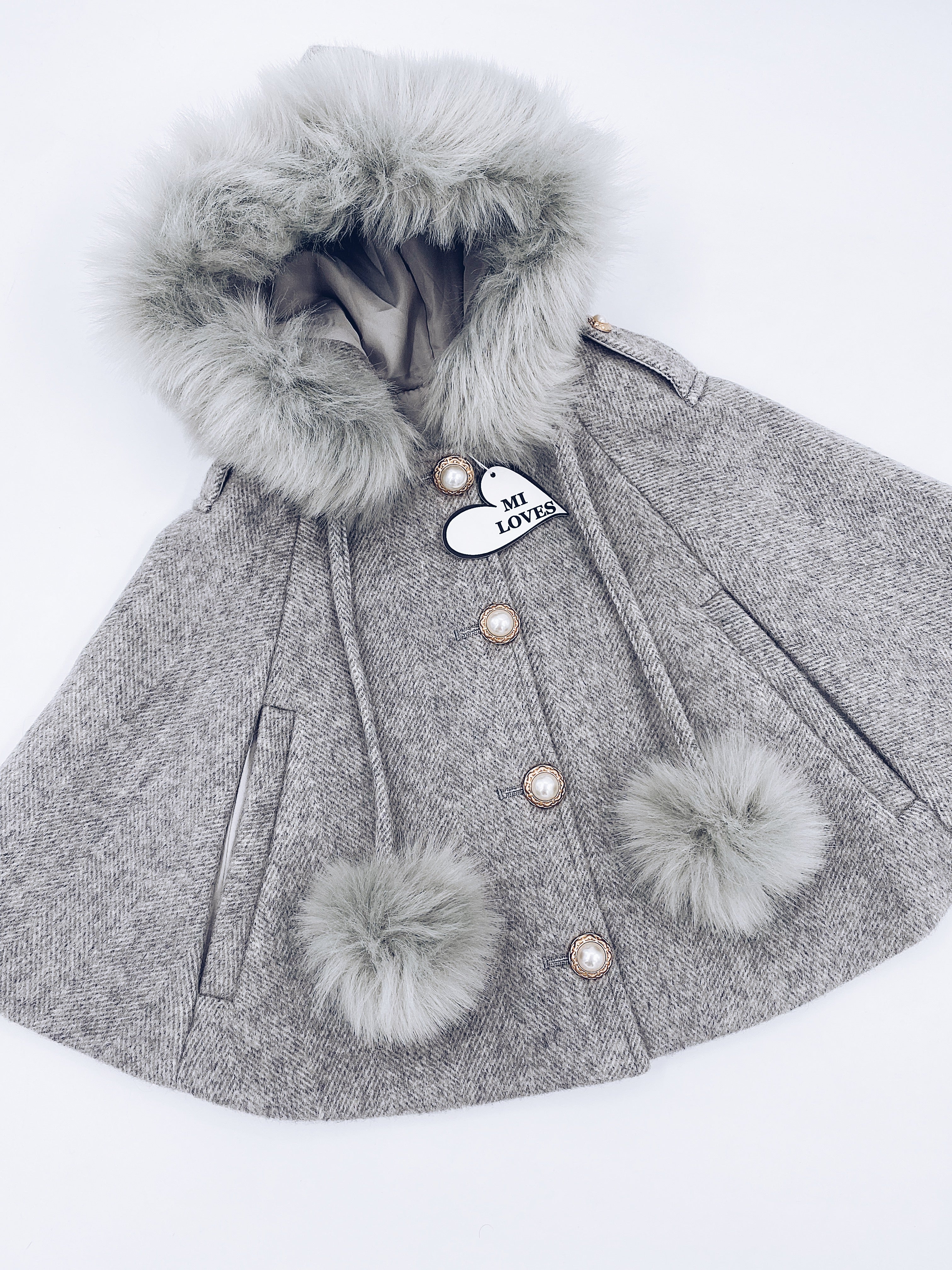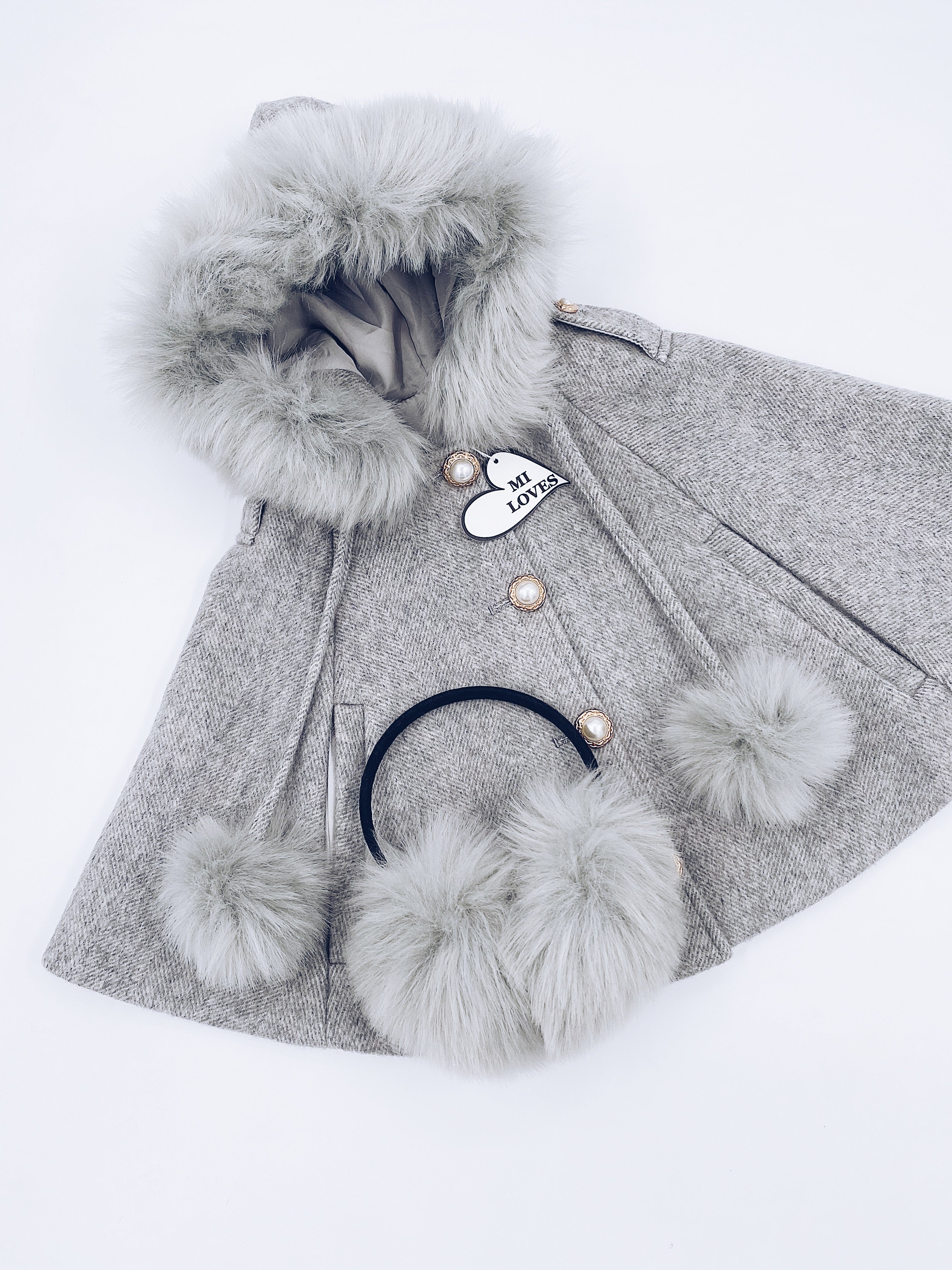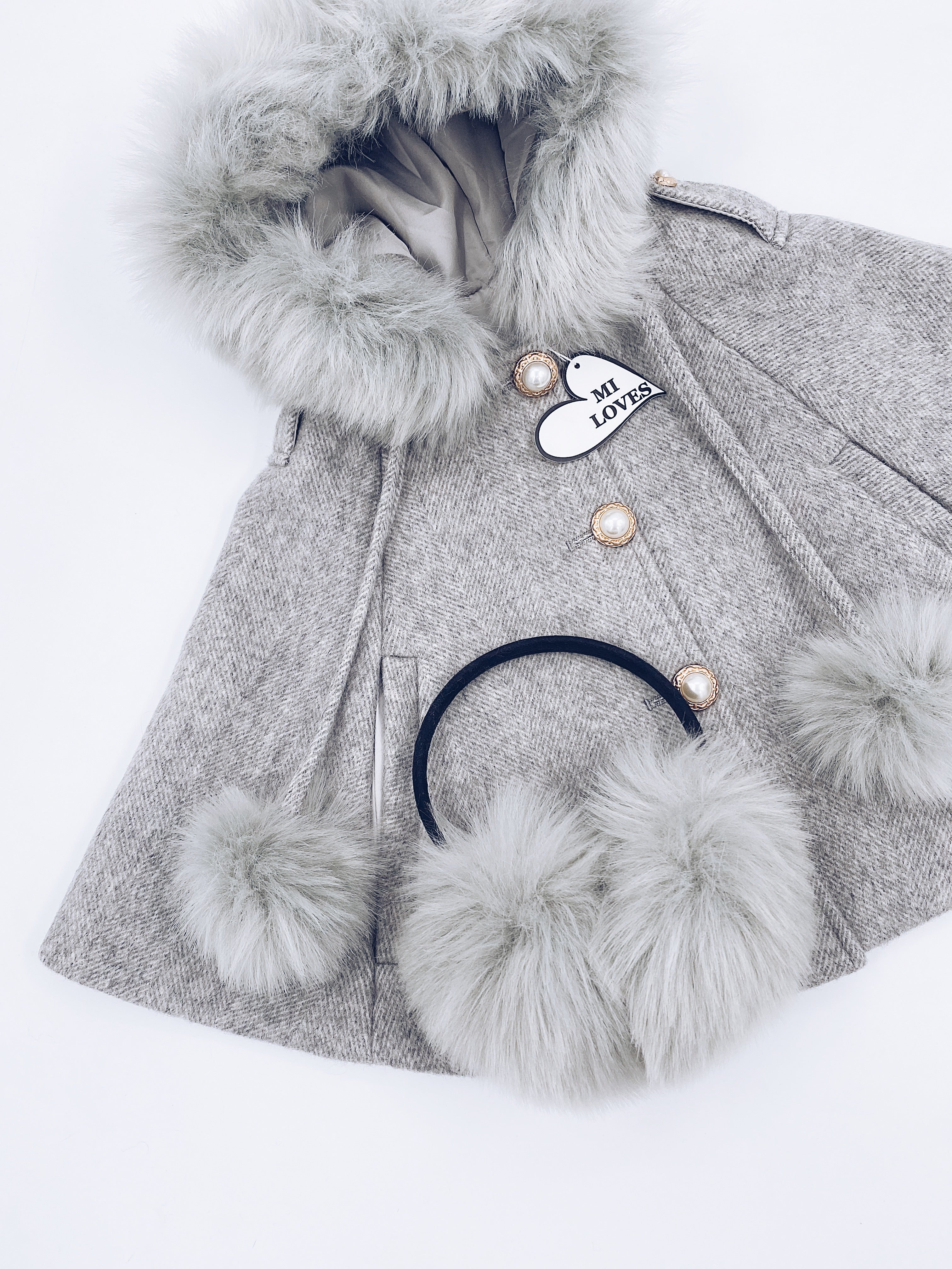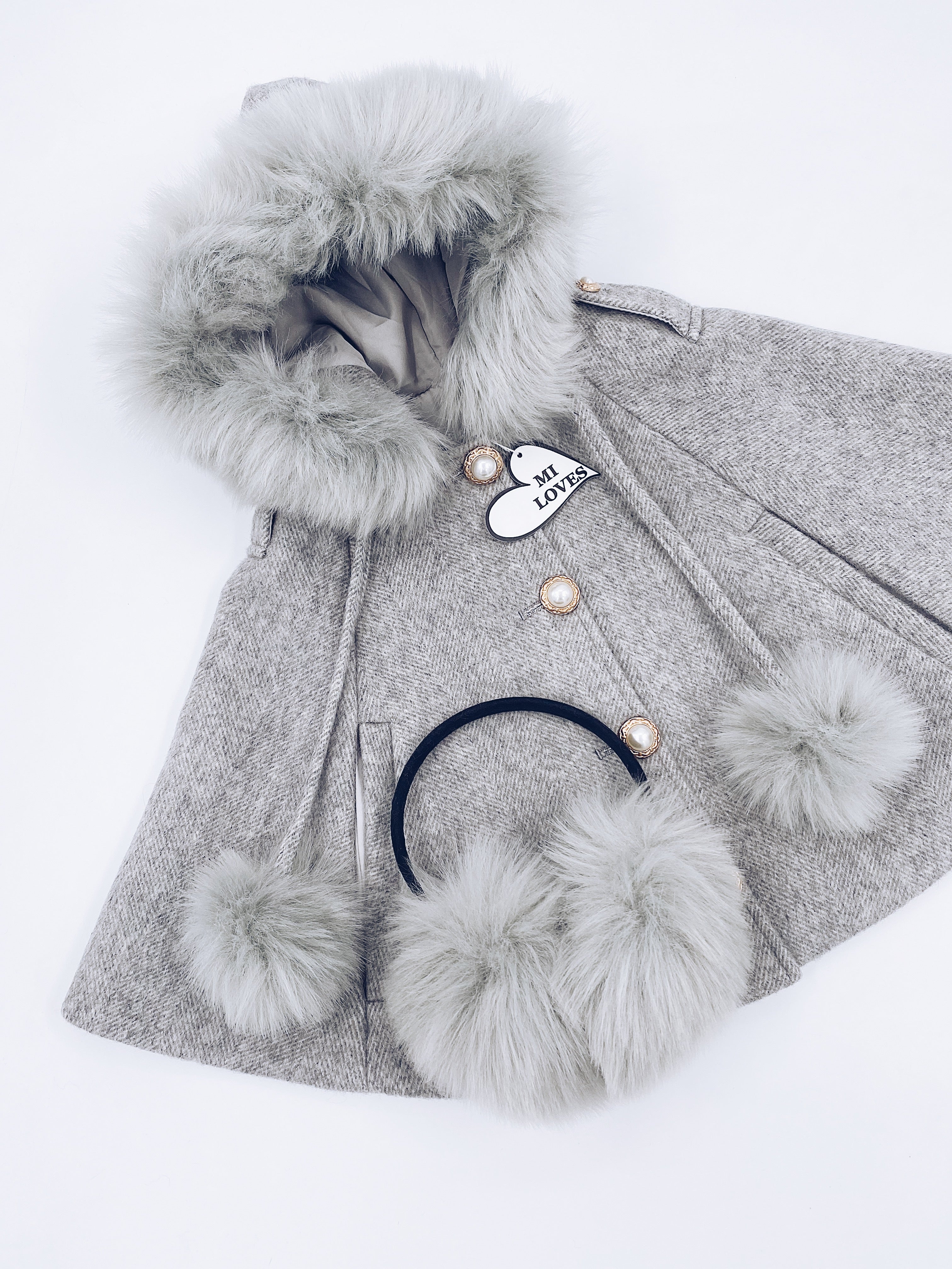 Victoria for MI LOVES Collaboration!!Beautiful DOVE Cape with Synthetic fur Collar and pom-poms.