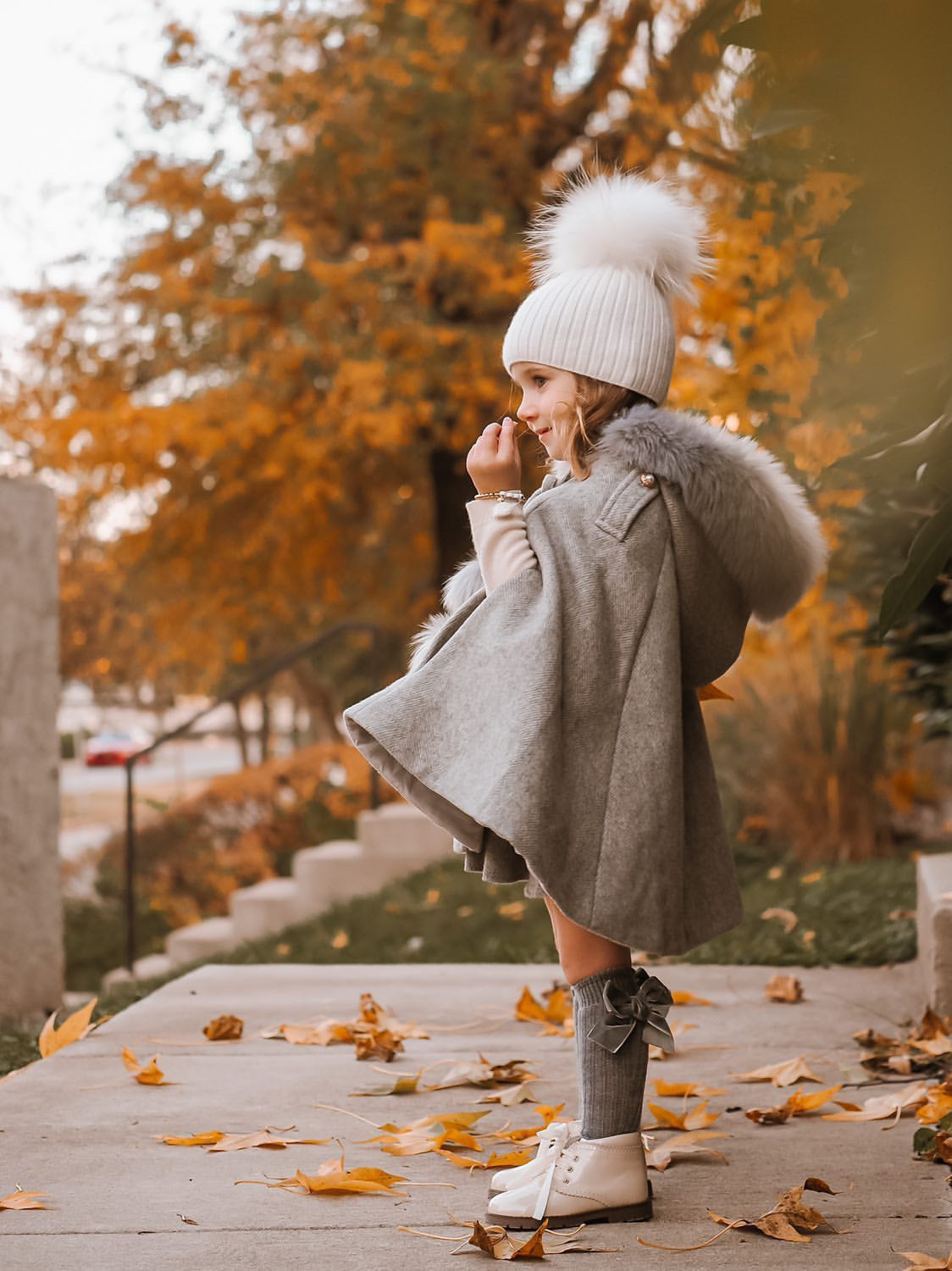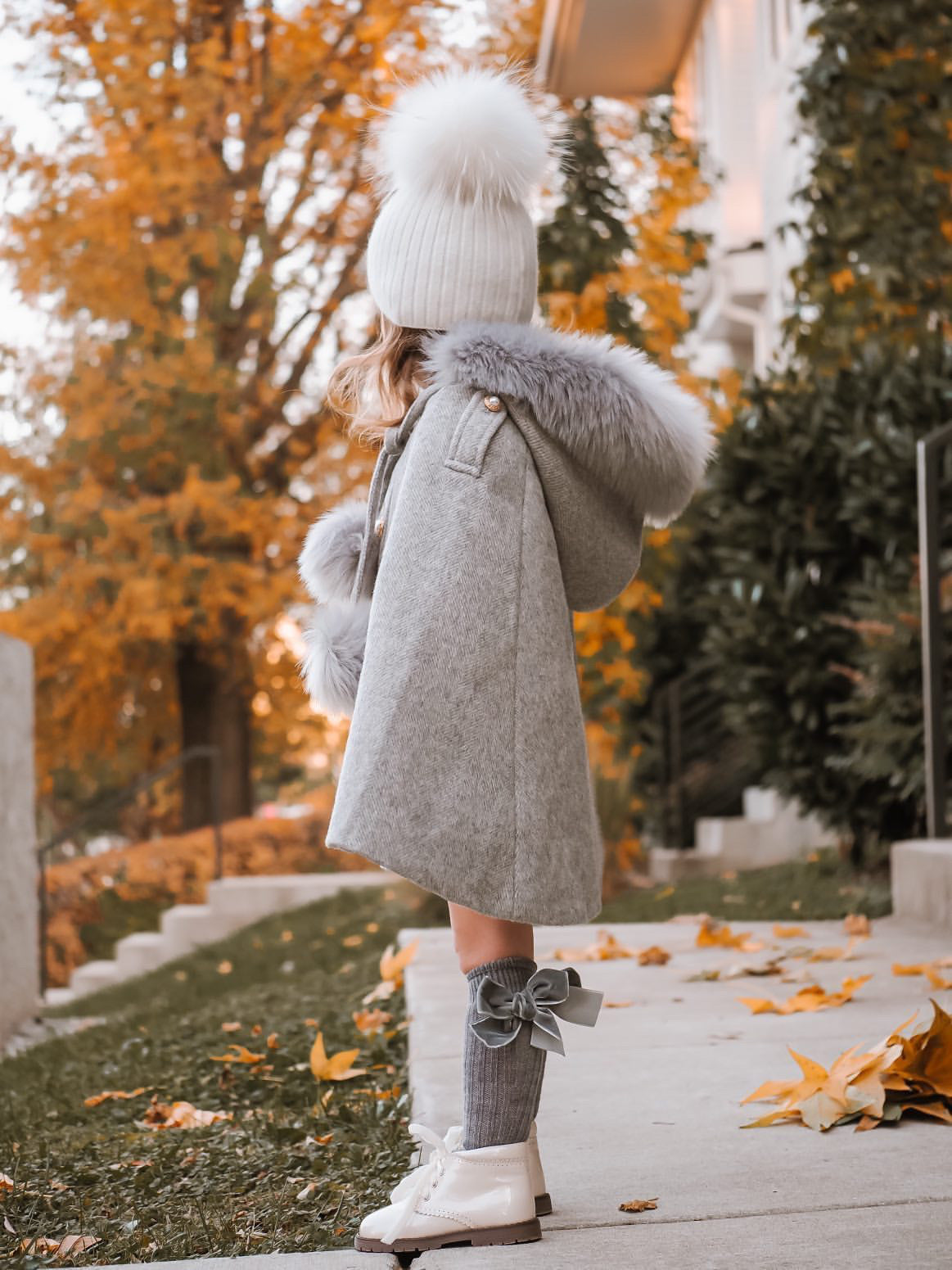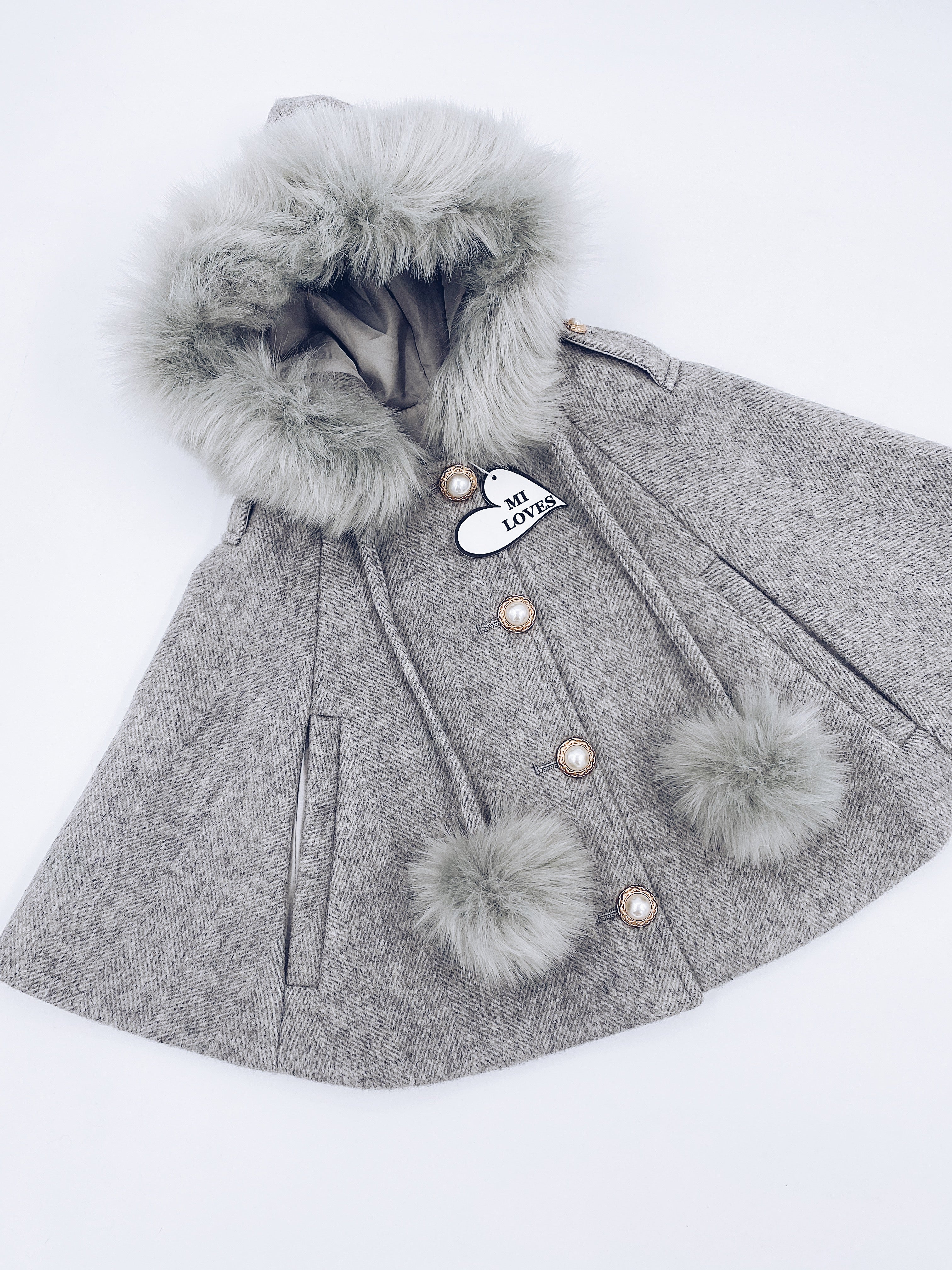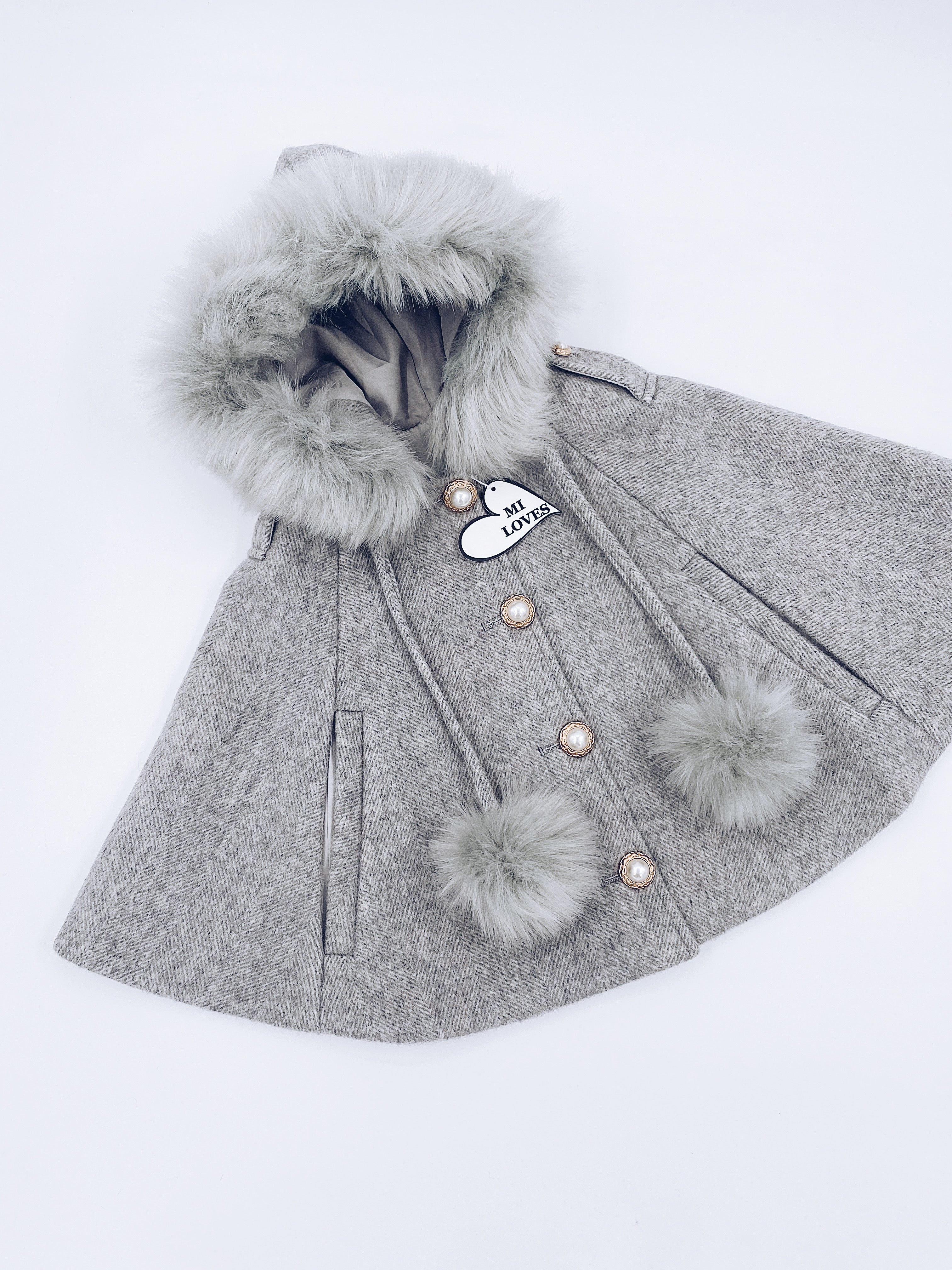 Victoria for MI LOVES Collaboration!!Beautiful DOVE Cape with Synthetic fur Collar and pom-poms.