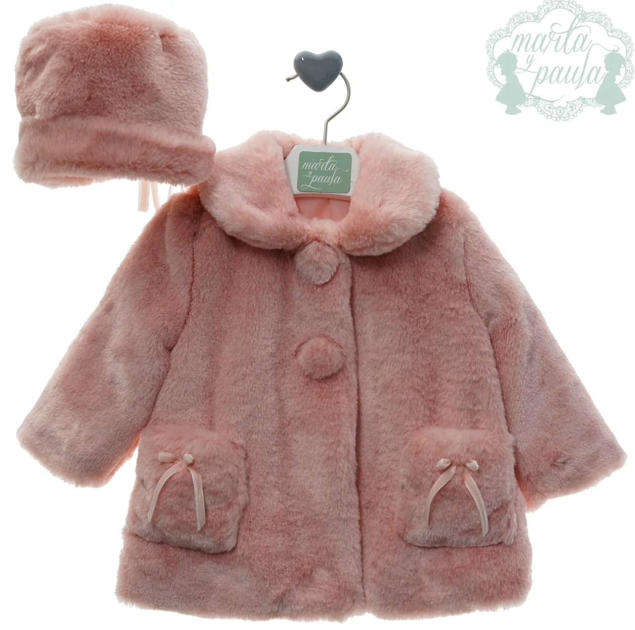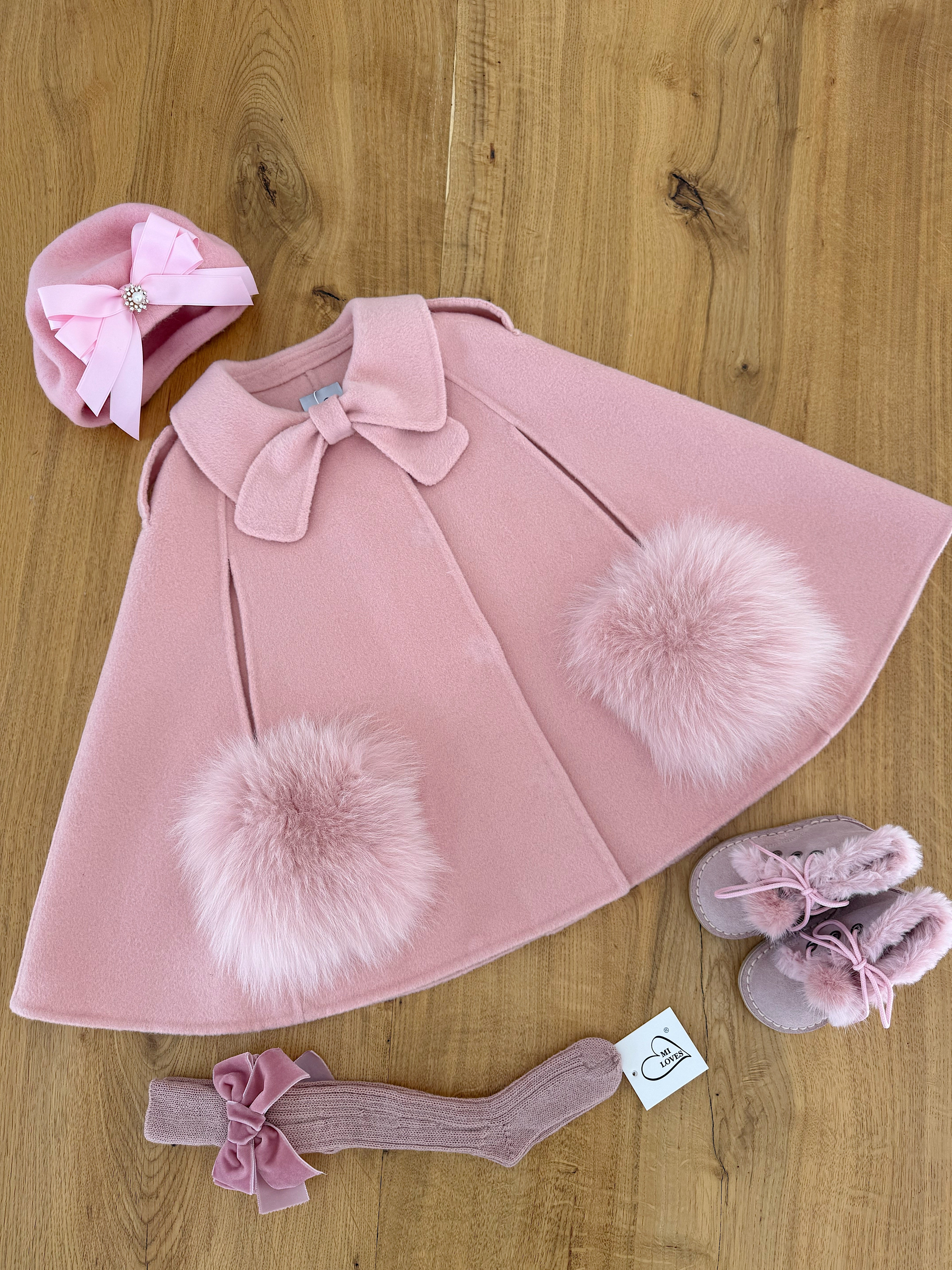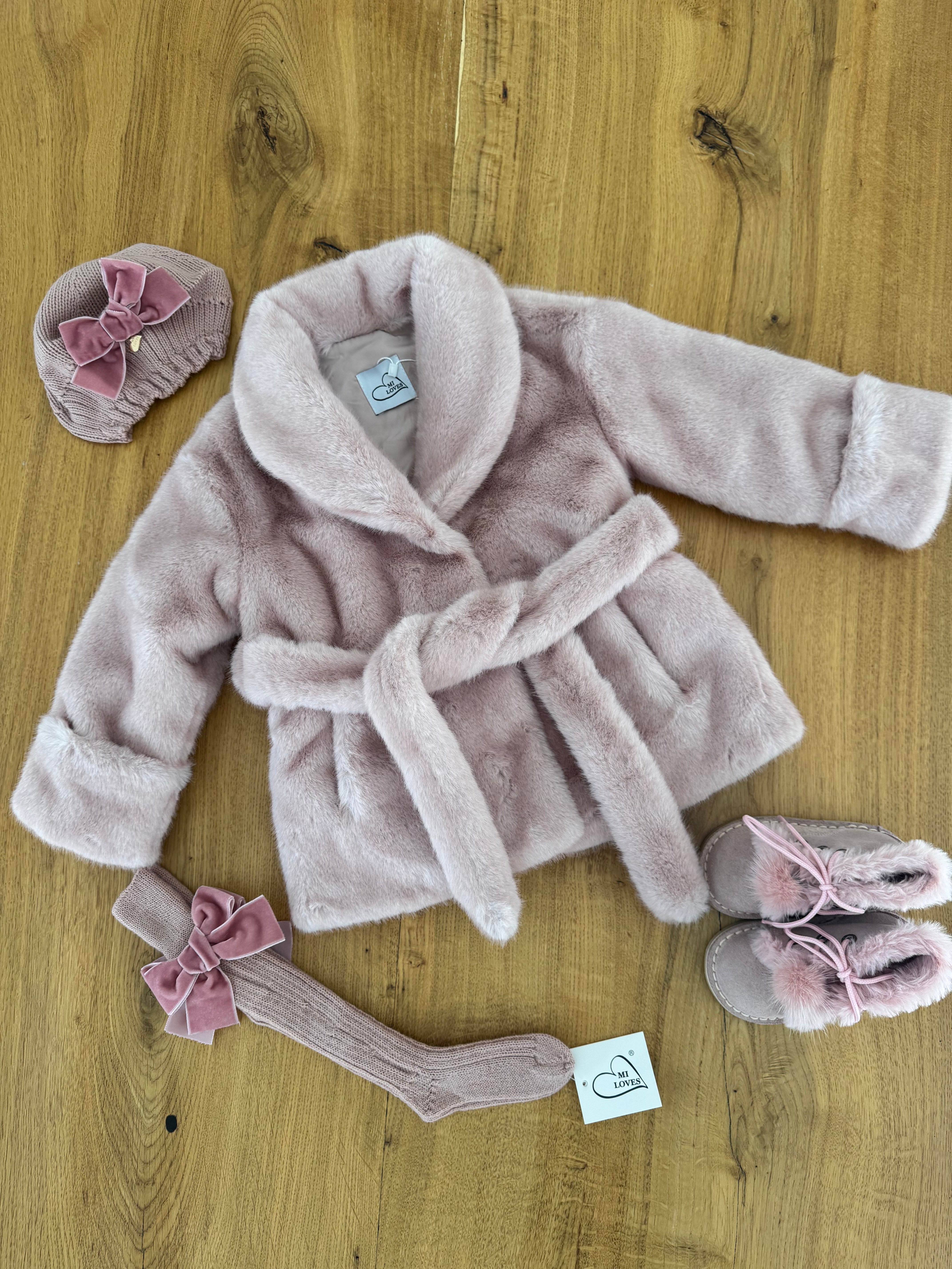 Beautiful Dusty pink Synthetic fur Jacket and bonnet 2 piece set.