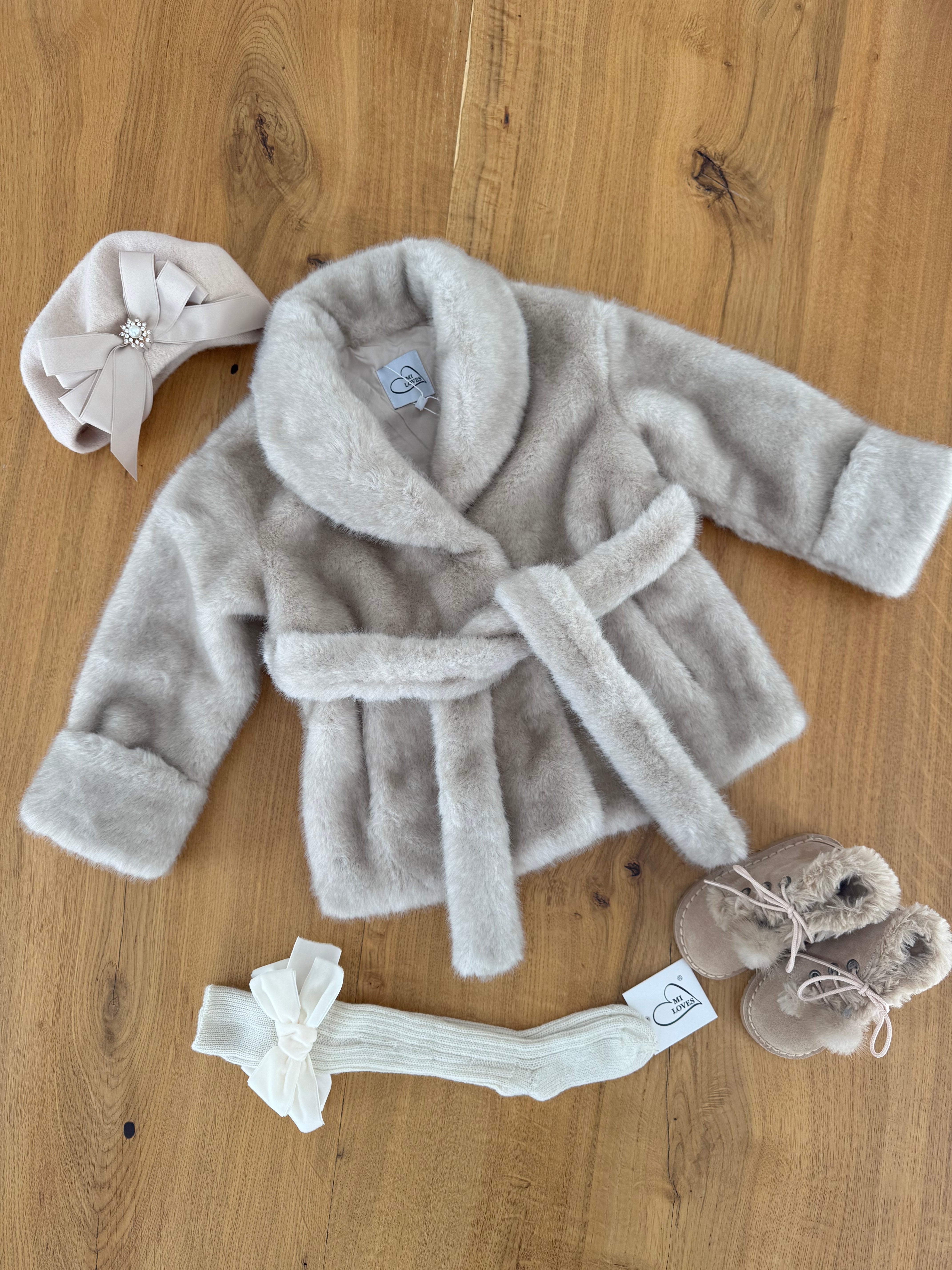 MI LOVES KIDS Synthetic fur Belted jacket in Biscuit.