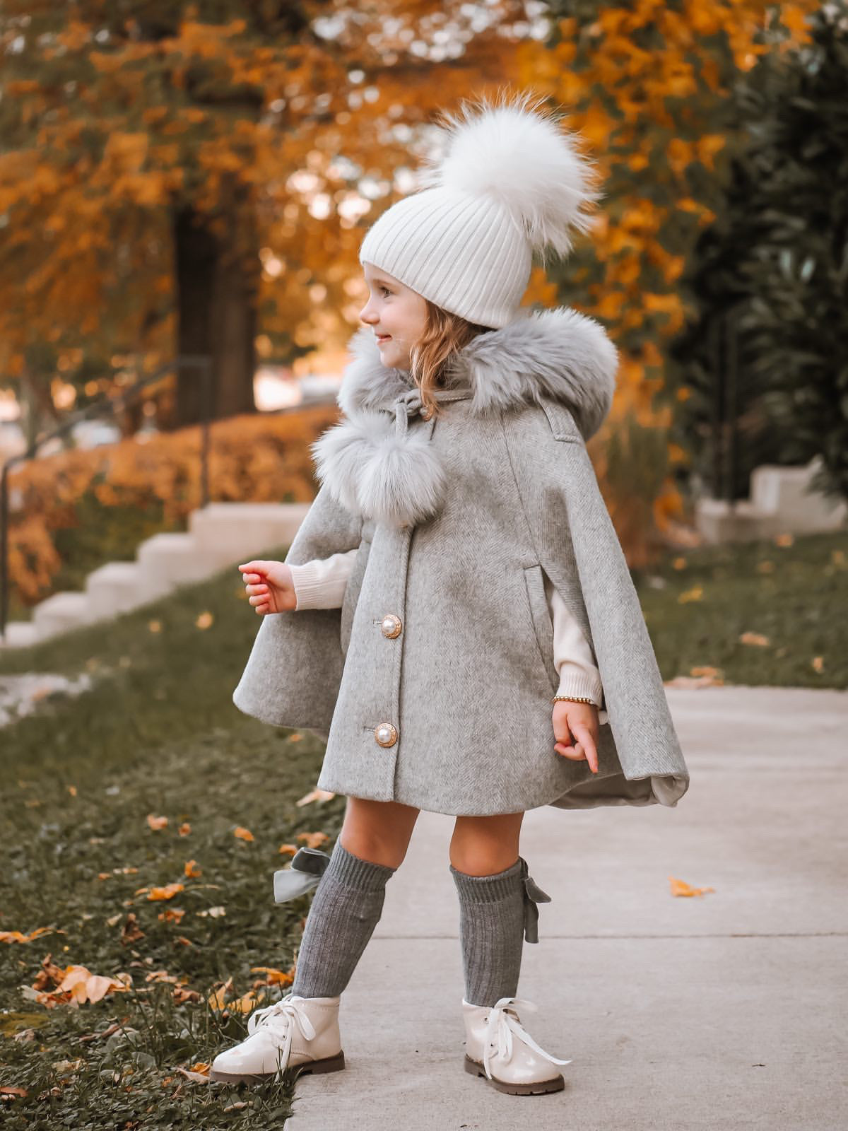 Victoria for MI LOVES Collaboration!!Beautiful DOVE Cape with Synthetic fur Collar and pom-poms.