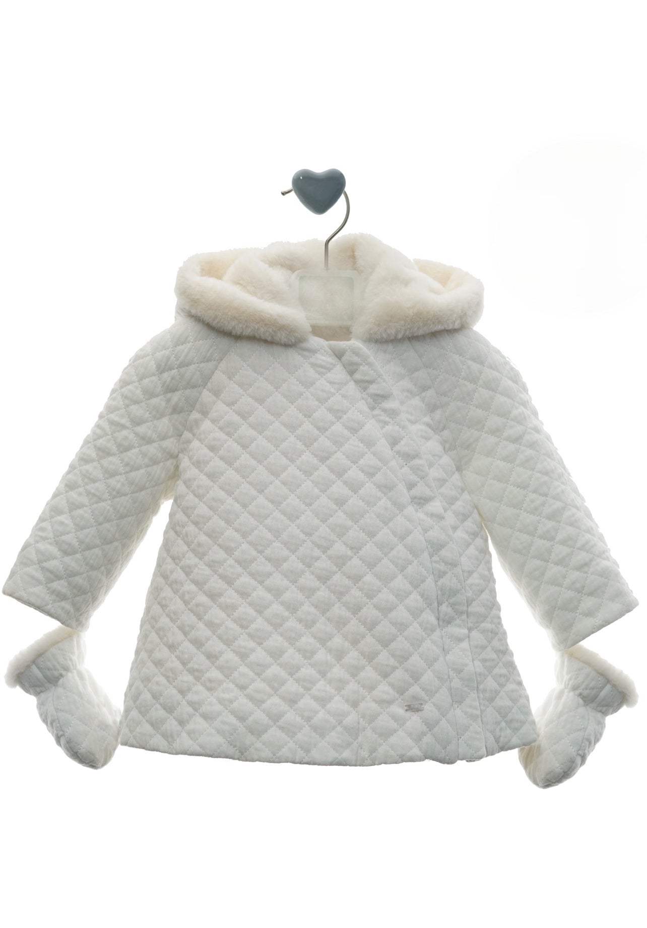 Beautiful White/Cream Hooded Jacket and mittens 2 piece set.