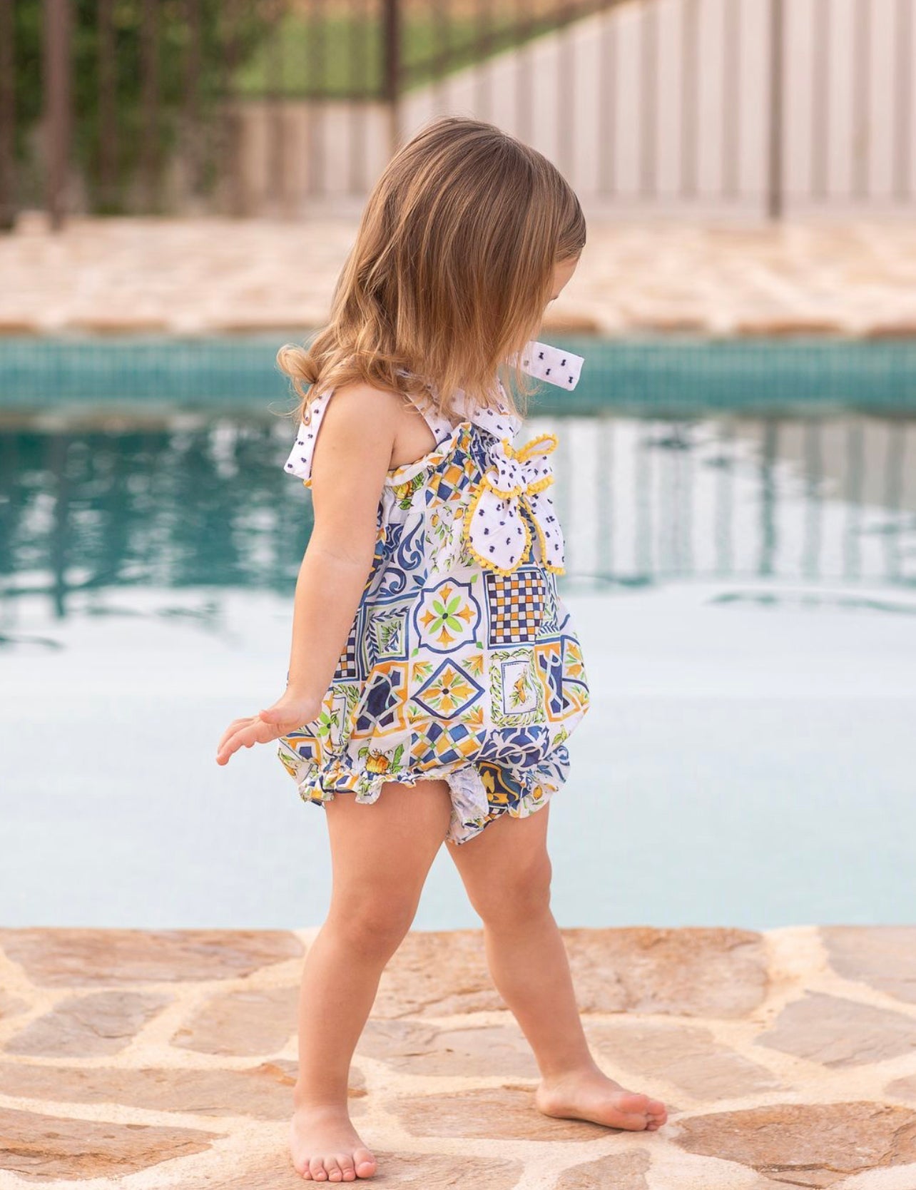 MI LOVES  Beautiful Girl Azuejo Baby Girl Romper.