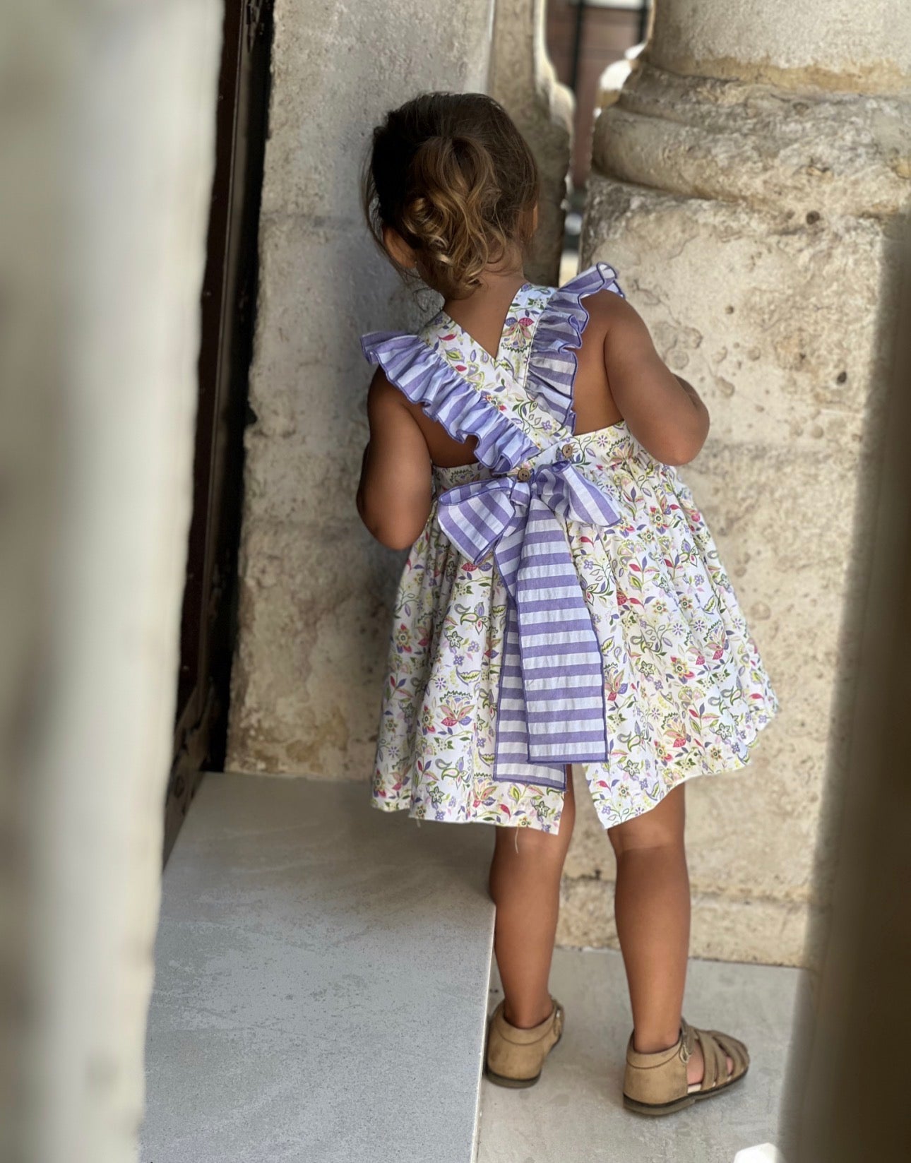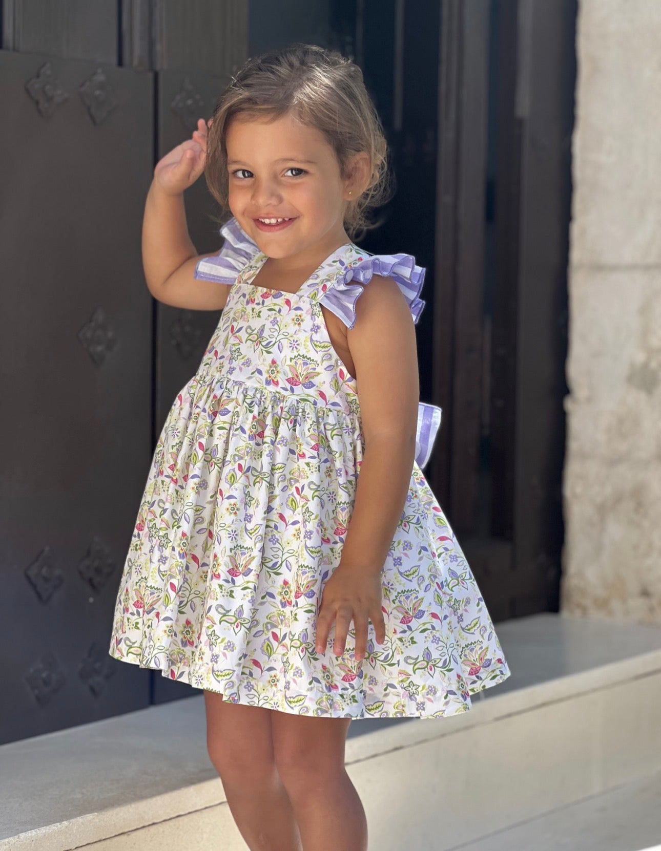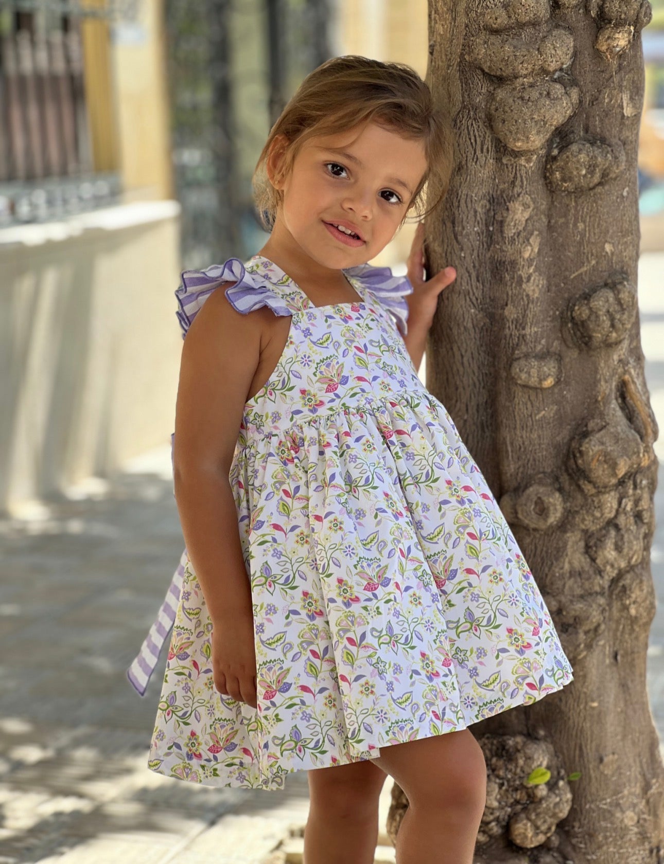 PRE ORDER(delivery at the end of February)MI LOVES SIGNATURE floral print dress/bloomers set with Beautiful bow details.