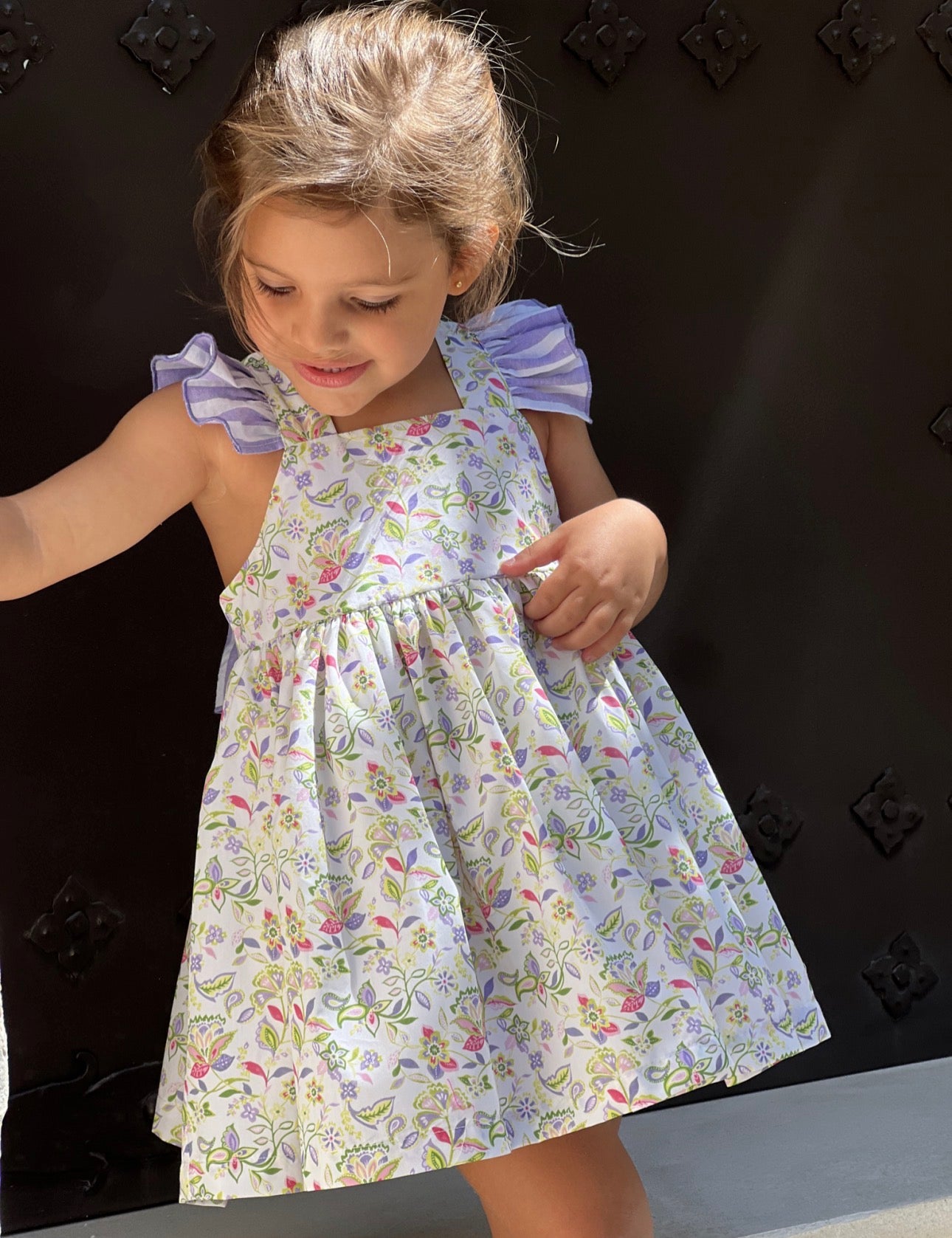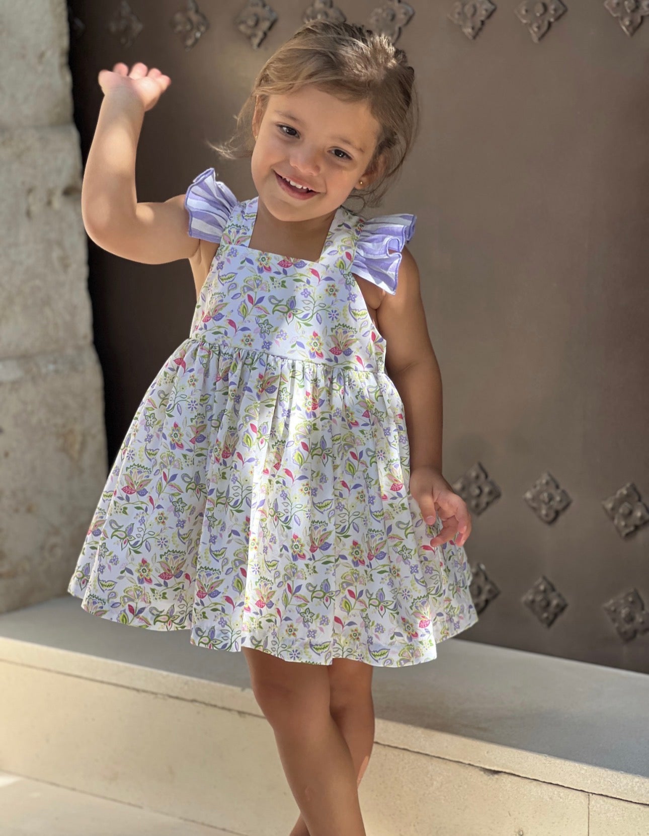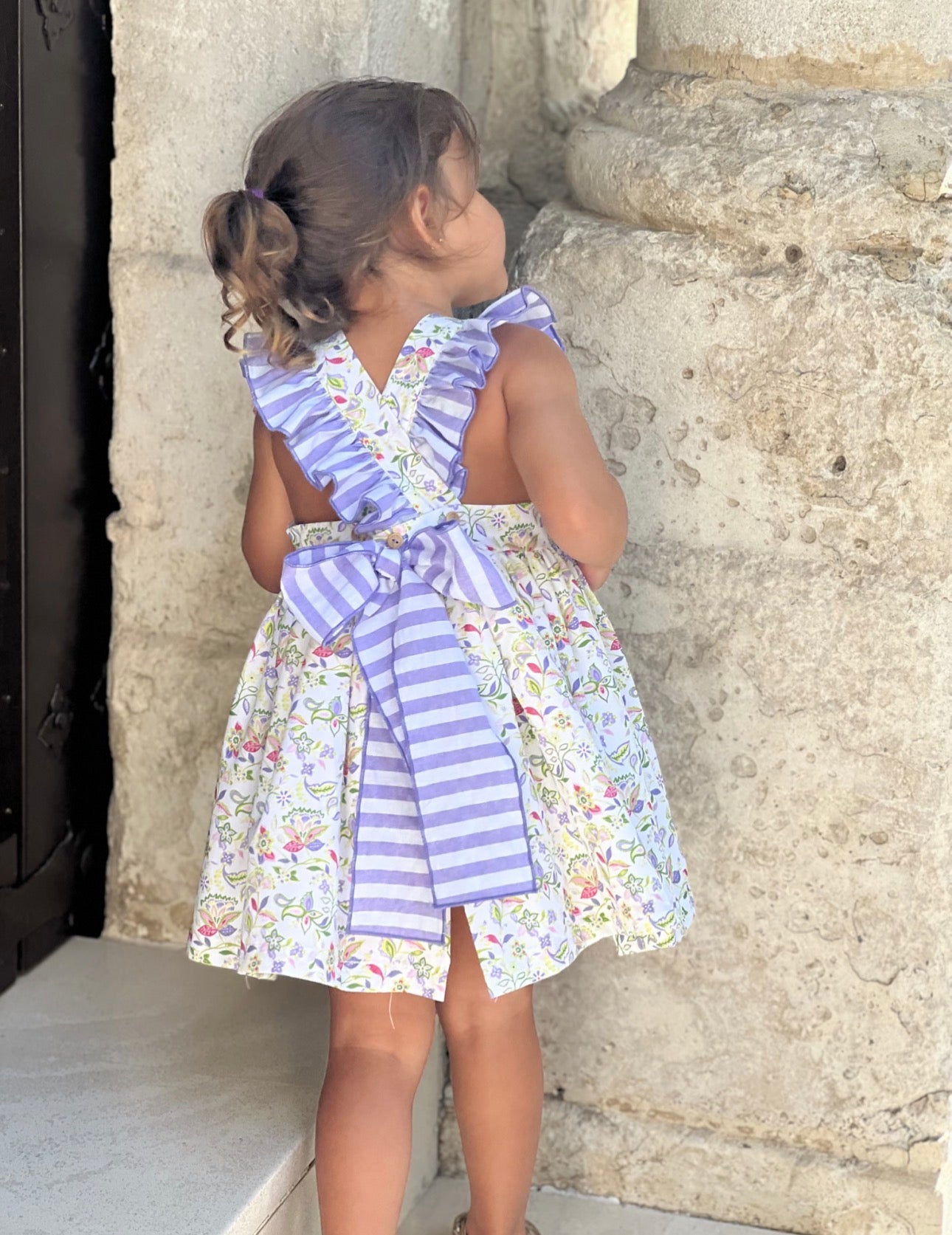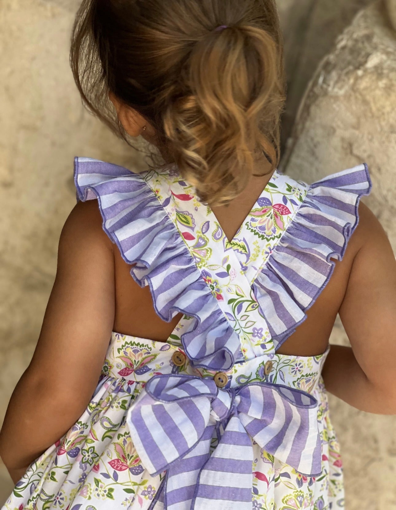 PRE ORDER(delivery at the end of February)MI LOVES SIGNATURE floral print dress/bloomers set with Beautiful bow details.