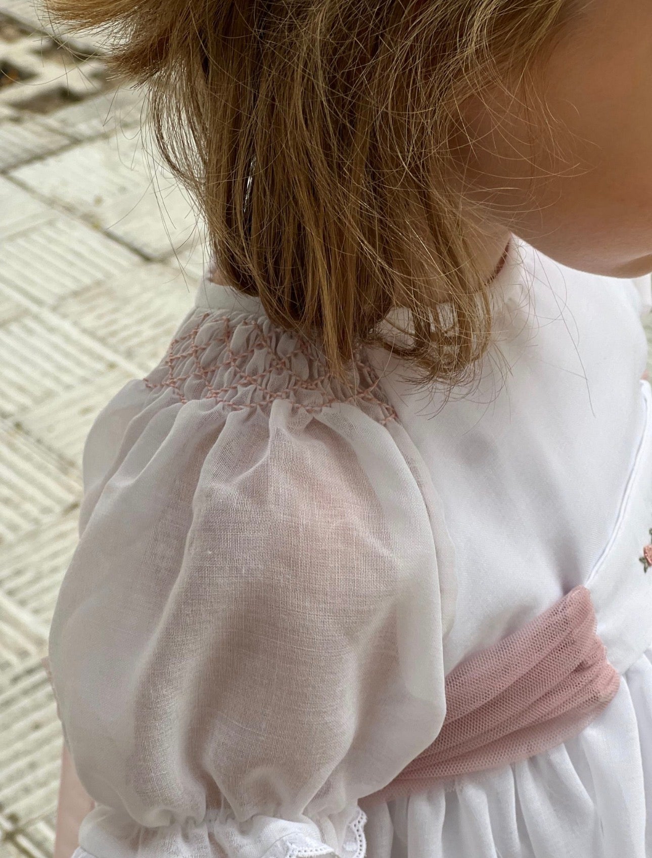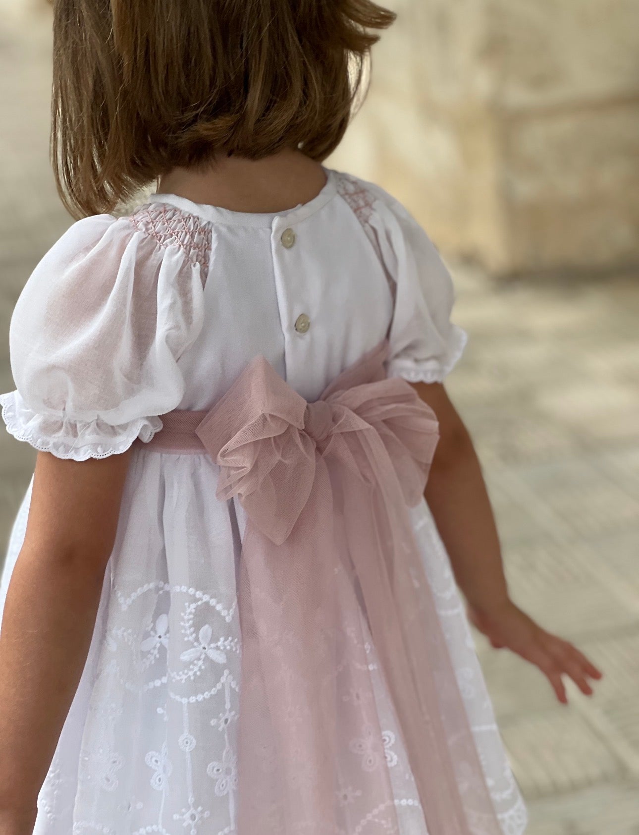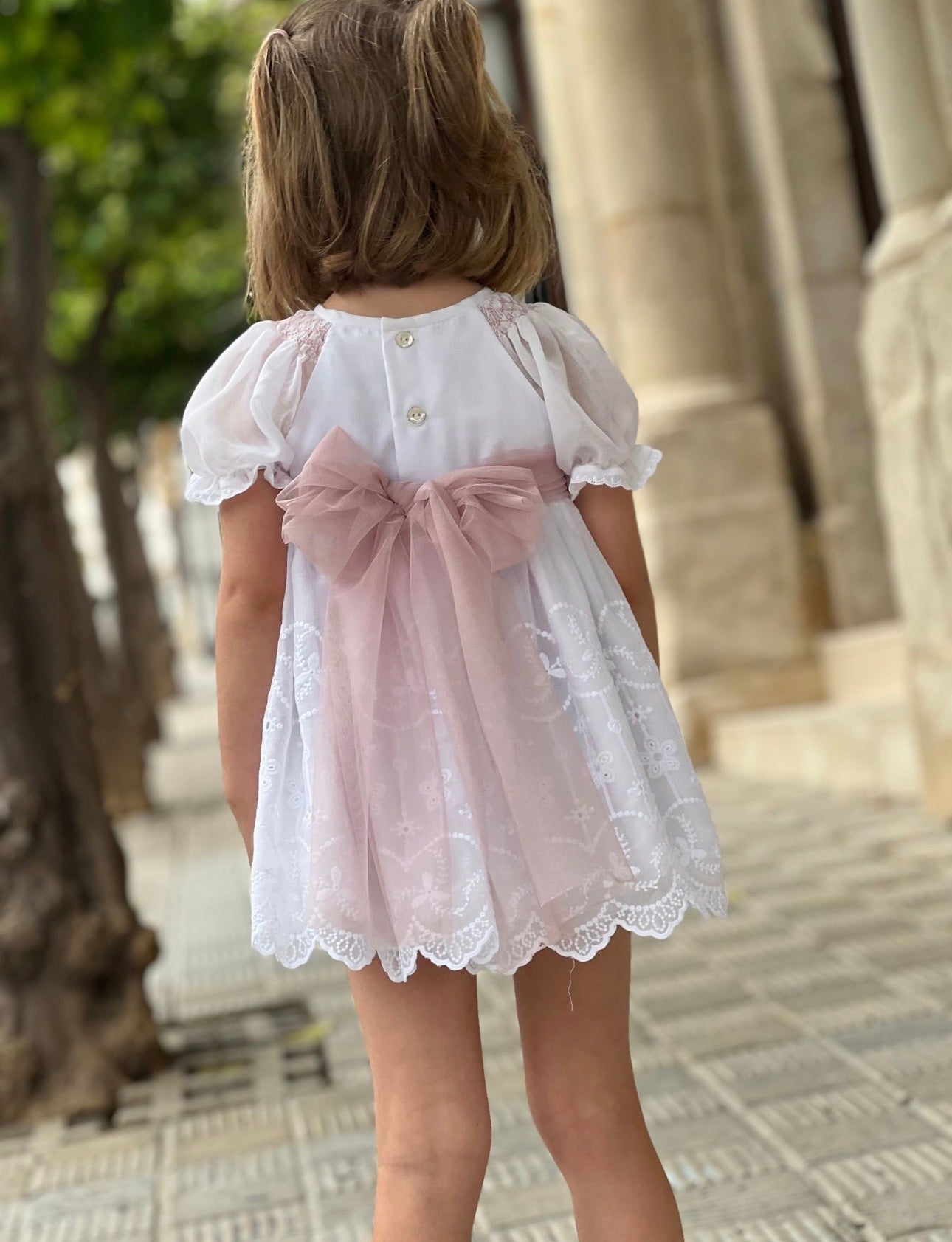 PRE ORDER(Delivery Last week of February)MI LOVES SIGNATURE White dress/bloomers set with Beautiful lace, embroidery and bow details.