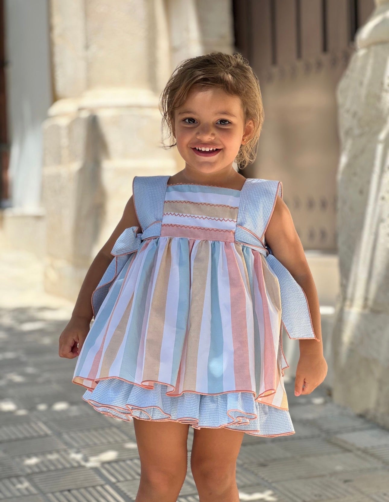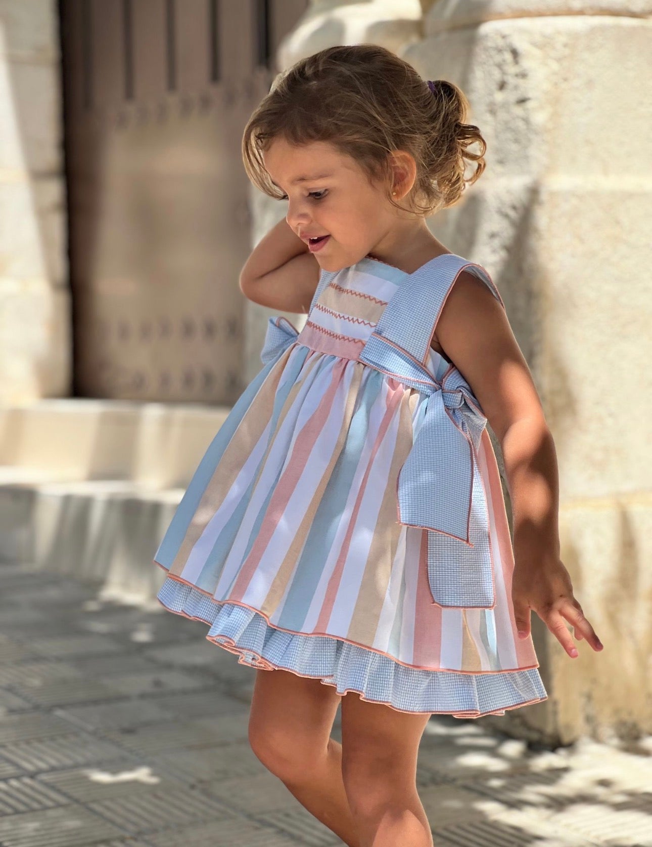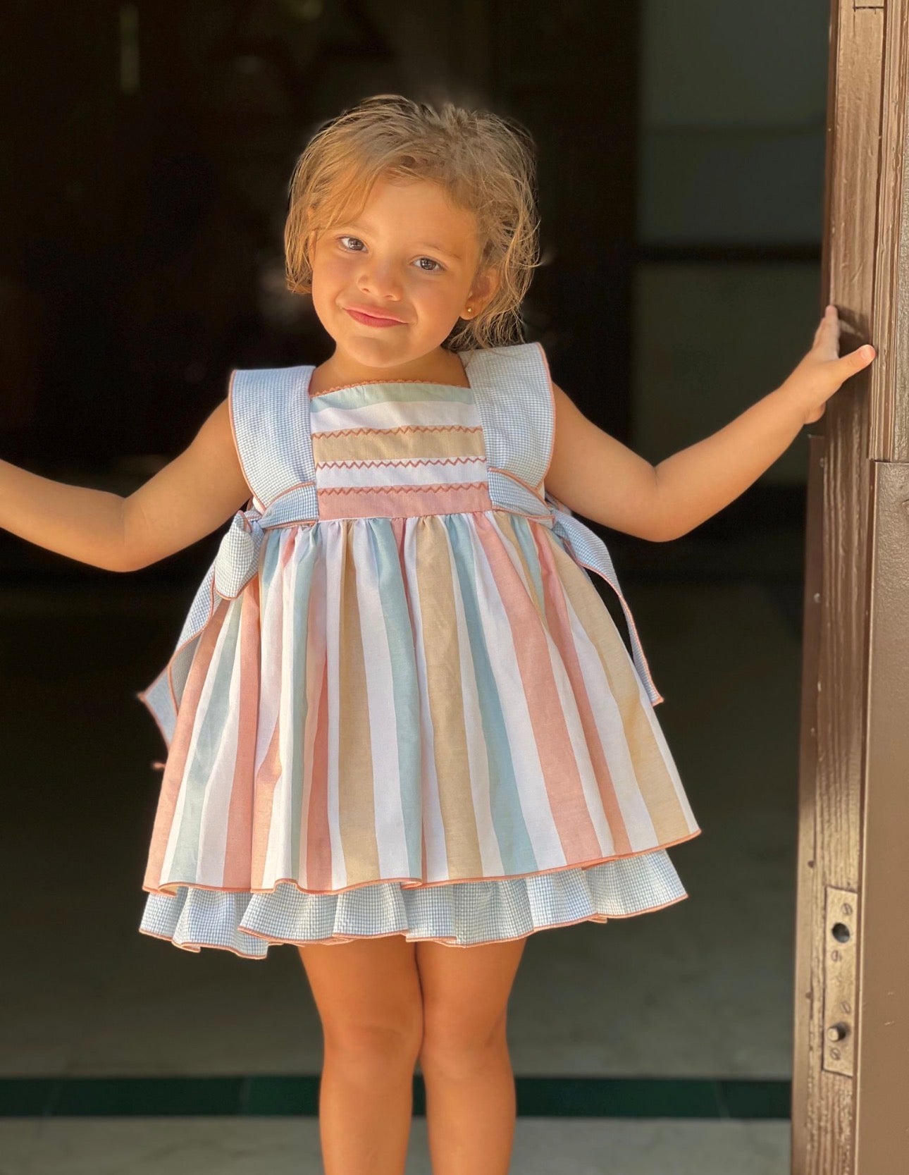 PRE ORDER(Delivery  last week of February)MI LOVES SIGNATURE Stripe  print dress/bloomers set with Beautiful frill details.