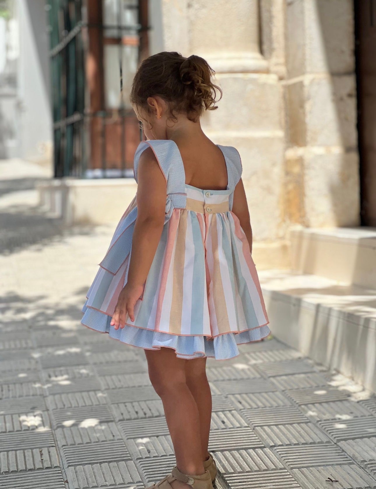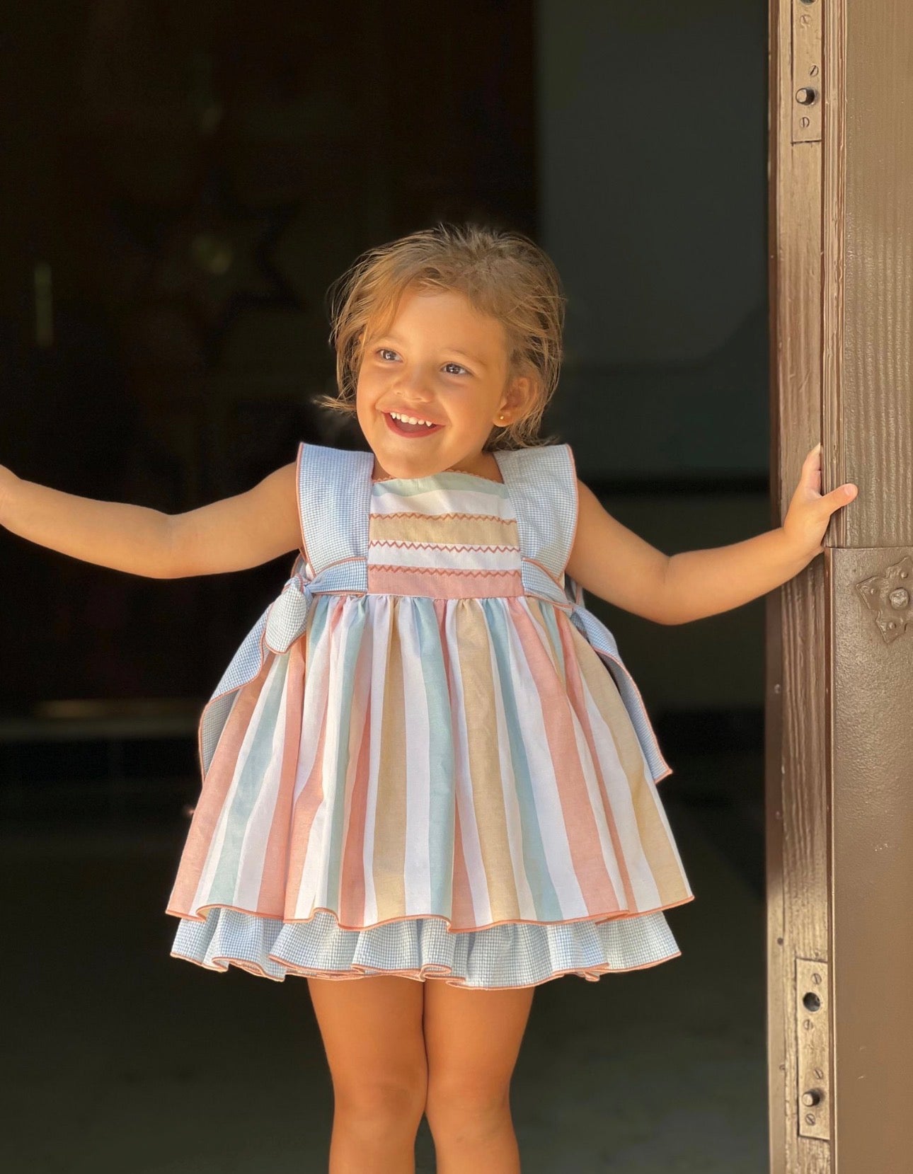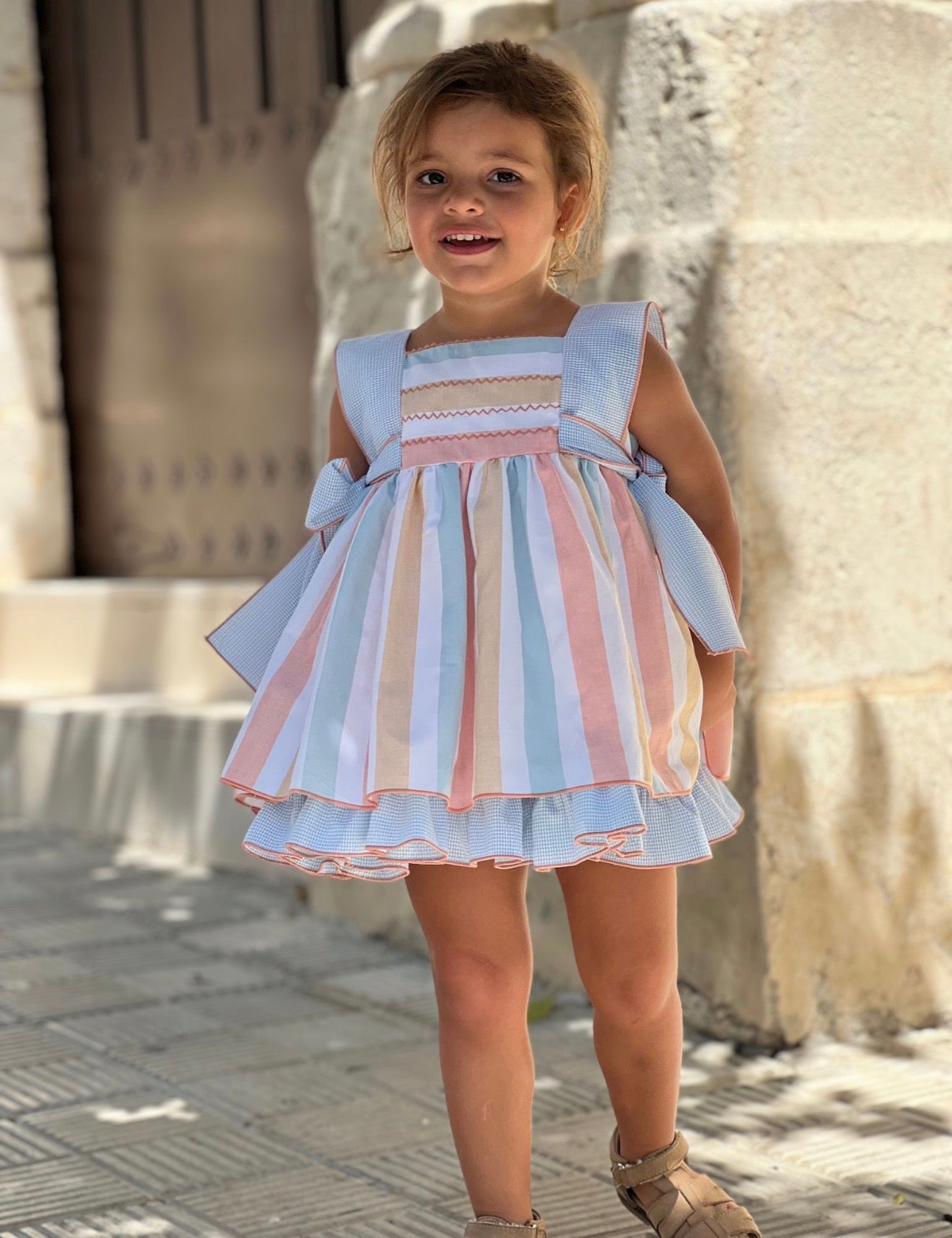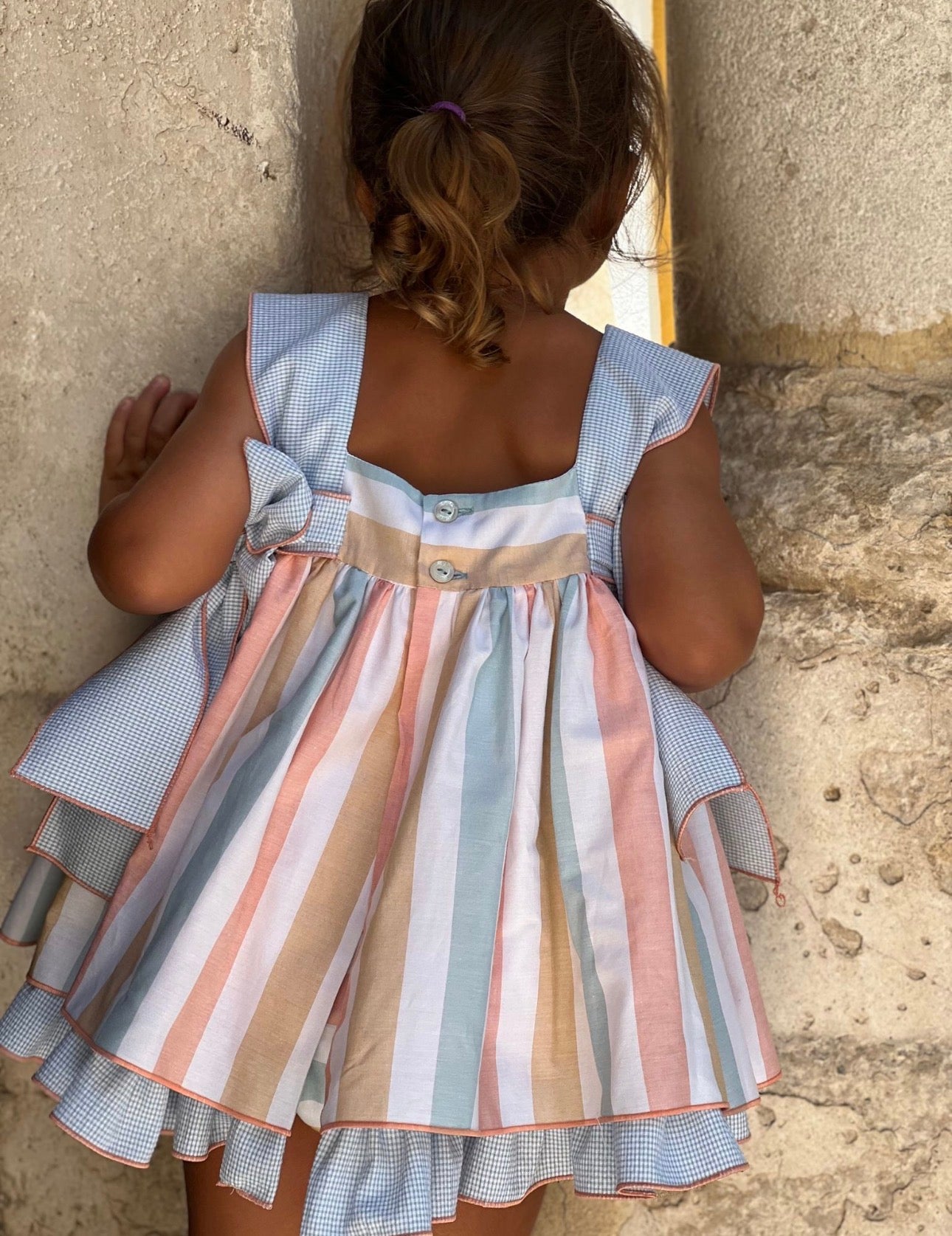 PRE ORDER(Delivery  last week of February)MI LOVES SIGNATURE Stripe  print dress/bloomers set with Beautiful frill details.