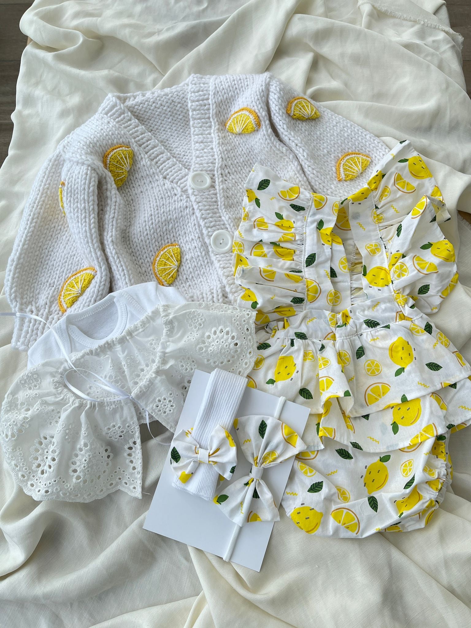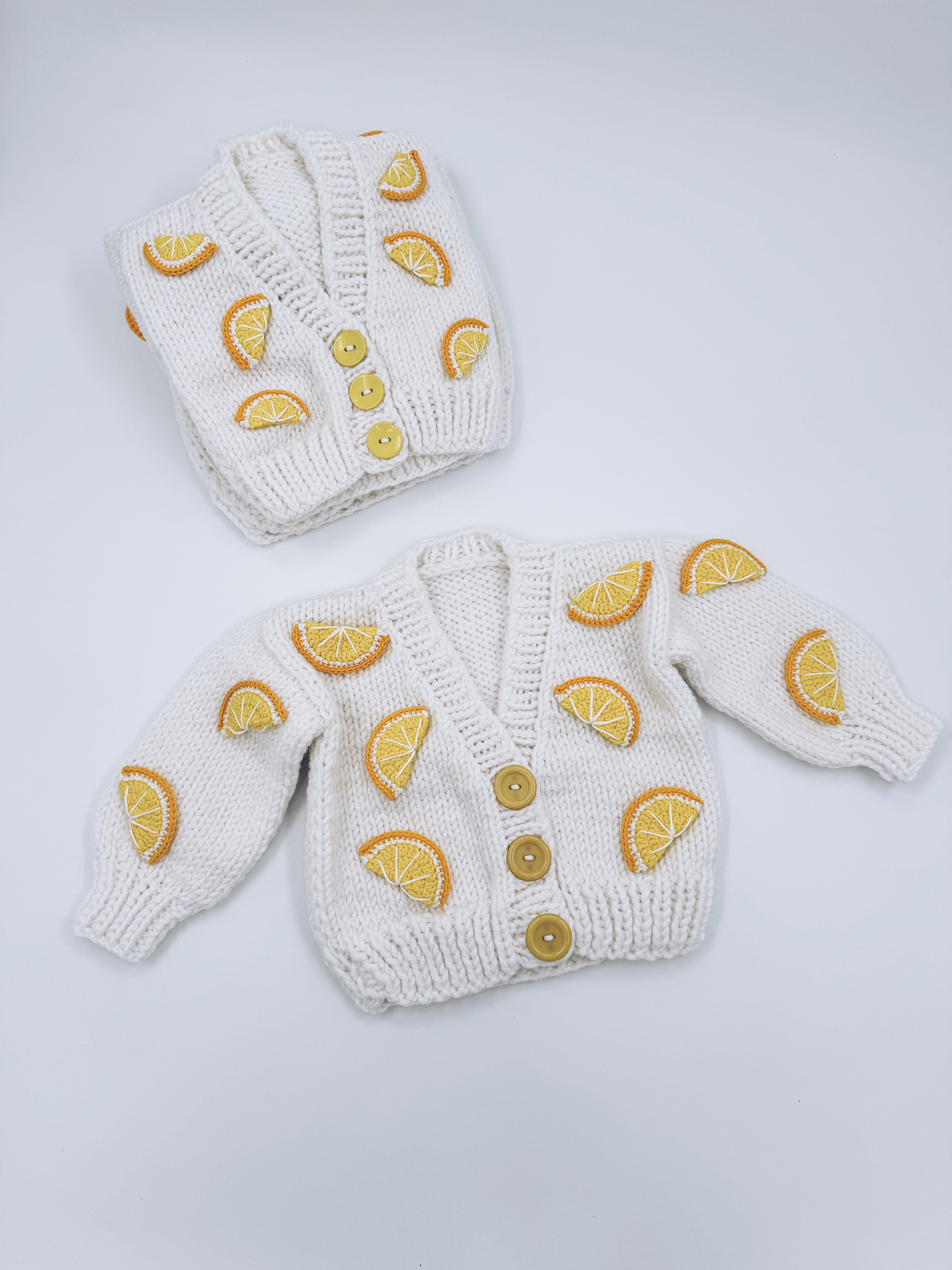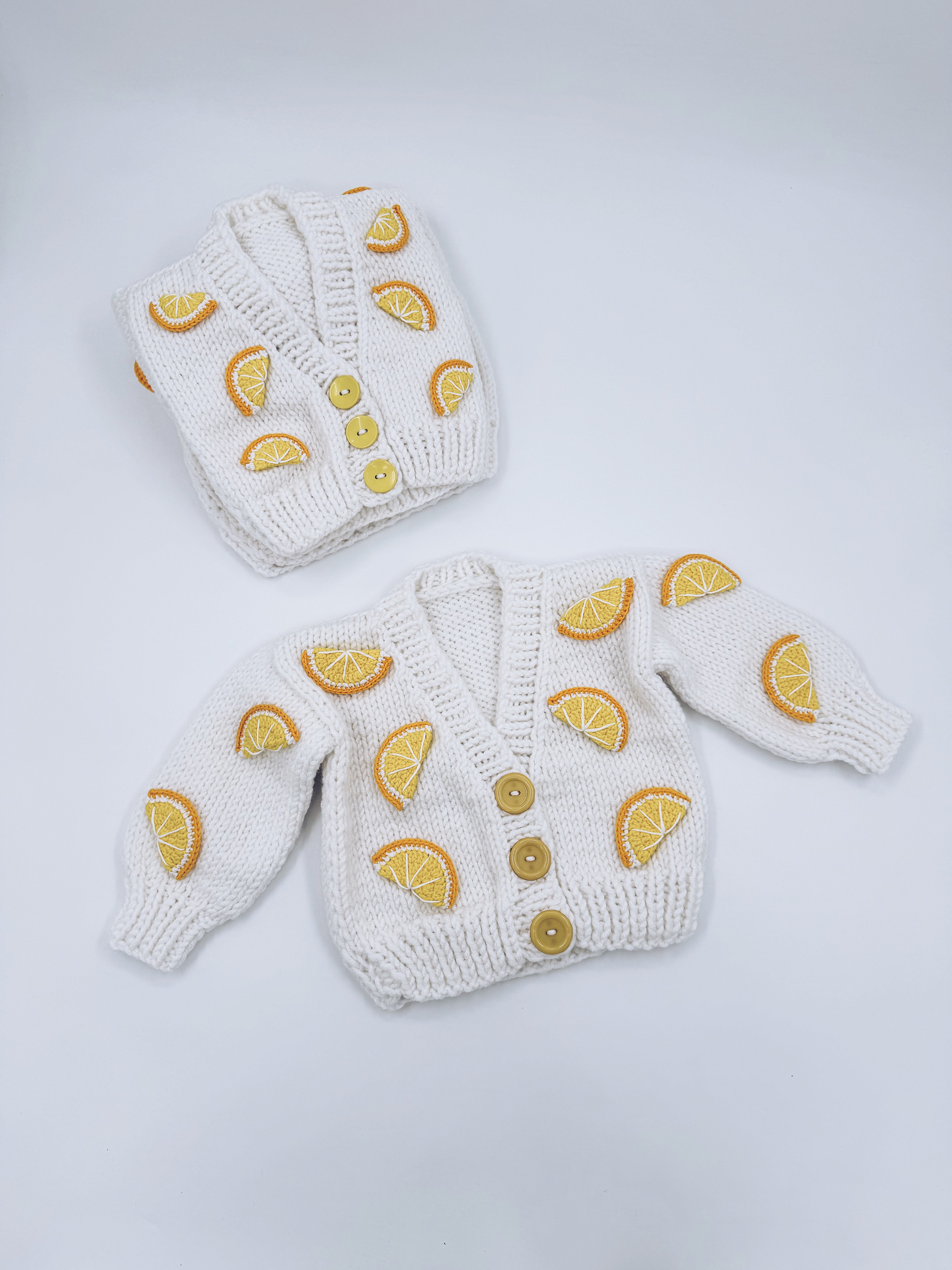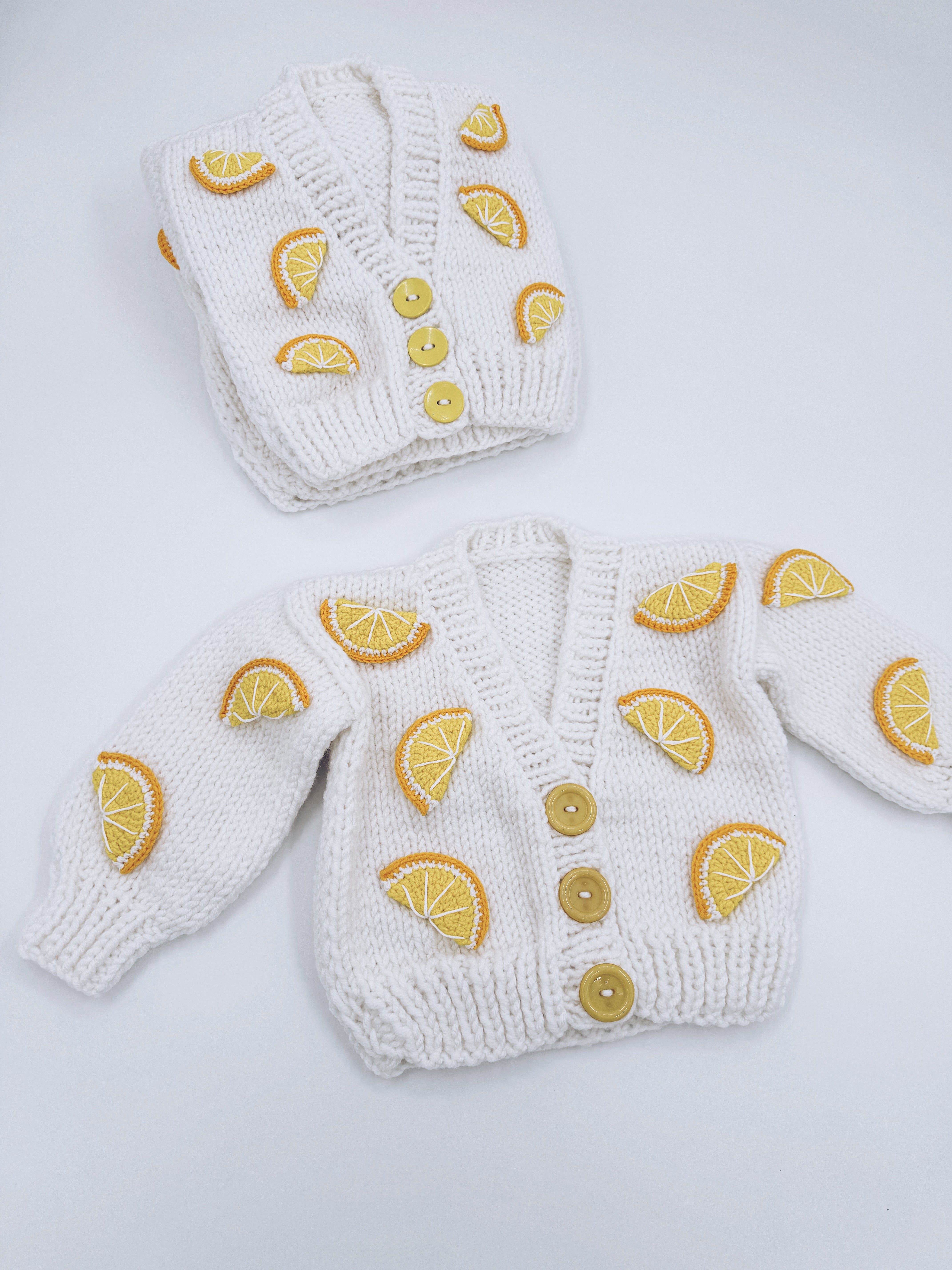 Beautiful Hand Knitted Cardigan with Lemon details.