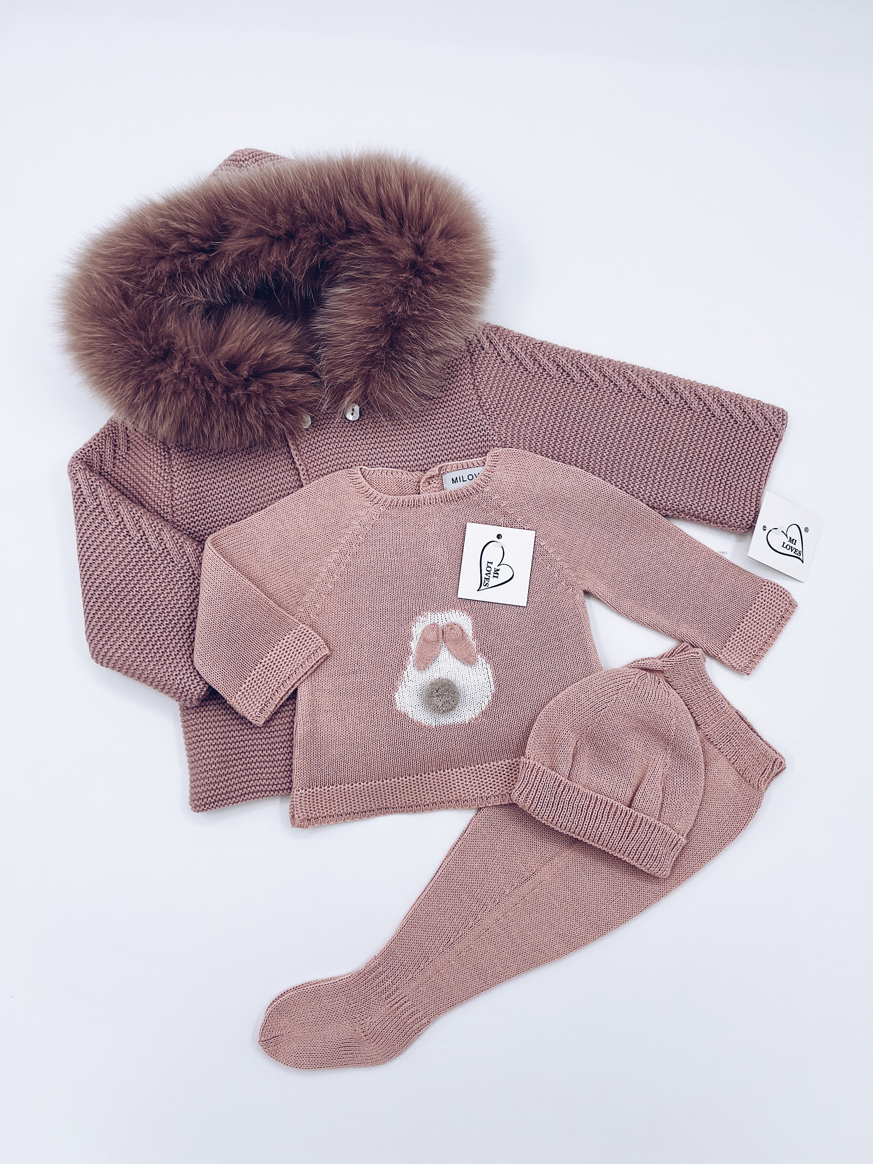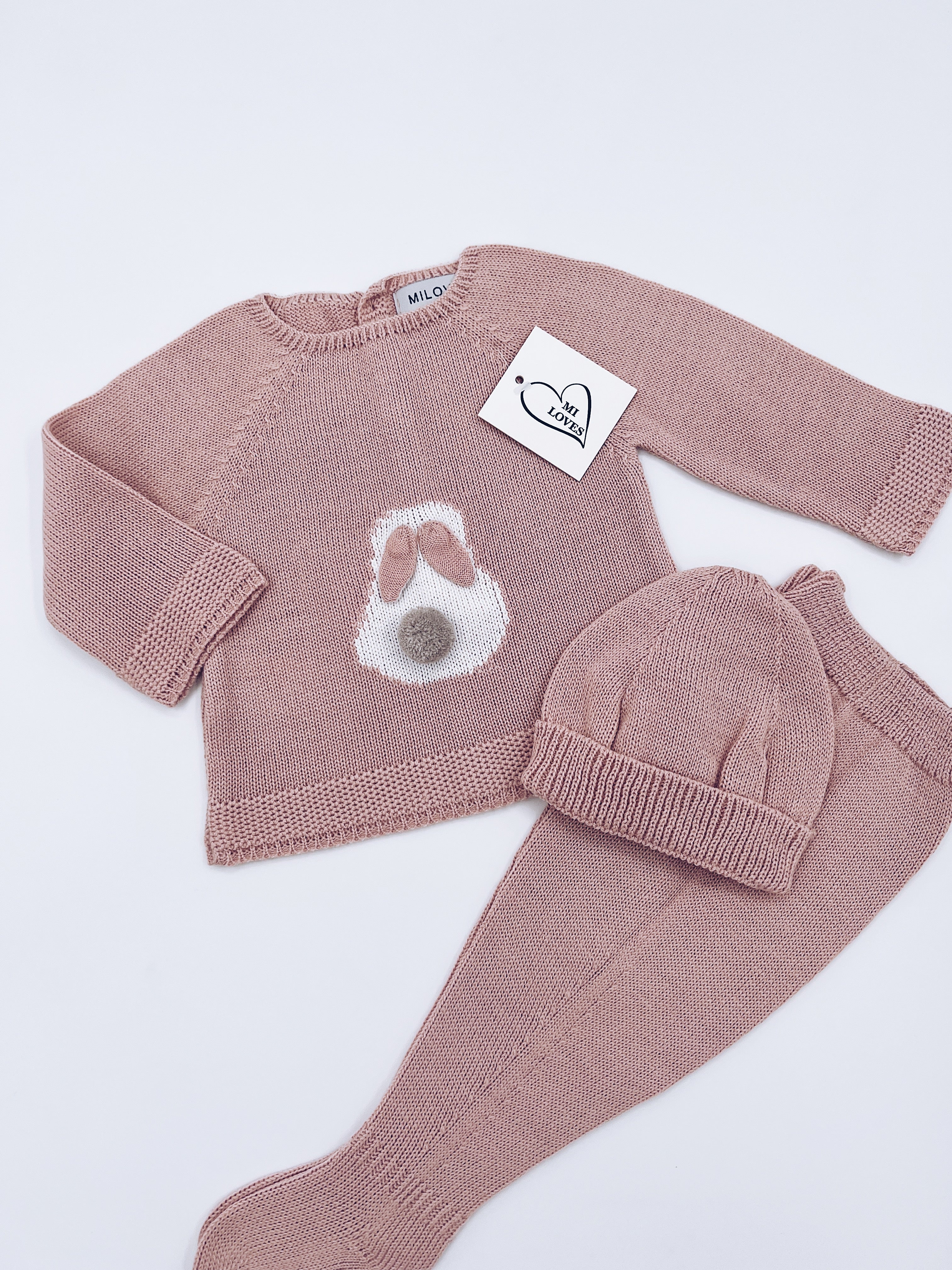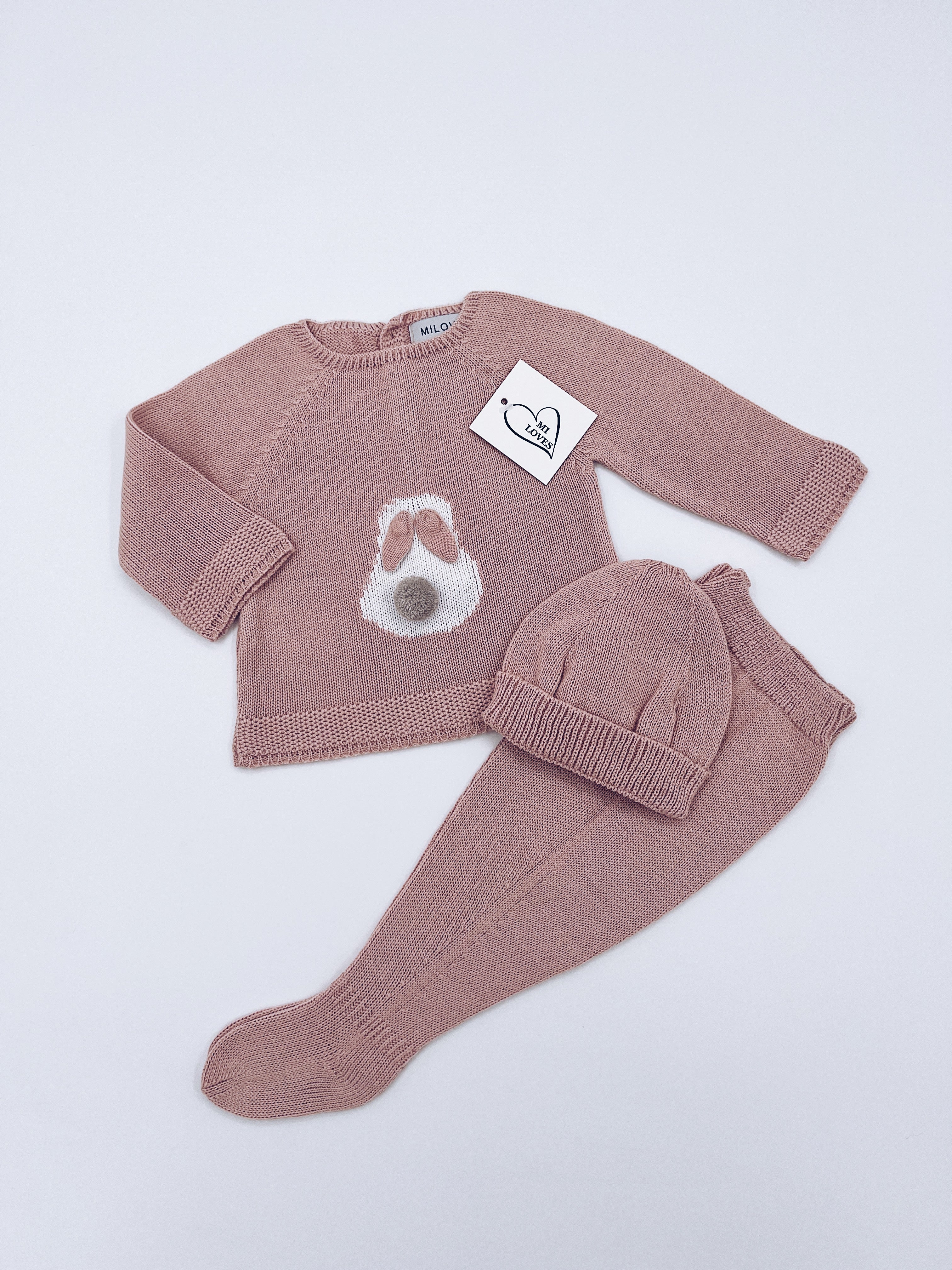 MI LOVES Beautiful Dusty pink BUNNY knitted 3 piece baby set