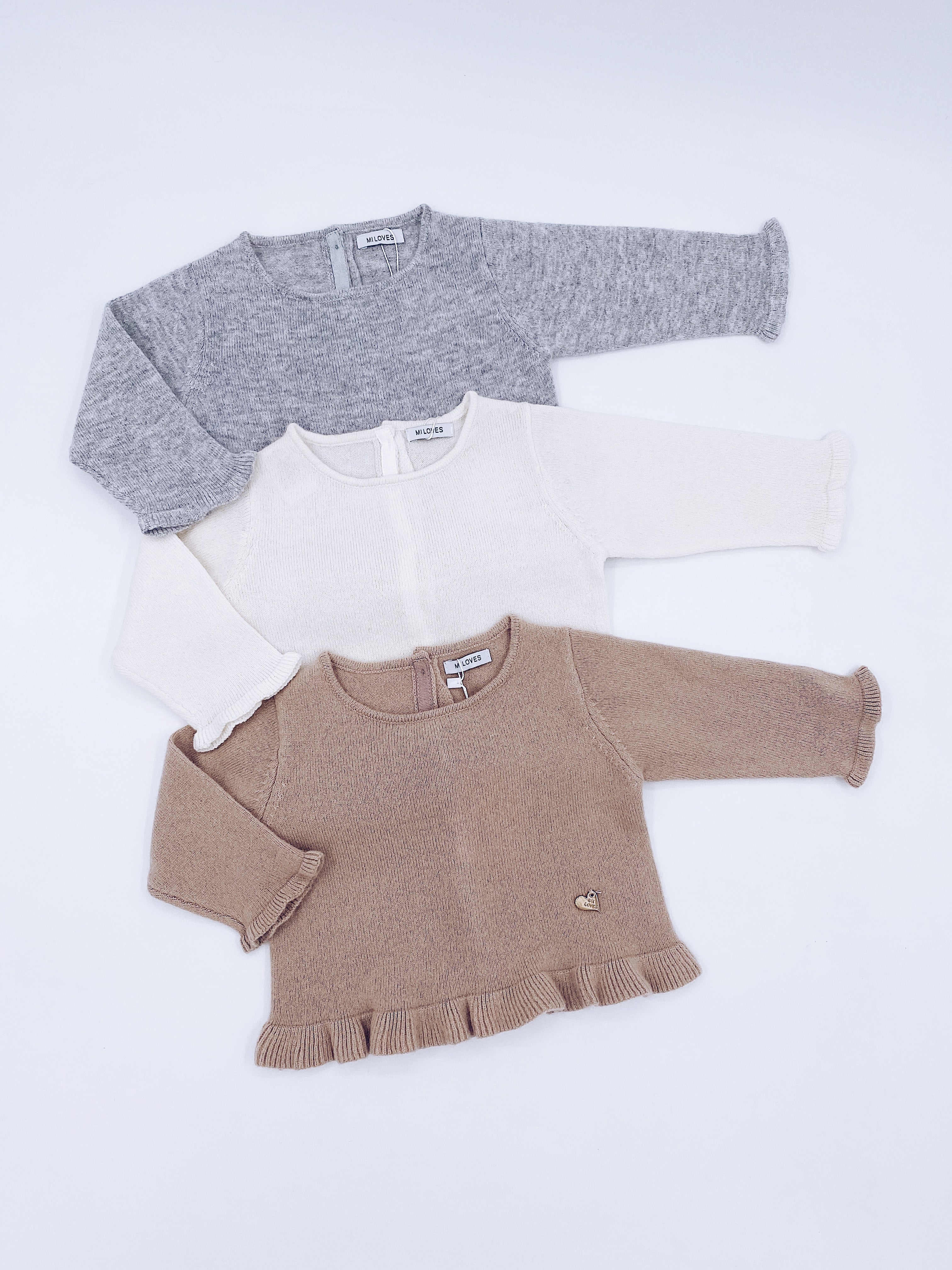 MI LOVES SIGNATURE Cashmere knit sweater with frilly details.