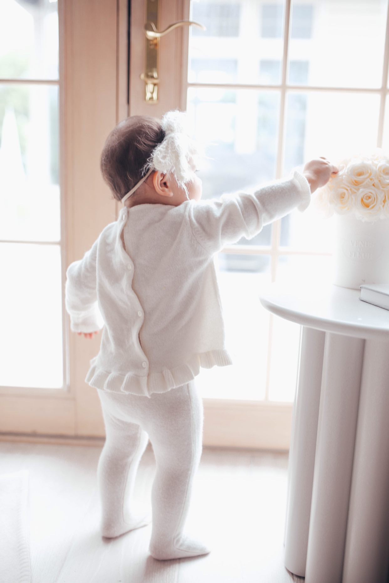 Matching cashmere trousers and hat (sold separately)also available on the website