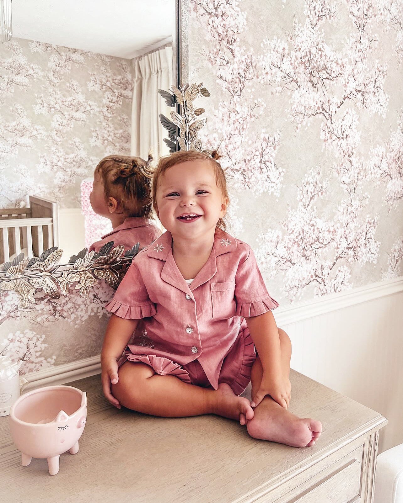 MI LOVES Dusty pink LInen summer kids Co-ord Short set.