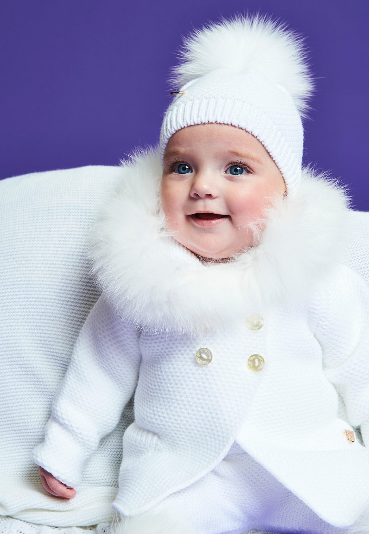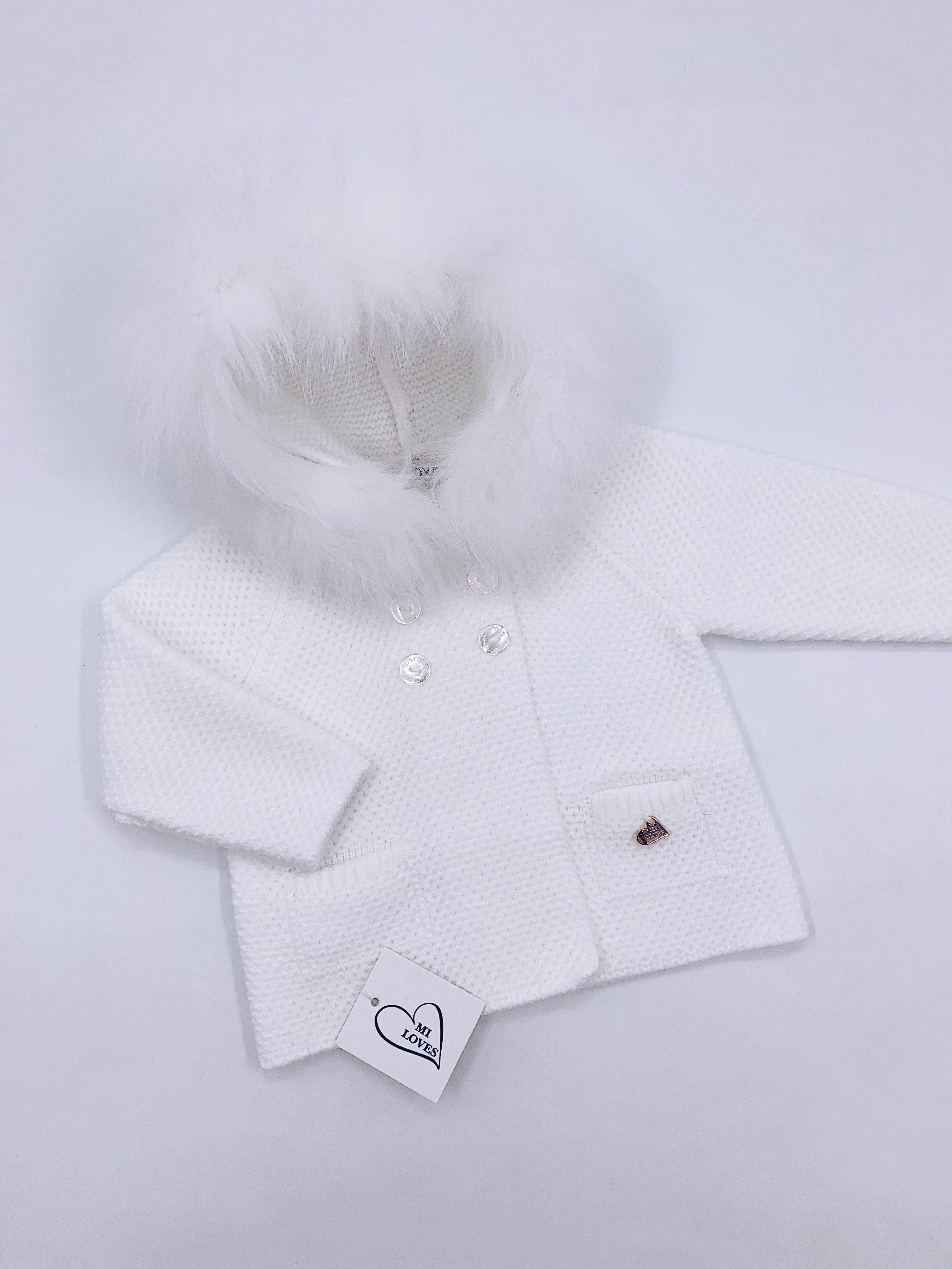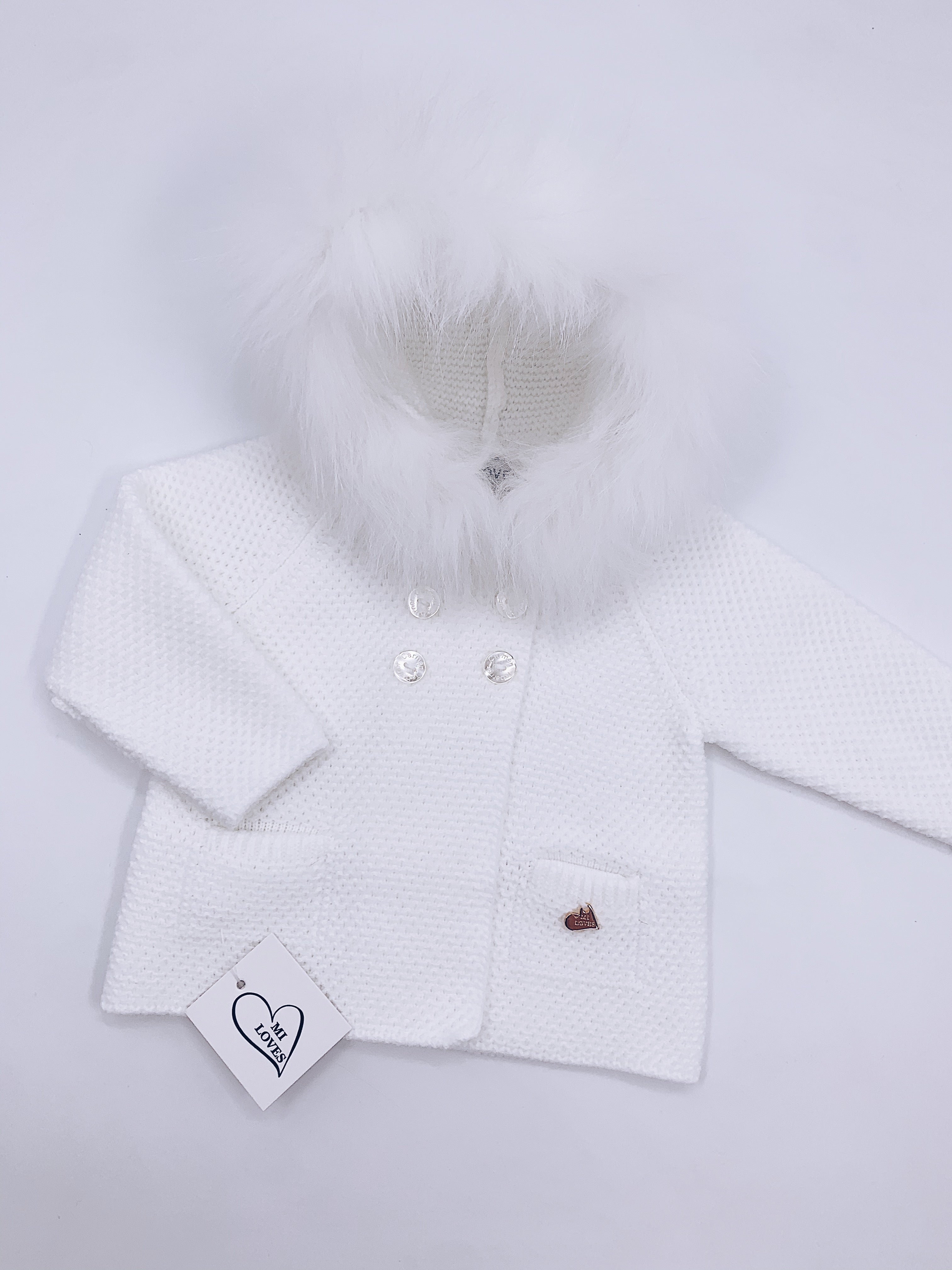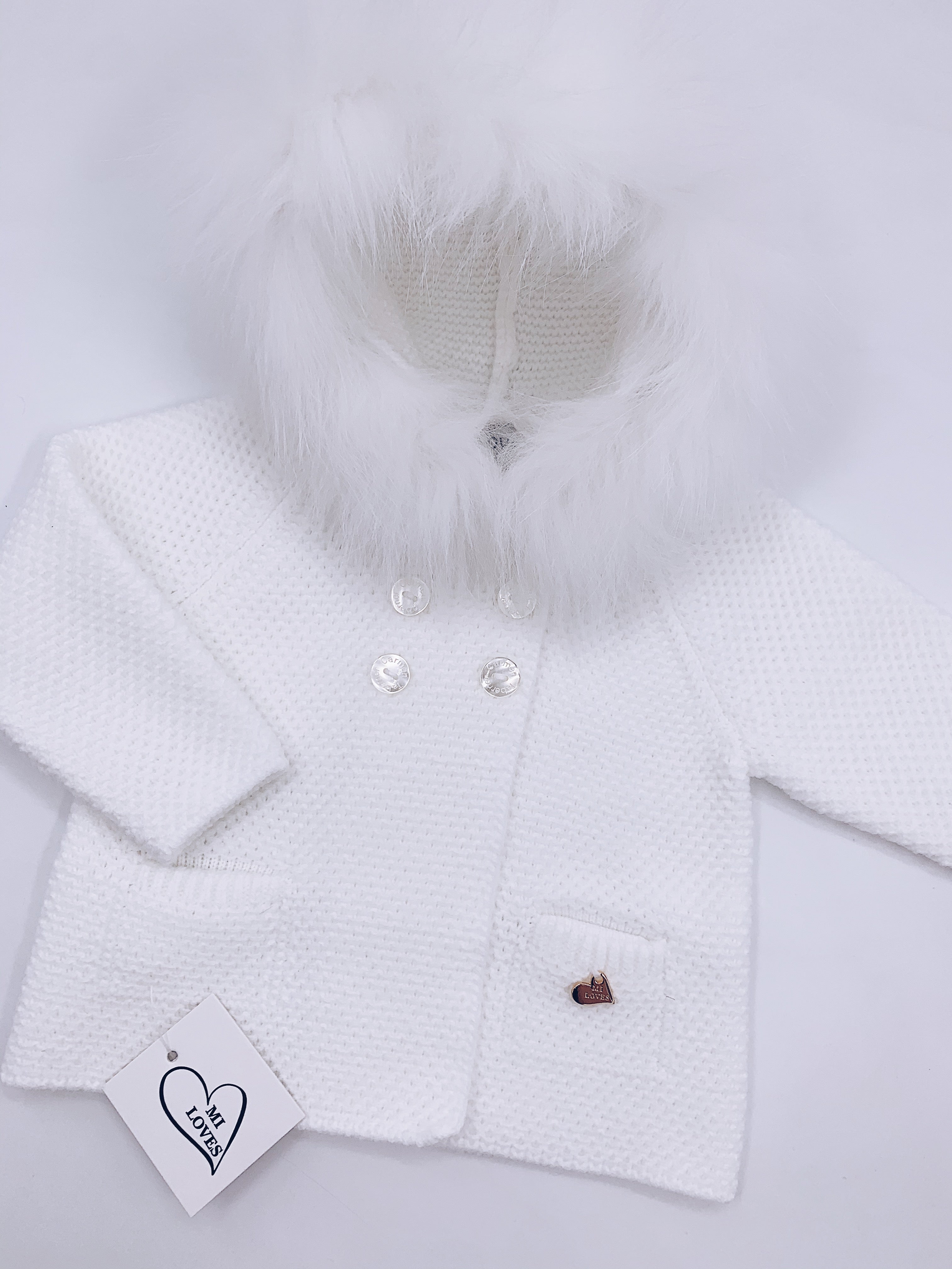 MI LOVES SIGNATURE Luxurious knitted cardigan with fox fur trim in White/Ivory
