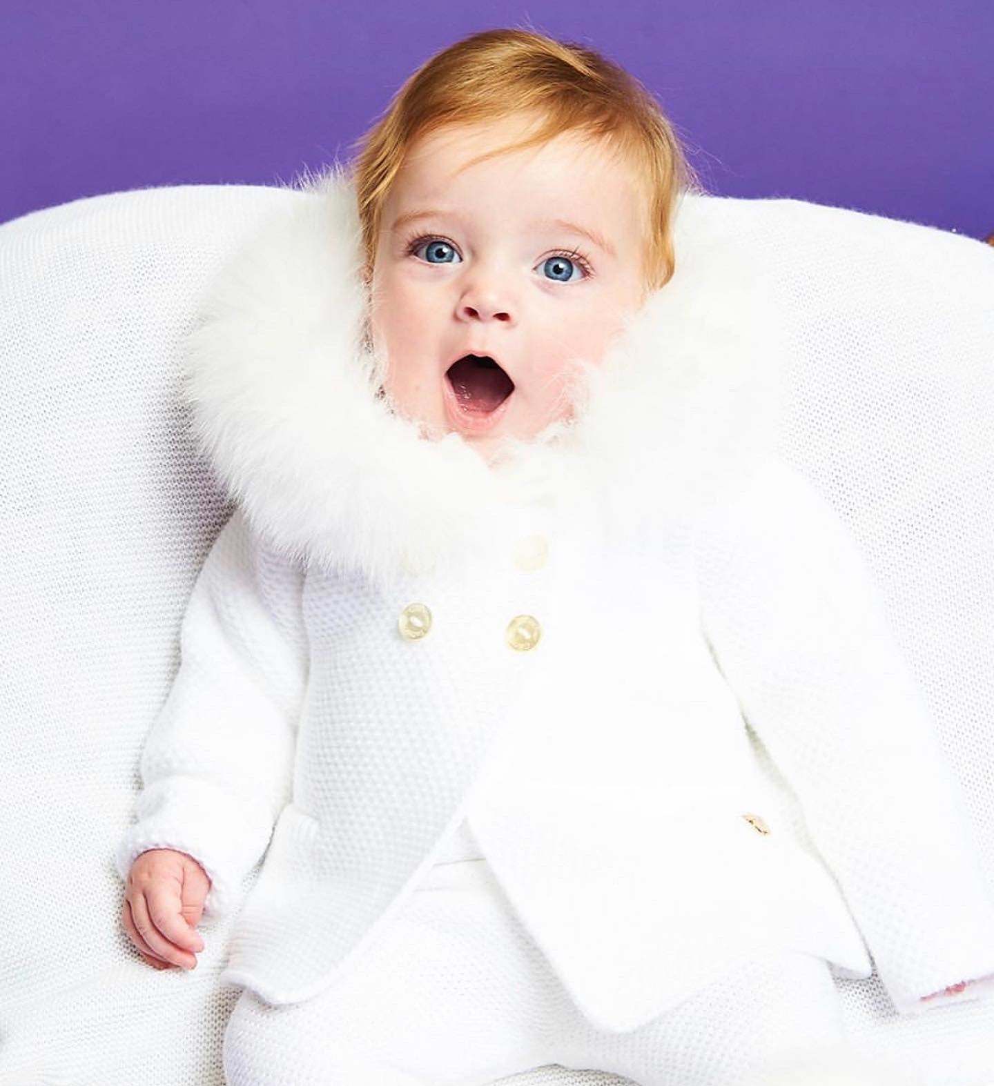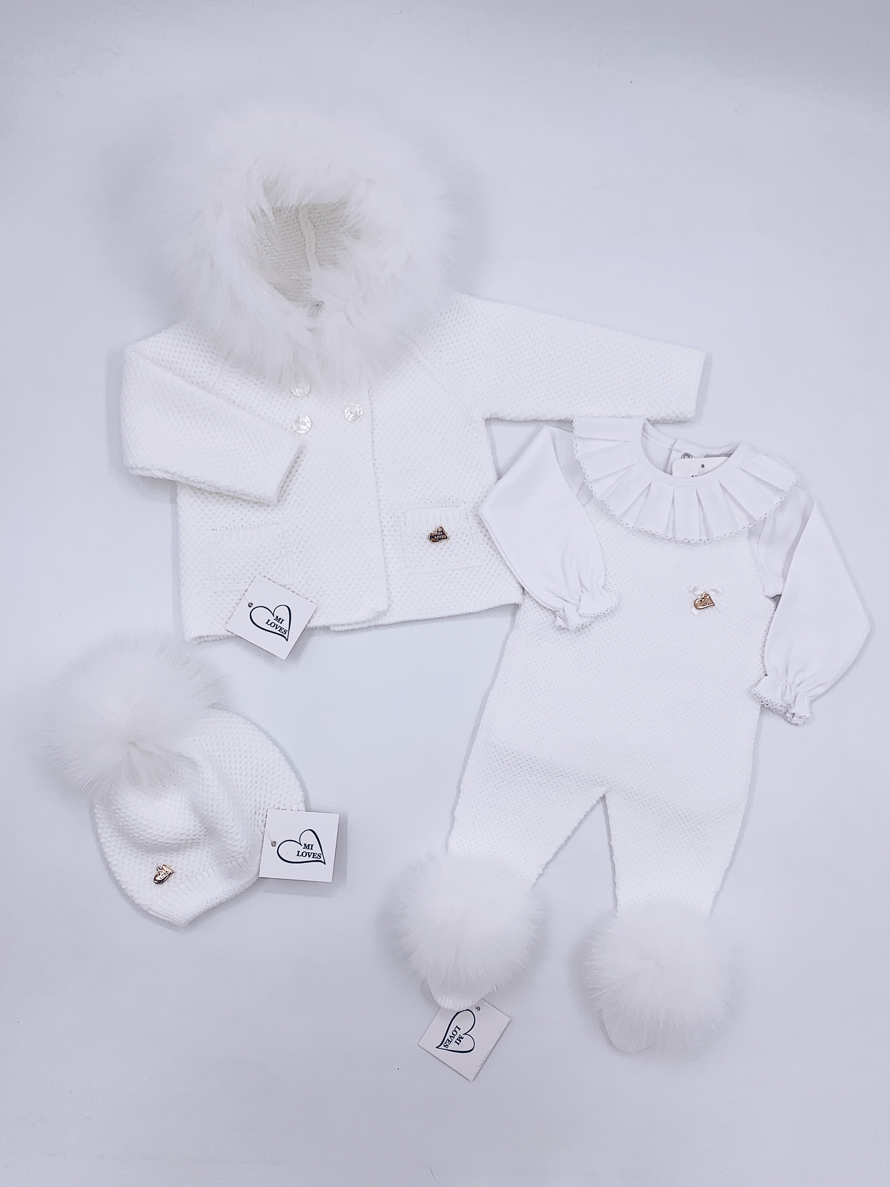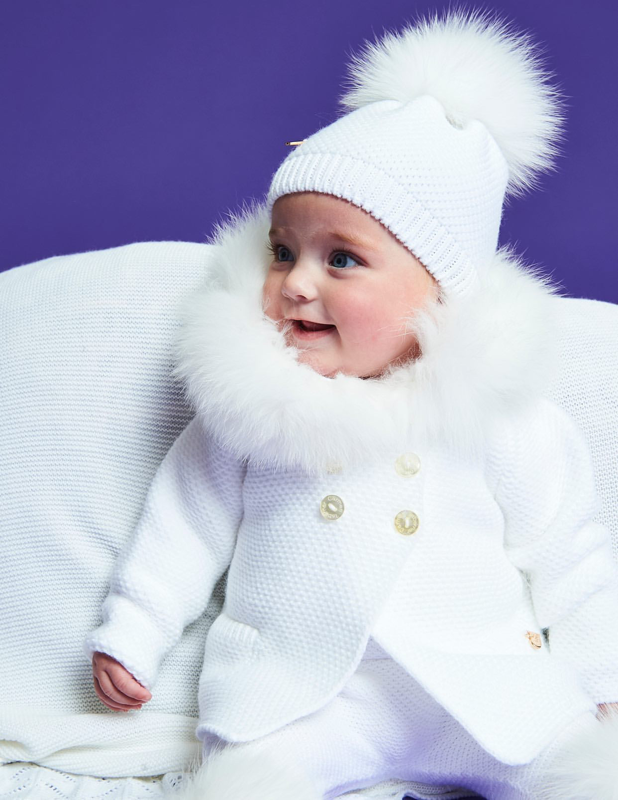 MI LOVES SIGNATURE Luxurious knitted cardigan with fox fur trim in White/Ivory