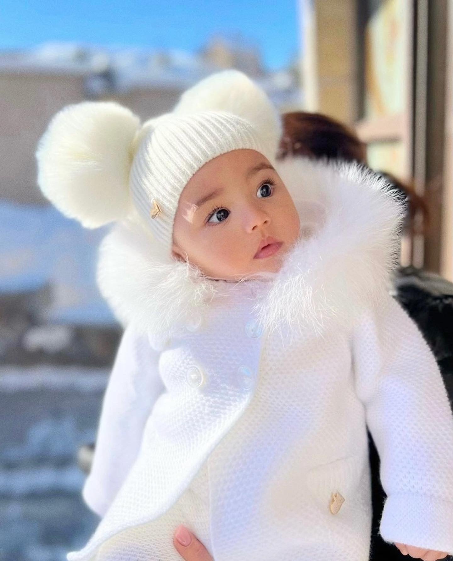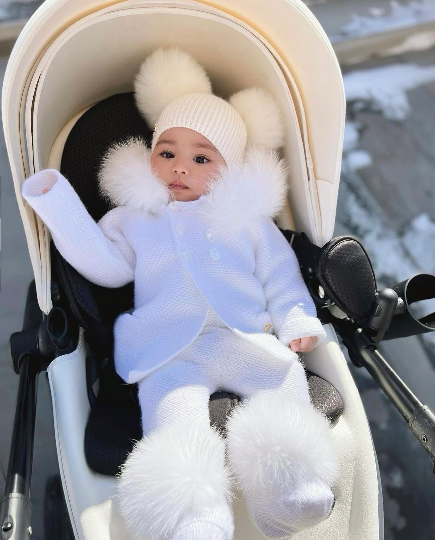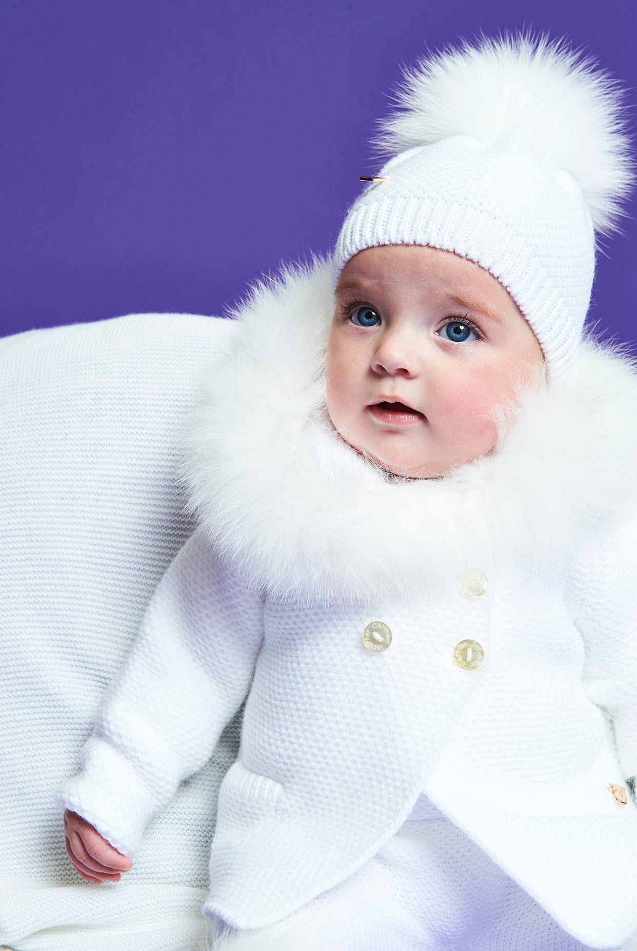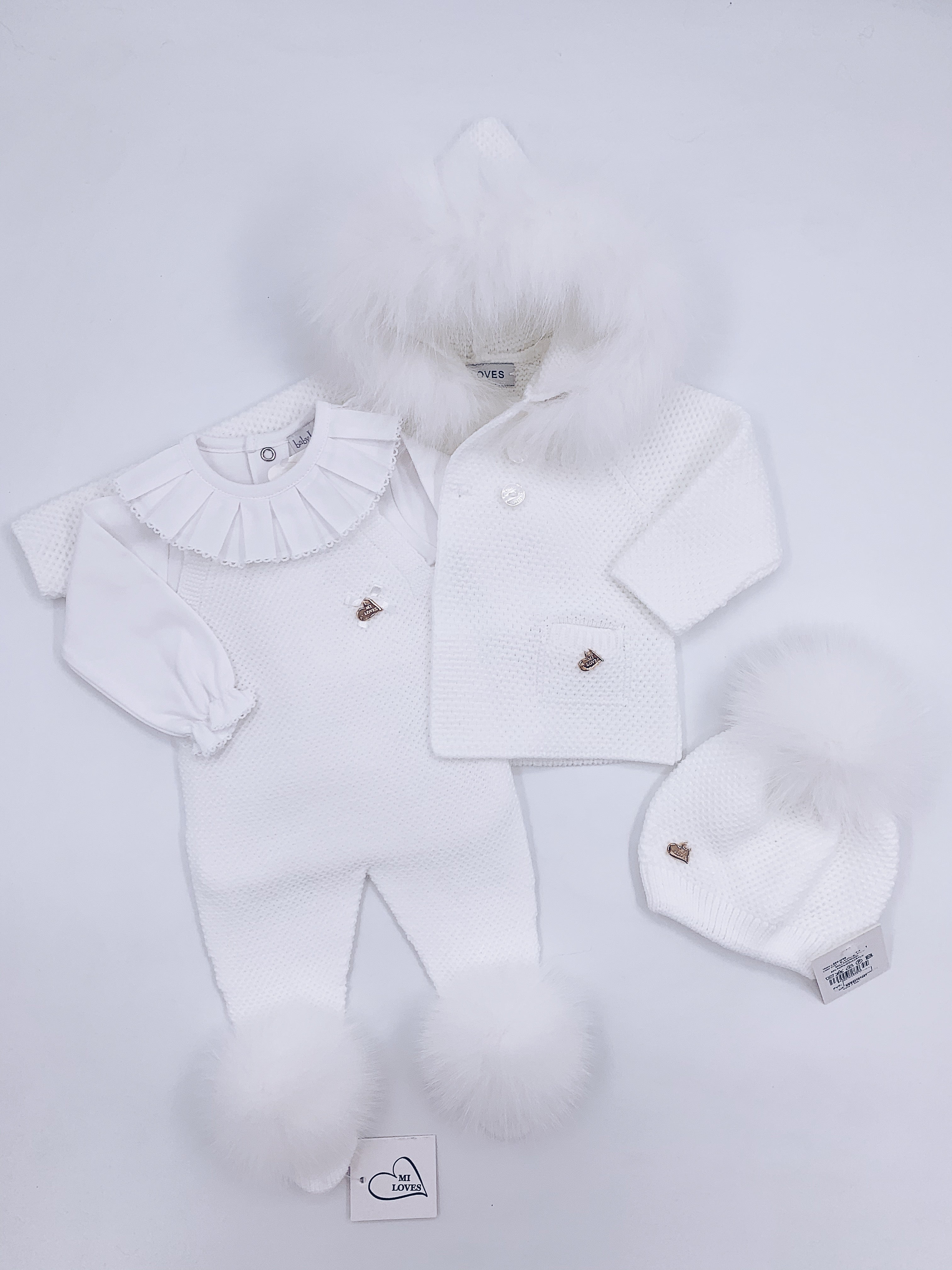 MI LOVES SIGNATURE Luxurious knitted cardigan with fox fur trim in White/Ivory