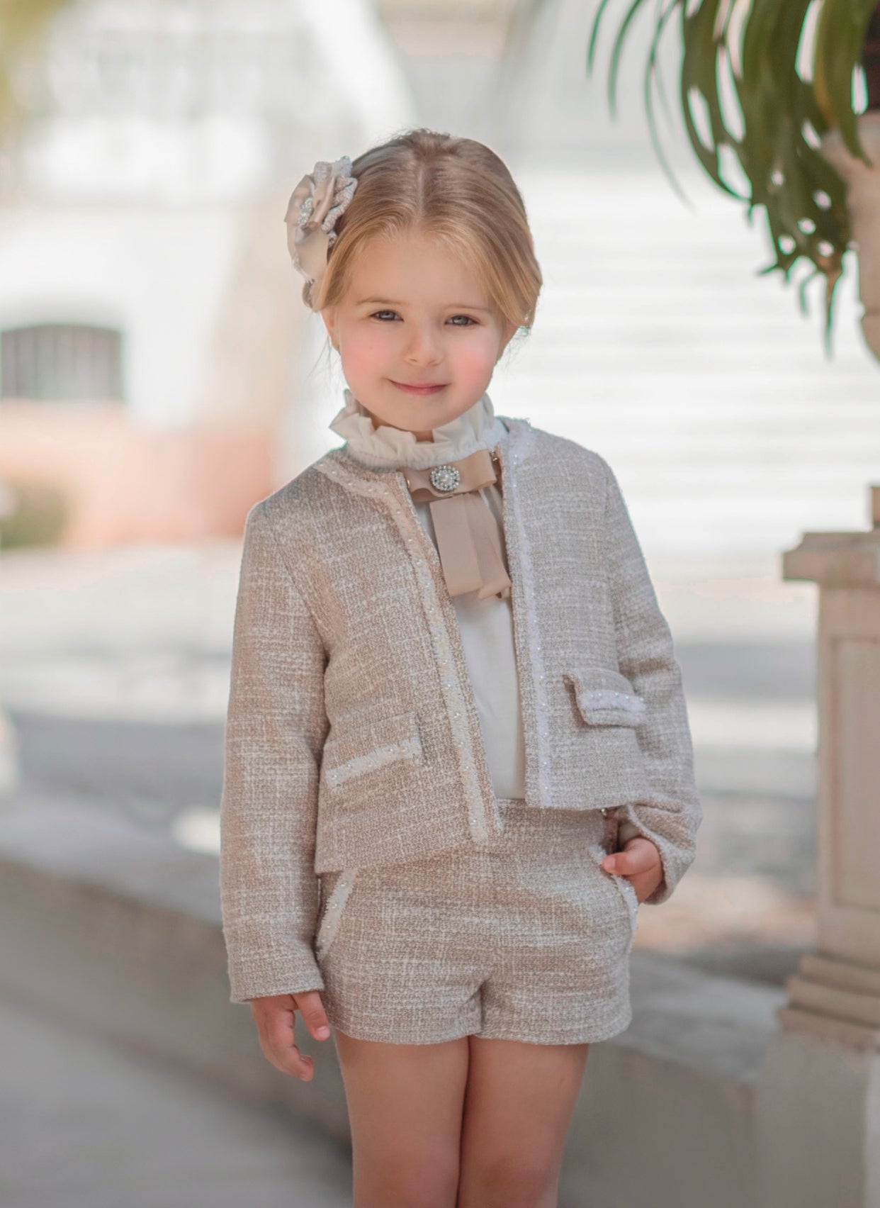 MI LOVES Beautiful tweed Shirt/Shorts 2 piece set.