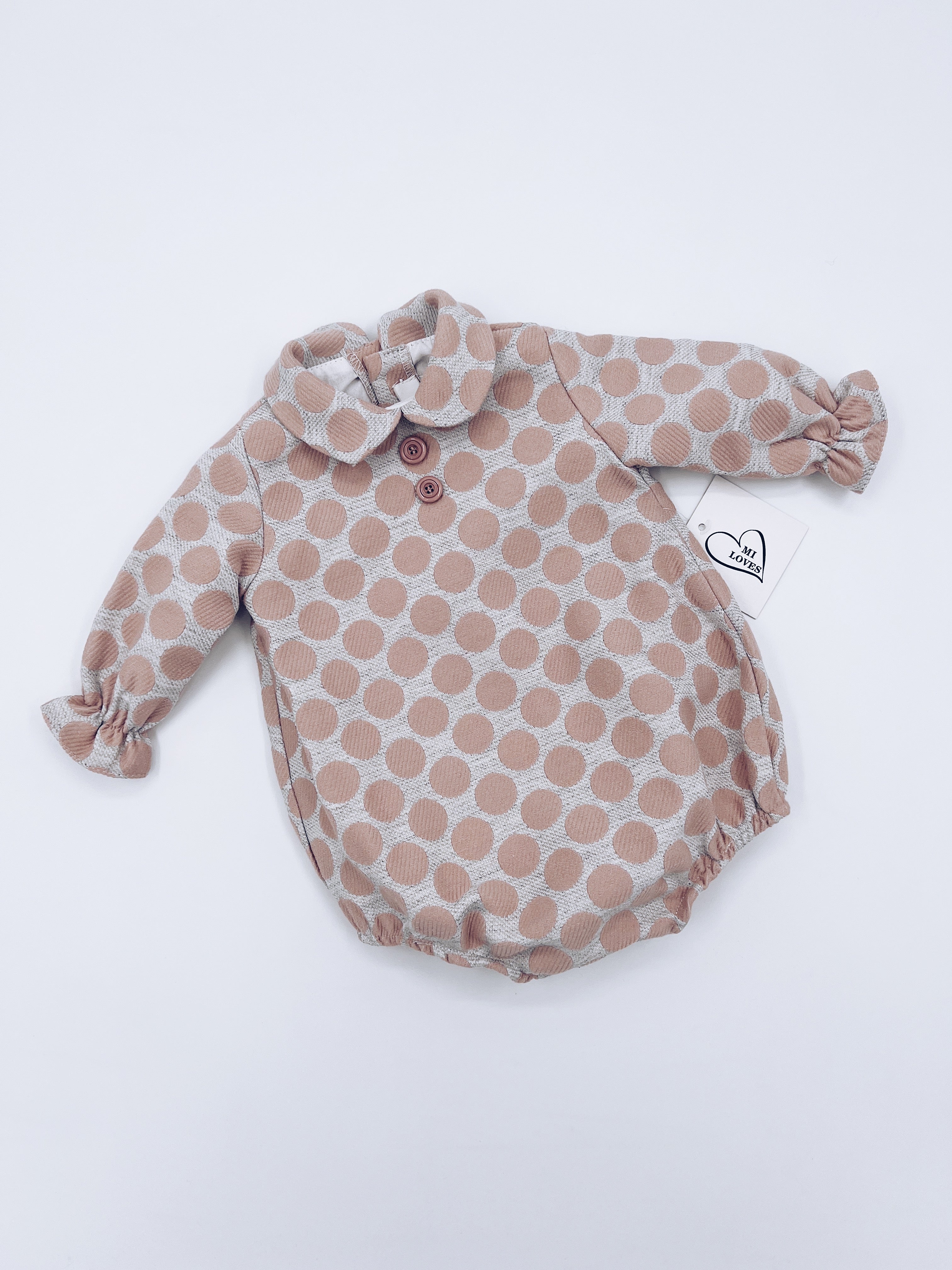 MI LOVES Pink romper with peter pan collar and lace details