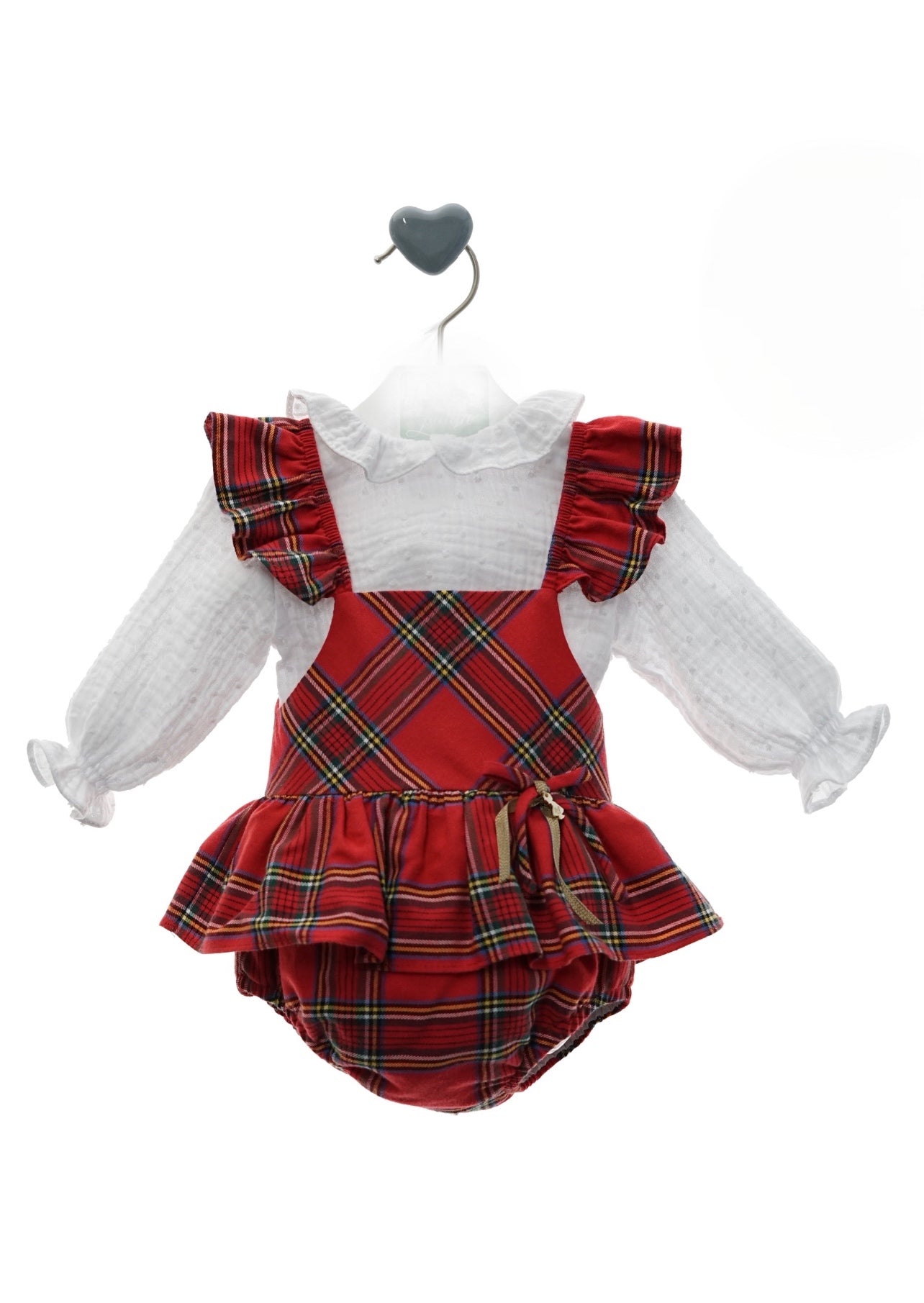 Red tartan romper with beautiful Bow and lace details