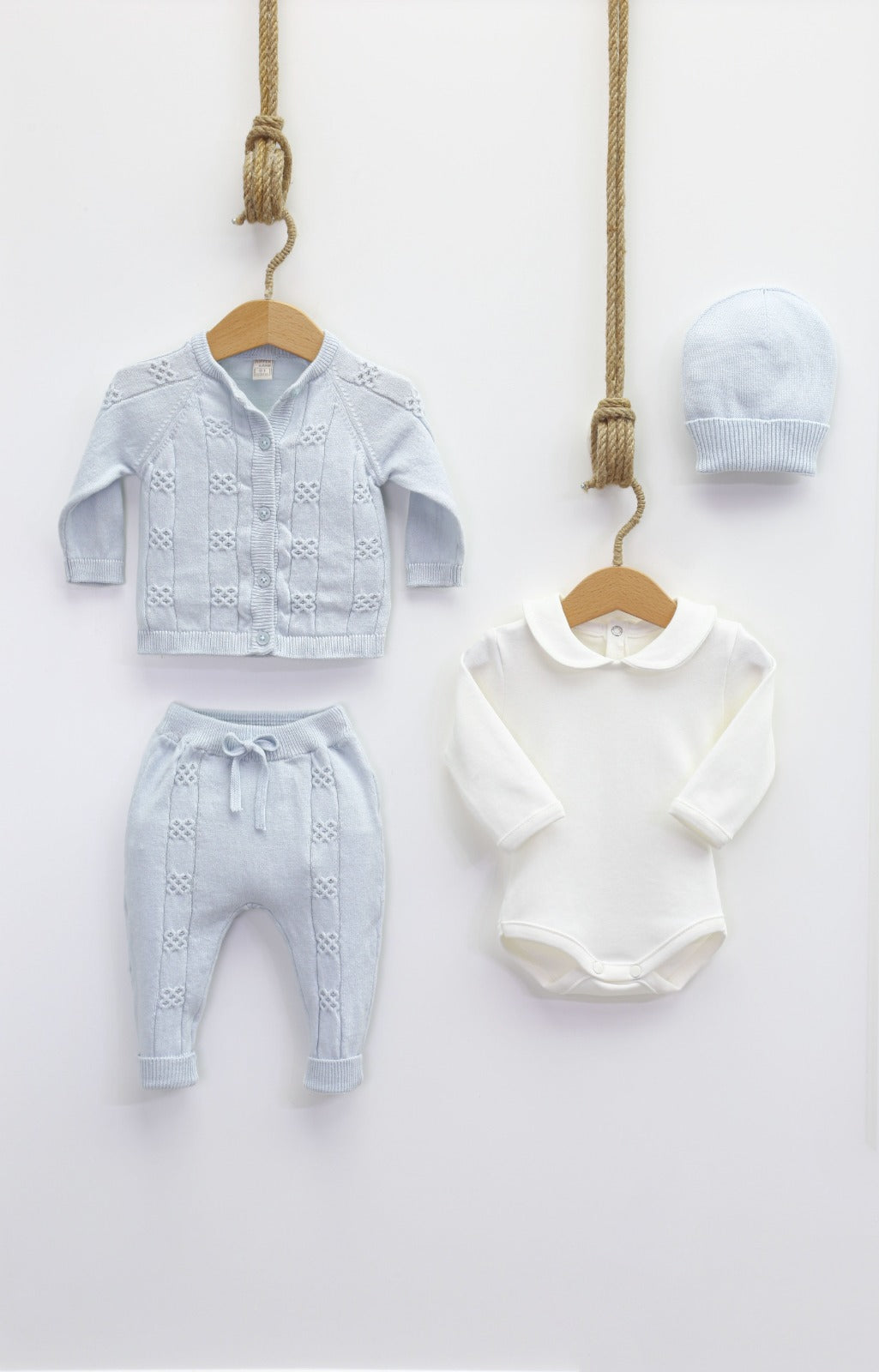 Beautiful Baby Blue Knitted Baby 4 piece set(Jumper/Trousers/Hat/Bodysuit)