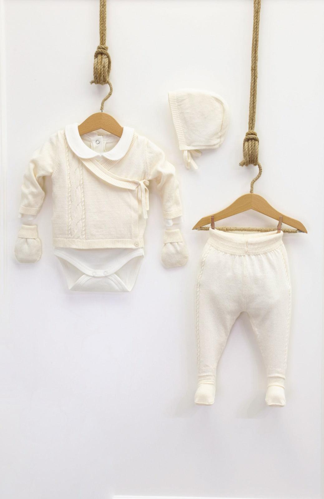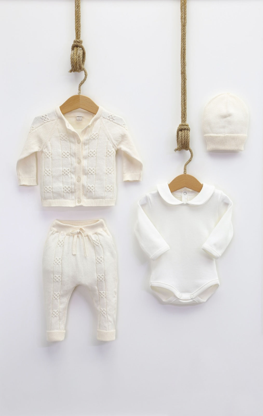 Beautiful Ivory Knitted Baby 4 piece set(Jumper/Trousers/Hat/Bodysuit)