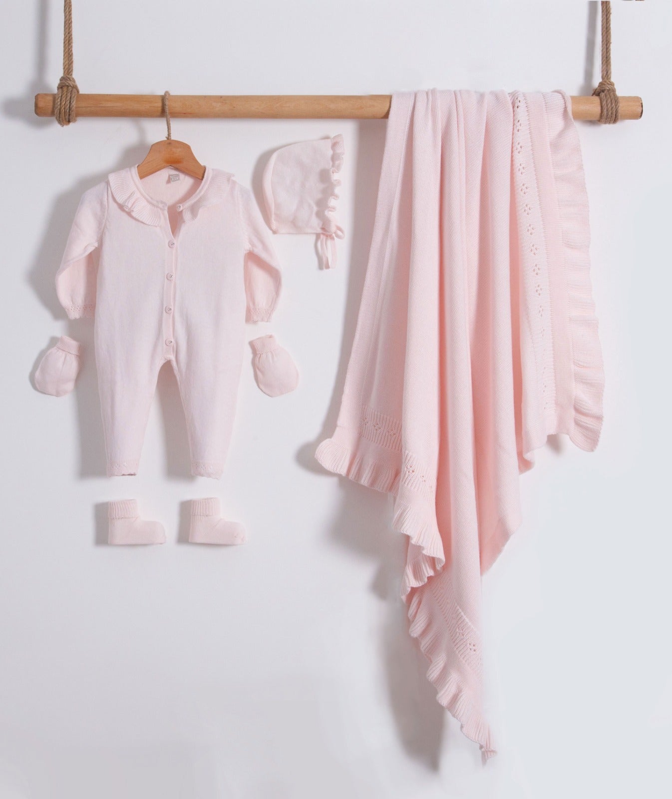 Beautiful Baby Pink Baby girl 5 piece Hospital/Coming home set(including Blanket/Romper/Mittens/Booties/Hat)
