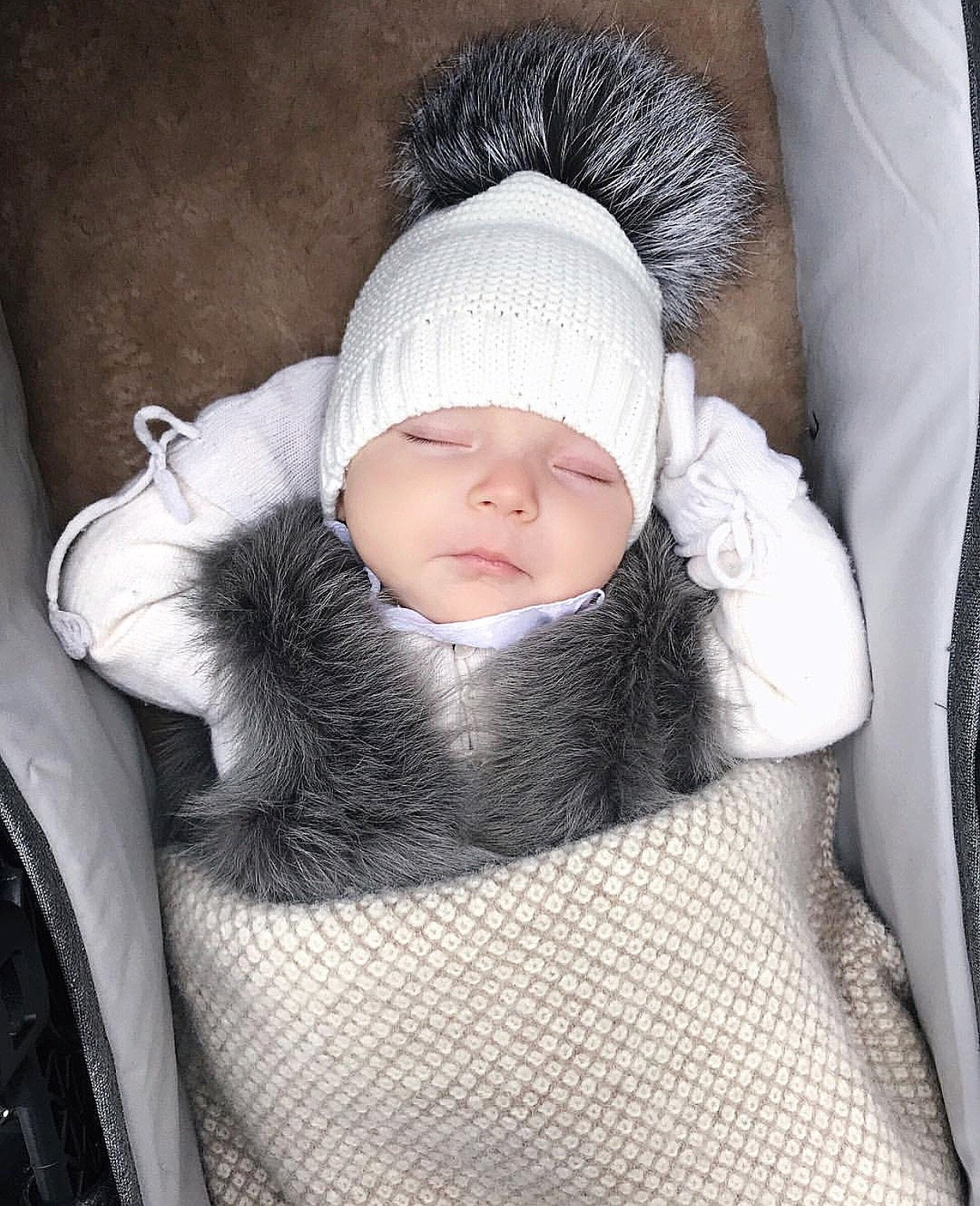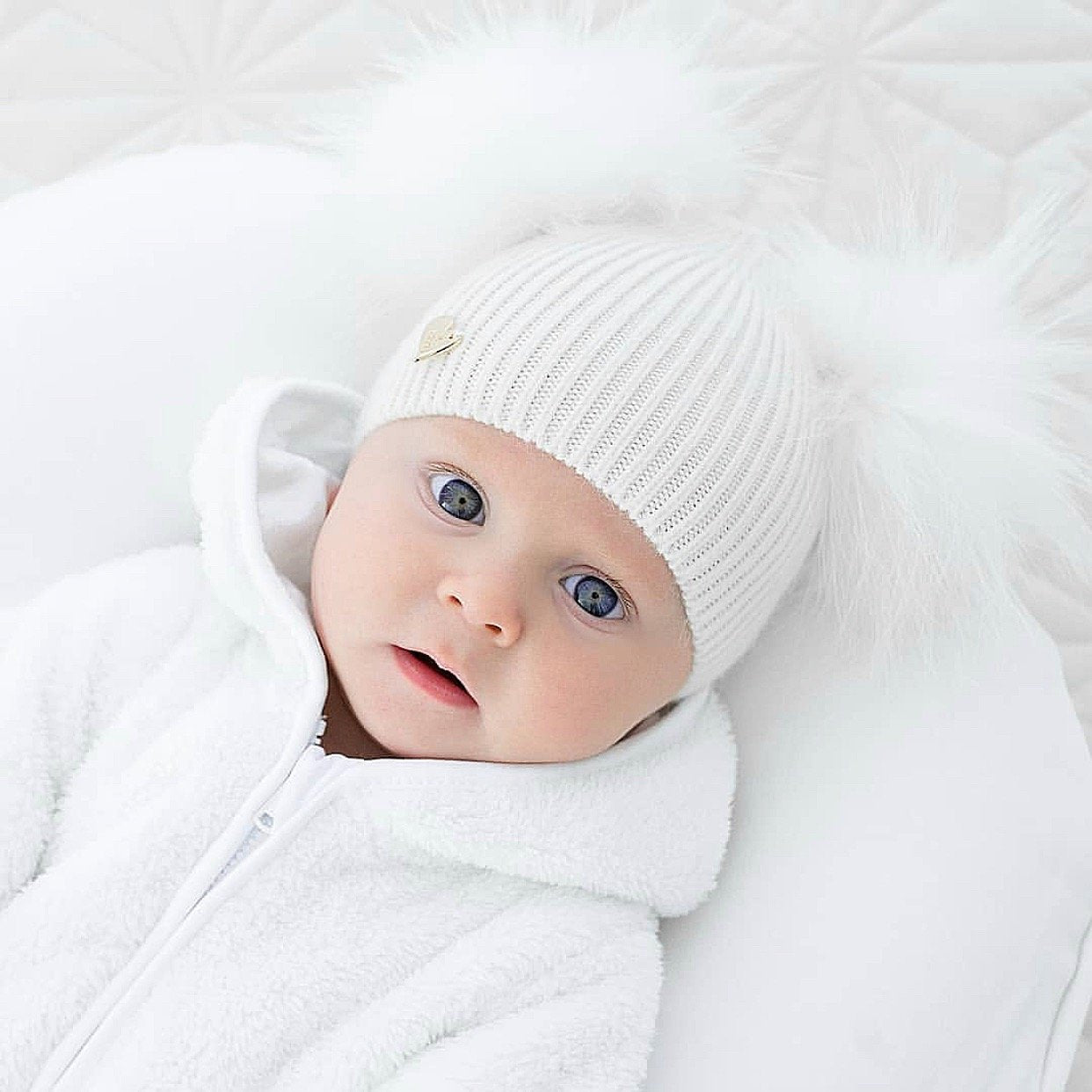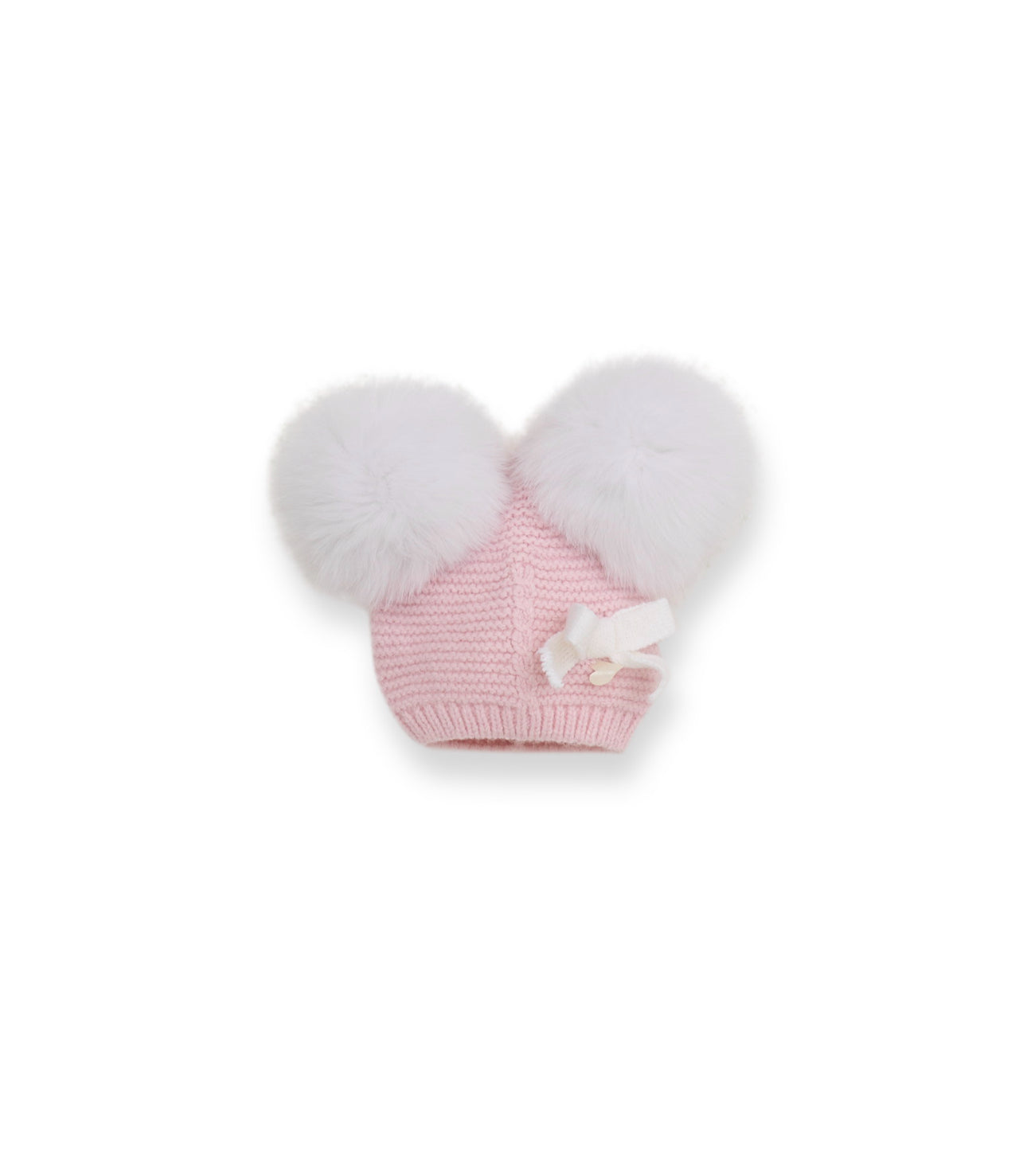 MI LOVES SIGNATURE Angora Baby Double pompom hat with Synthetic fur pom-poms.