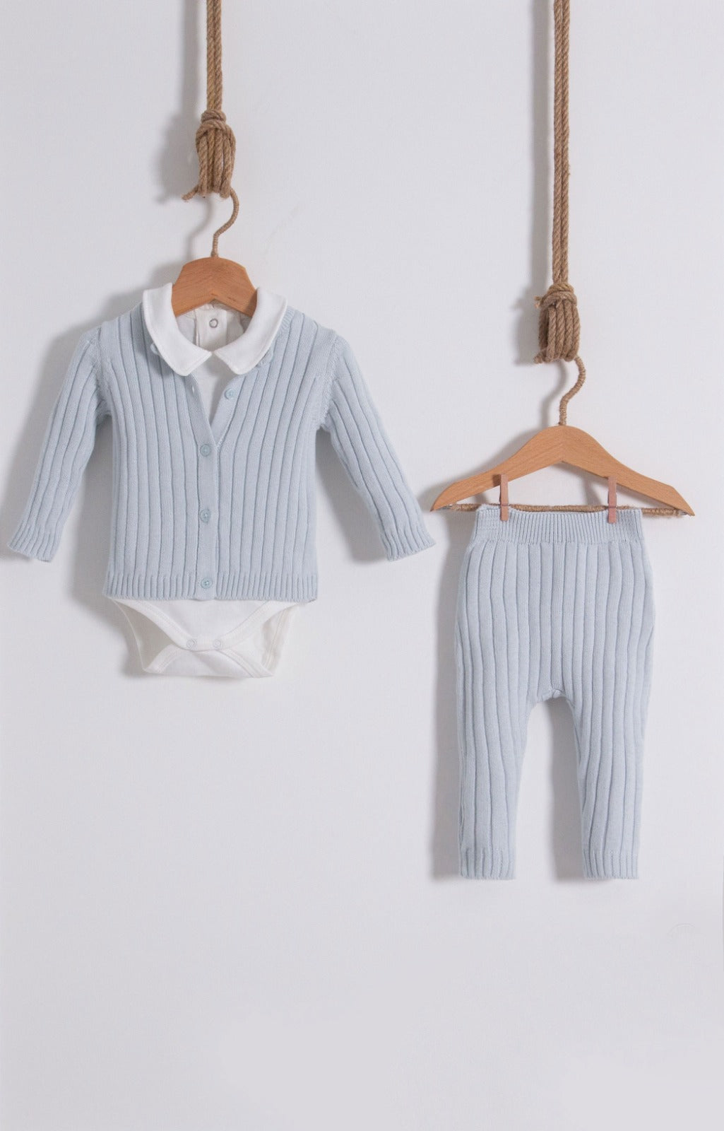 Beautiful Baby Blue Knitted Baby 3 piece set(Jumper/Trousers/Bodysuit)