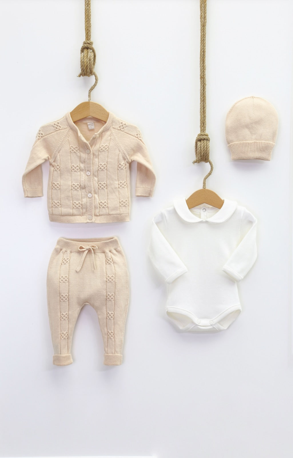 Beautiful Cappuccino Knitted Baby 4 piece set(Jumper/Trousers/Hat/Bodysuit)
