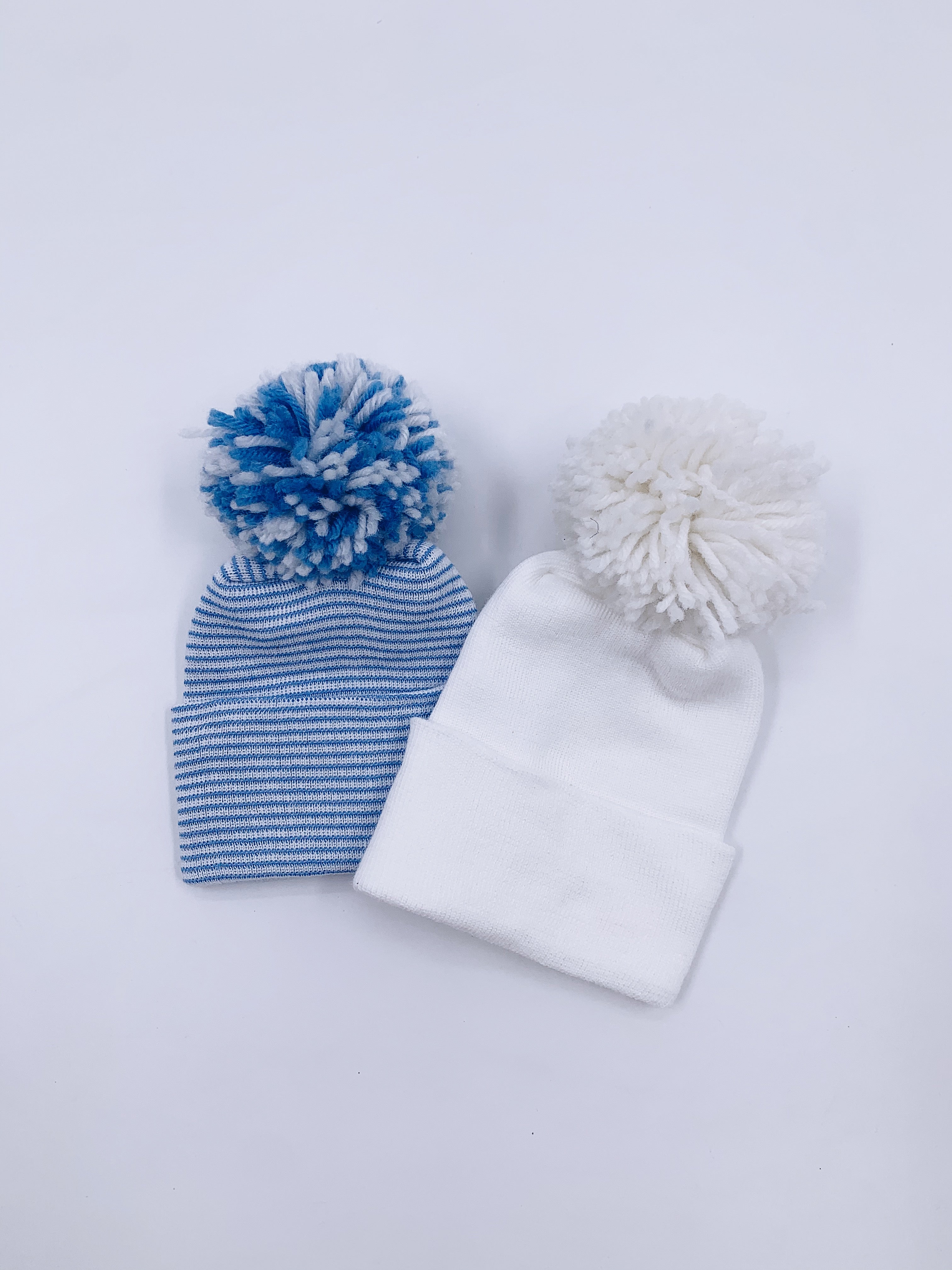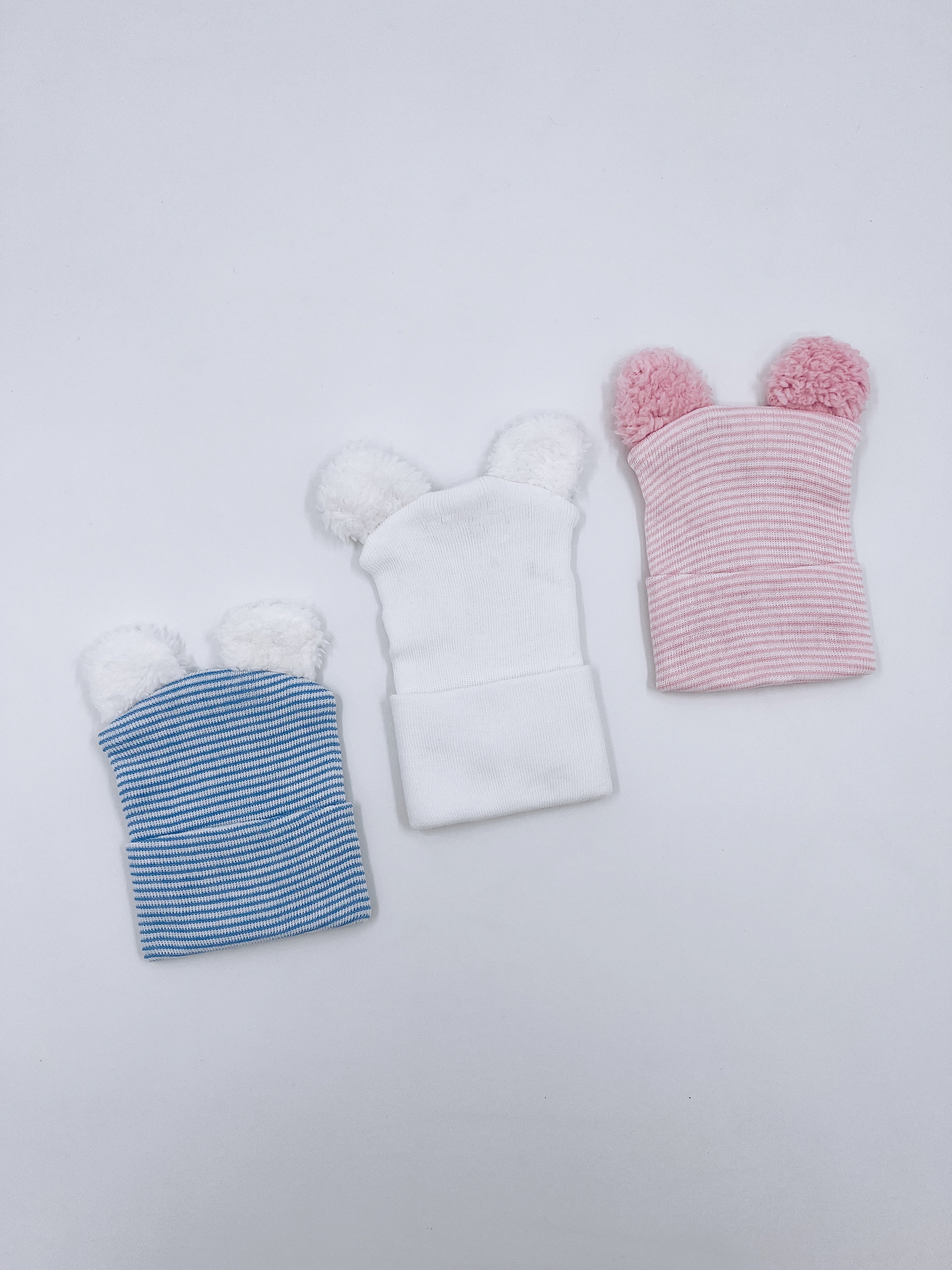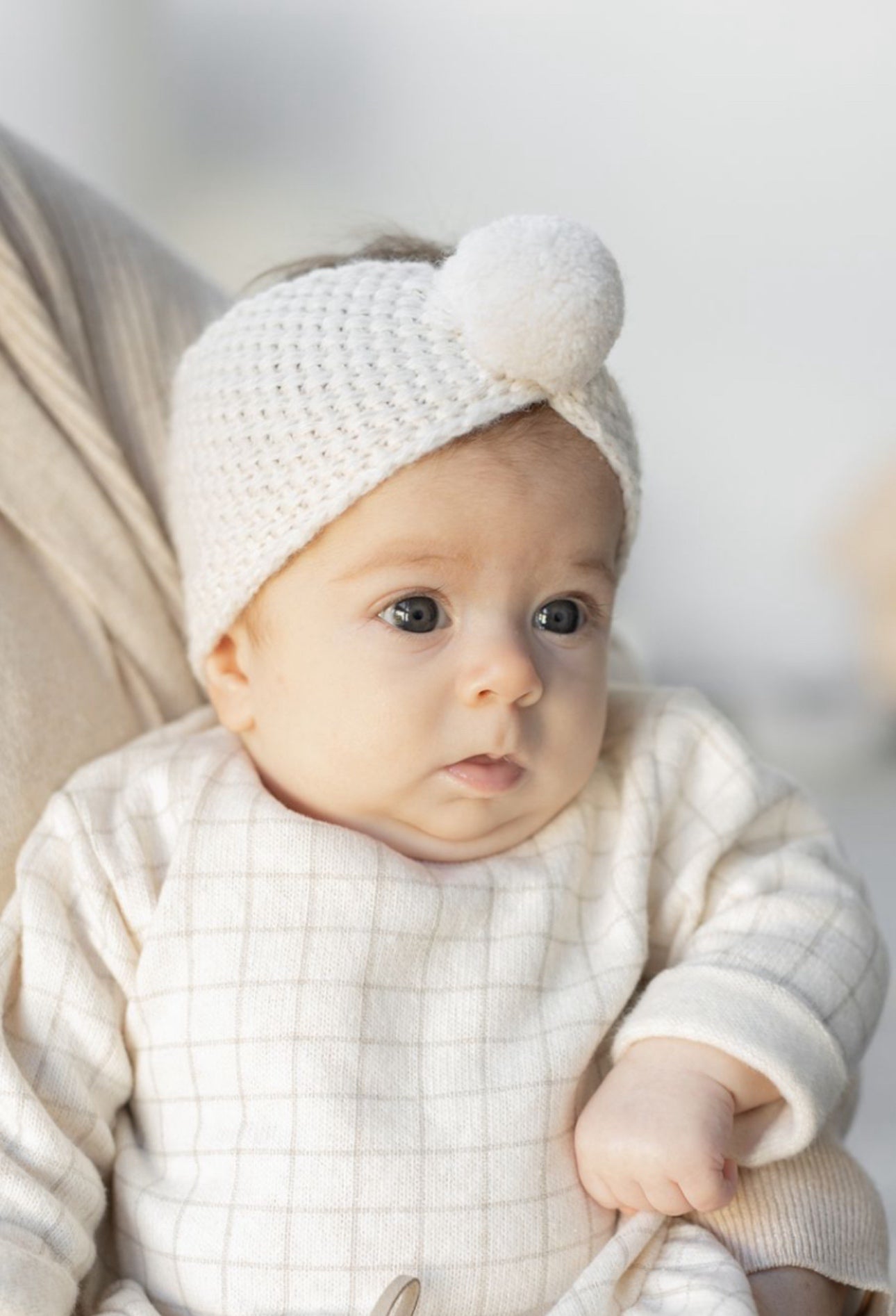 Ivory MI LOVES SIGNATURE Little Doll Double pompom hat.