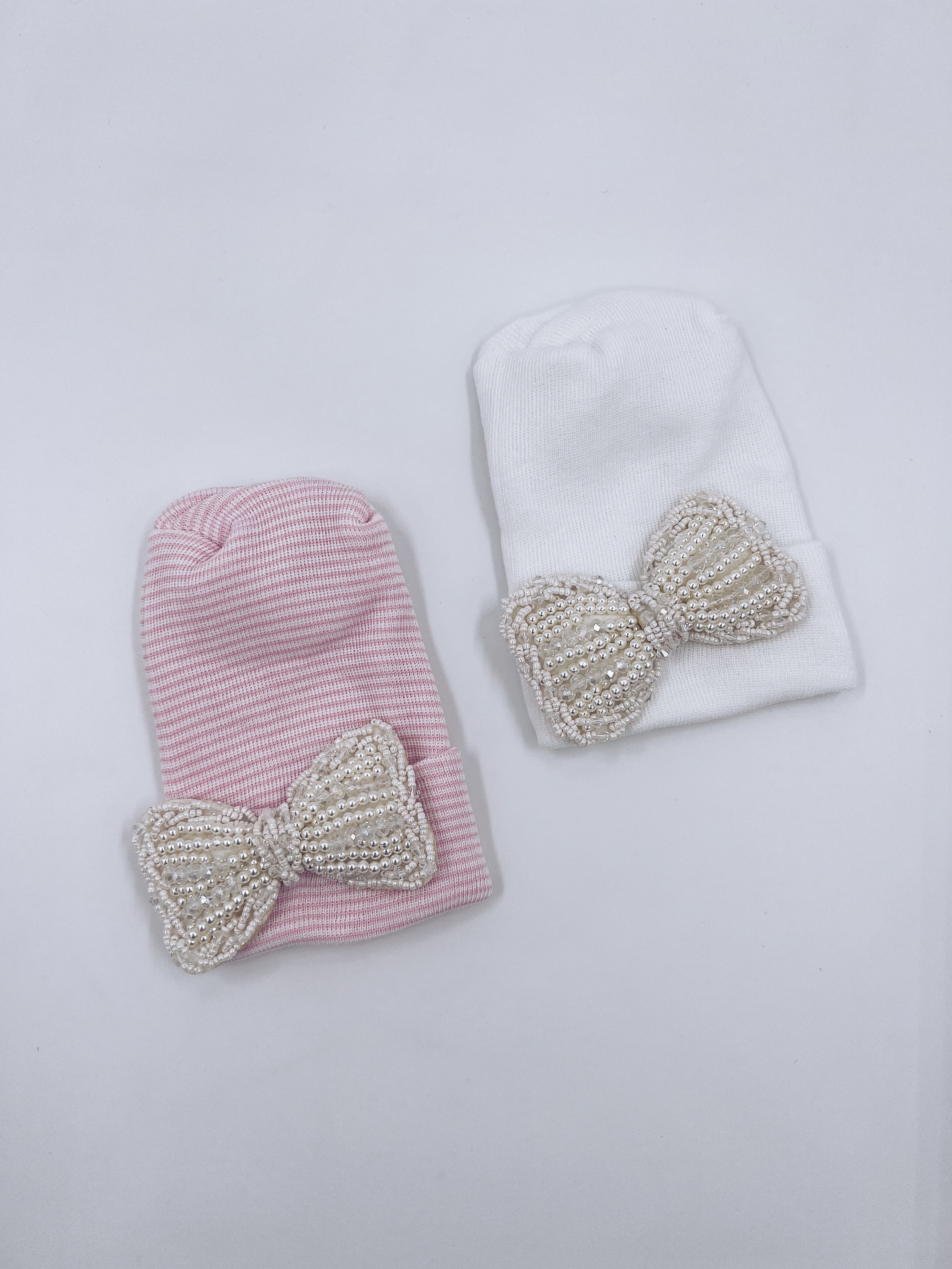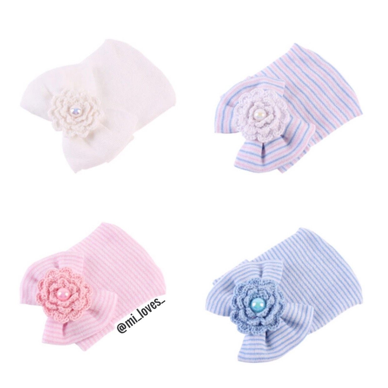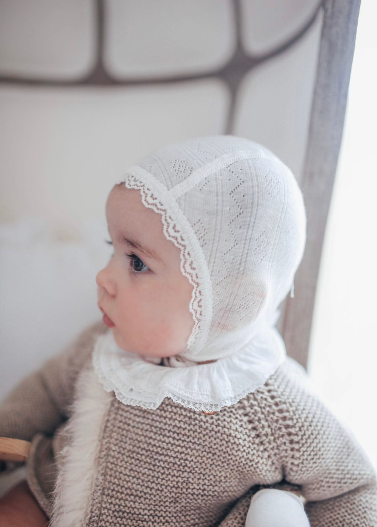 Beautiful knitted Merino wool Ivory/White Baby girl hat with Bow details.