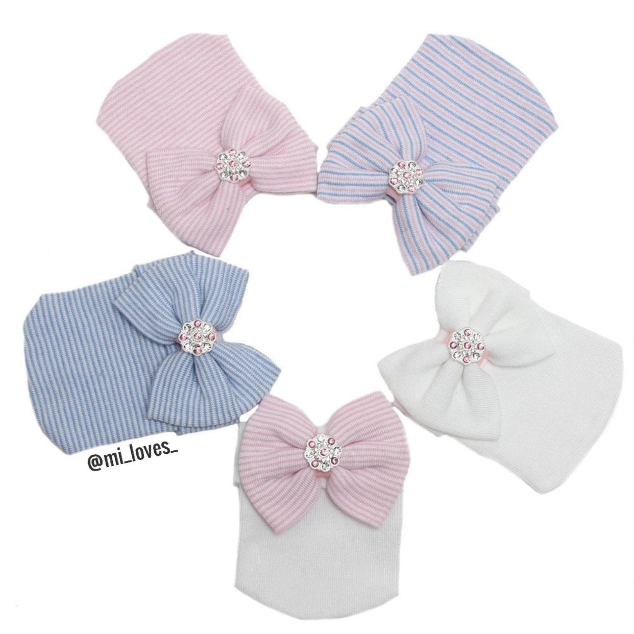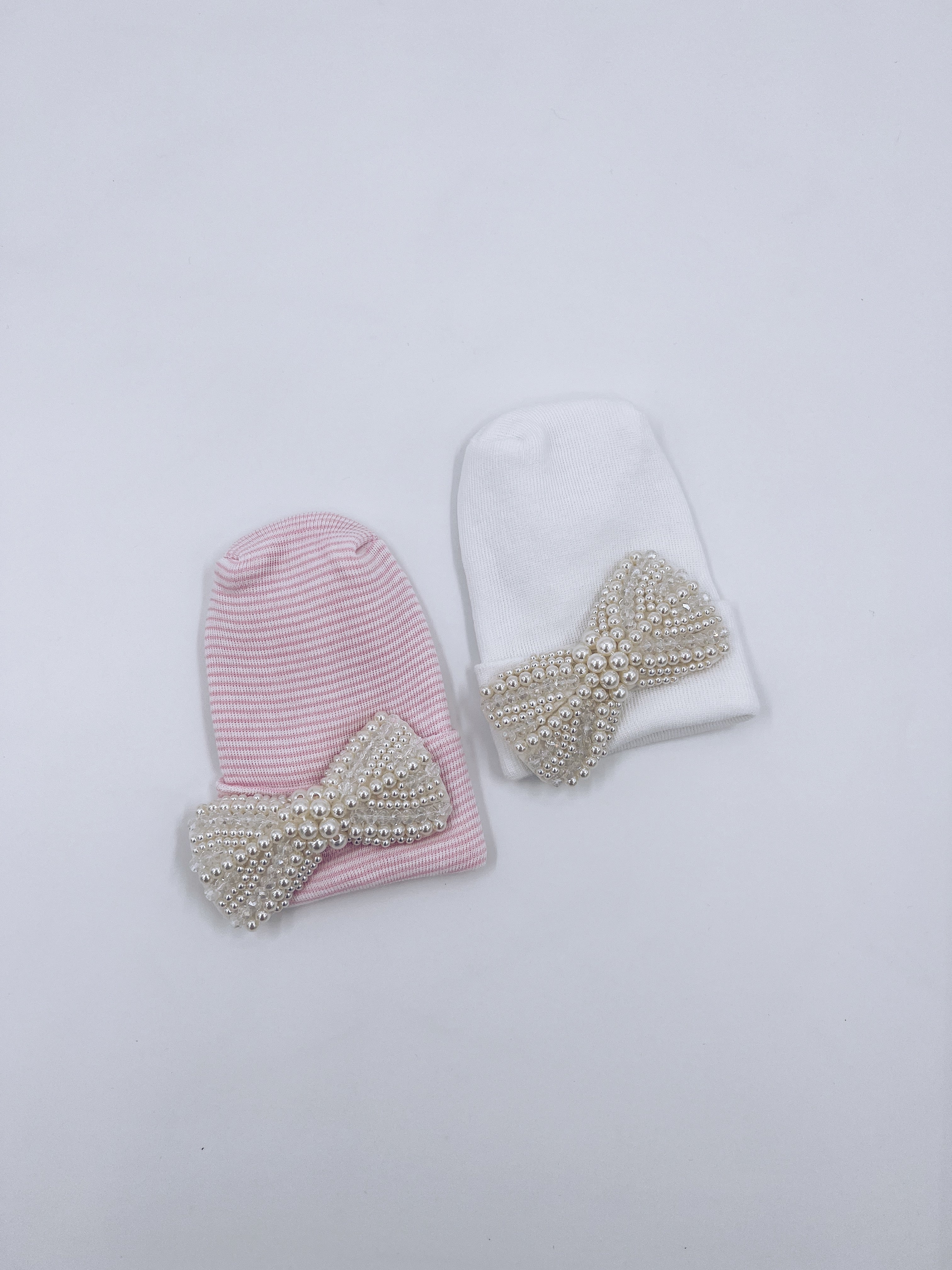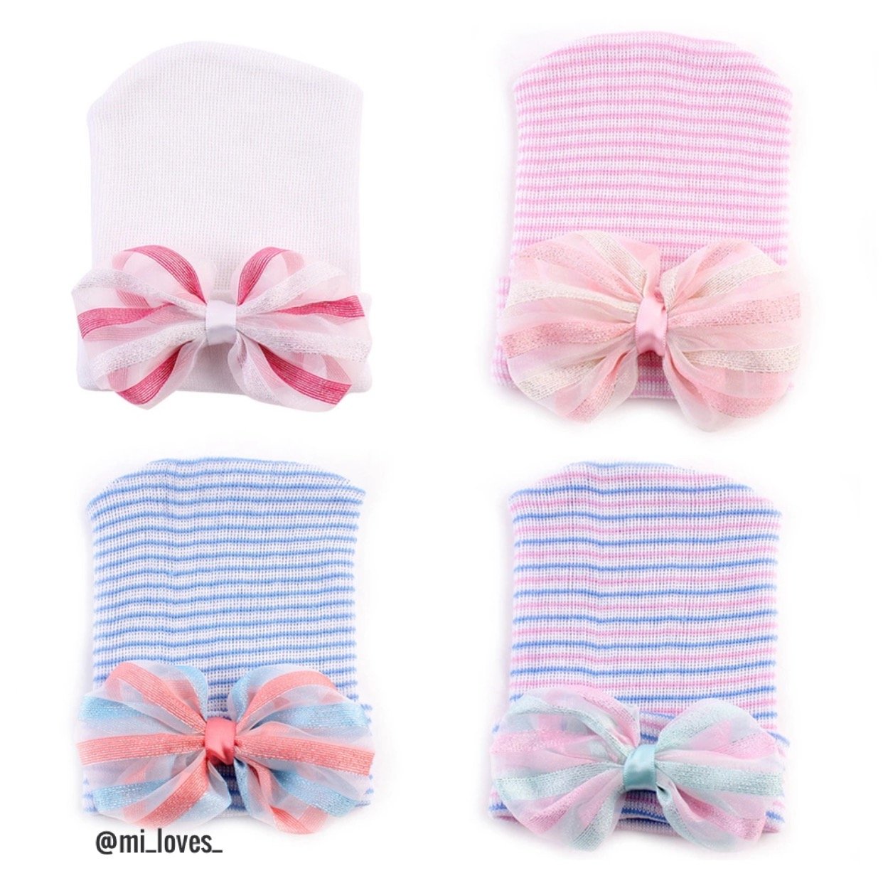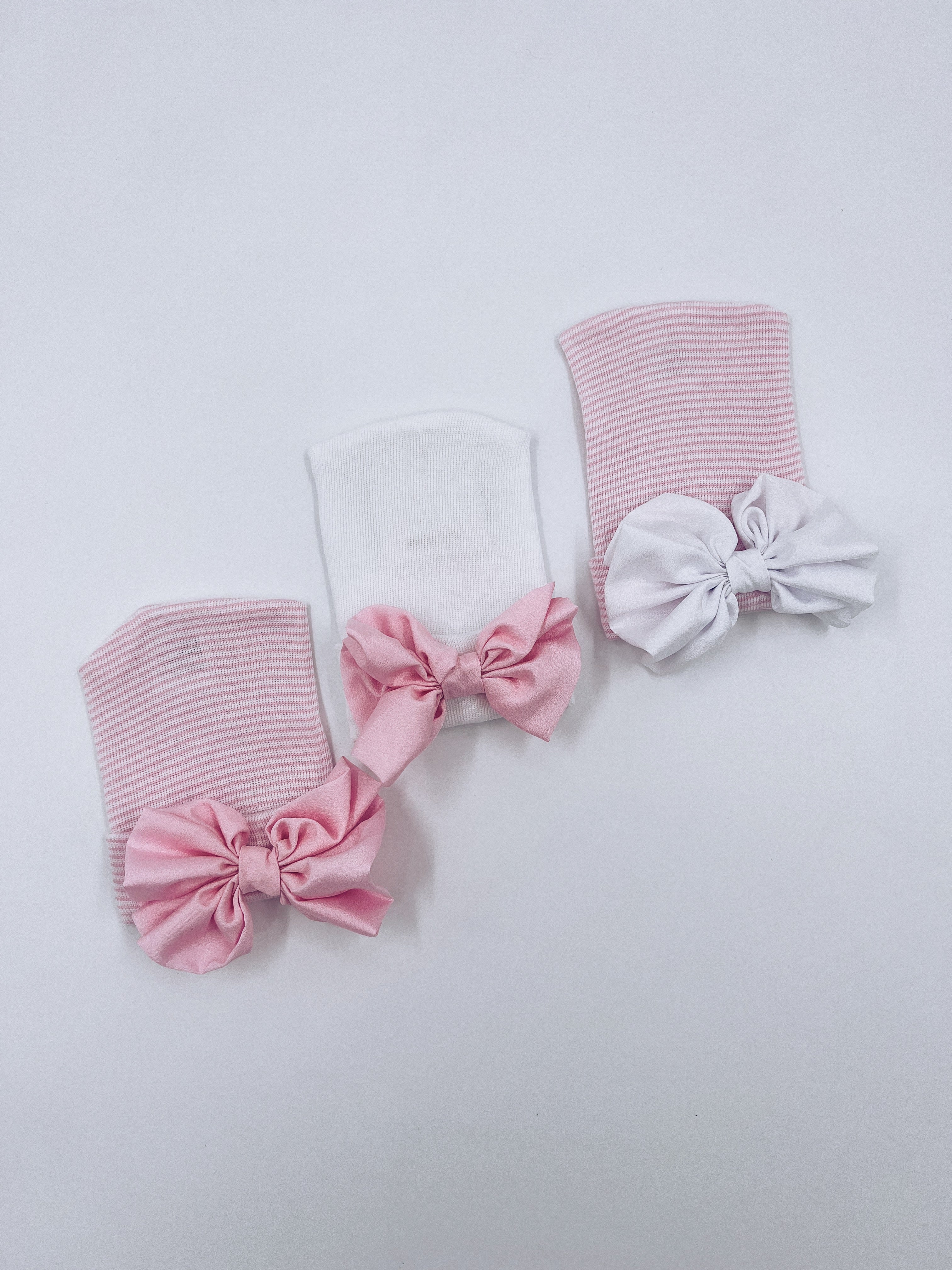Beautiful knitted Merino wool Pink Baby girl hat with Bow details.