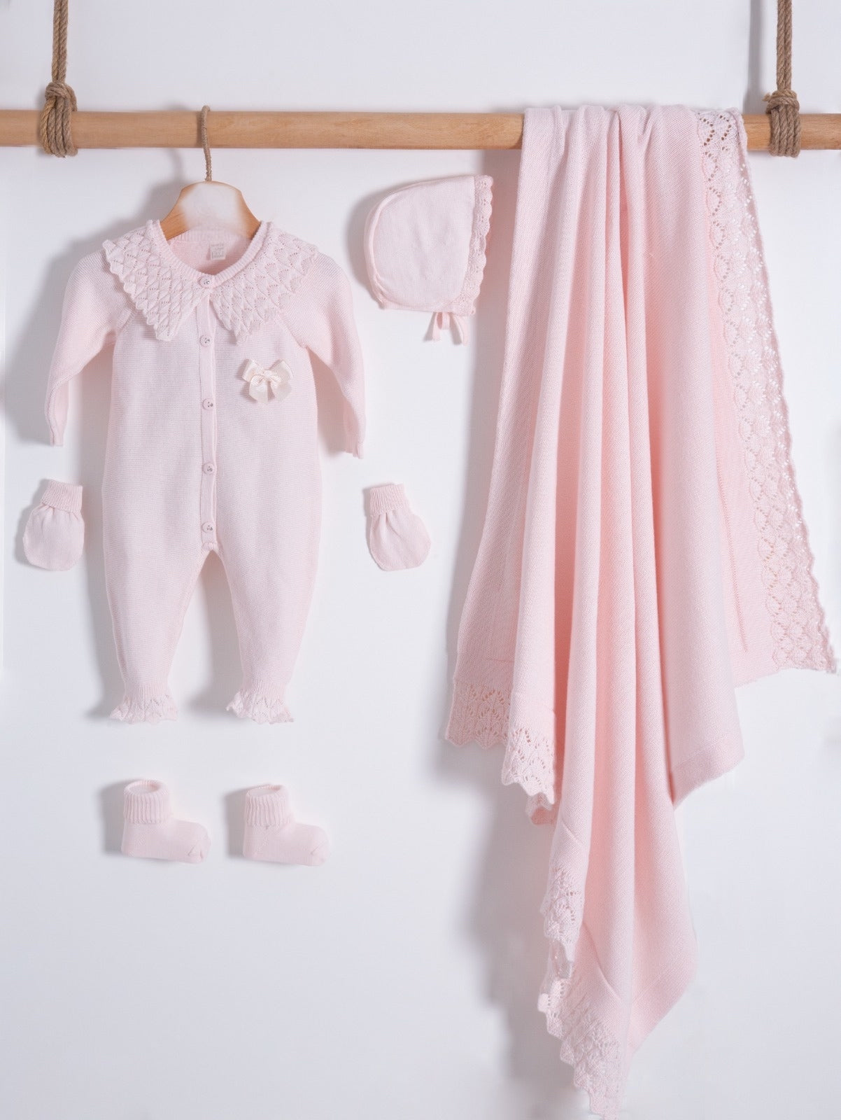 Beautiful Baby girl Pink 5 piece Hospital/Coming home set(including Blanket/Romper/Mittens/Booties/Hat)
