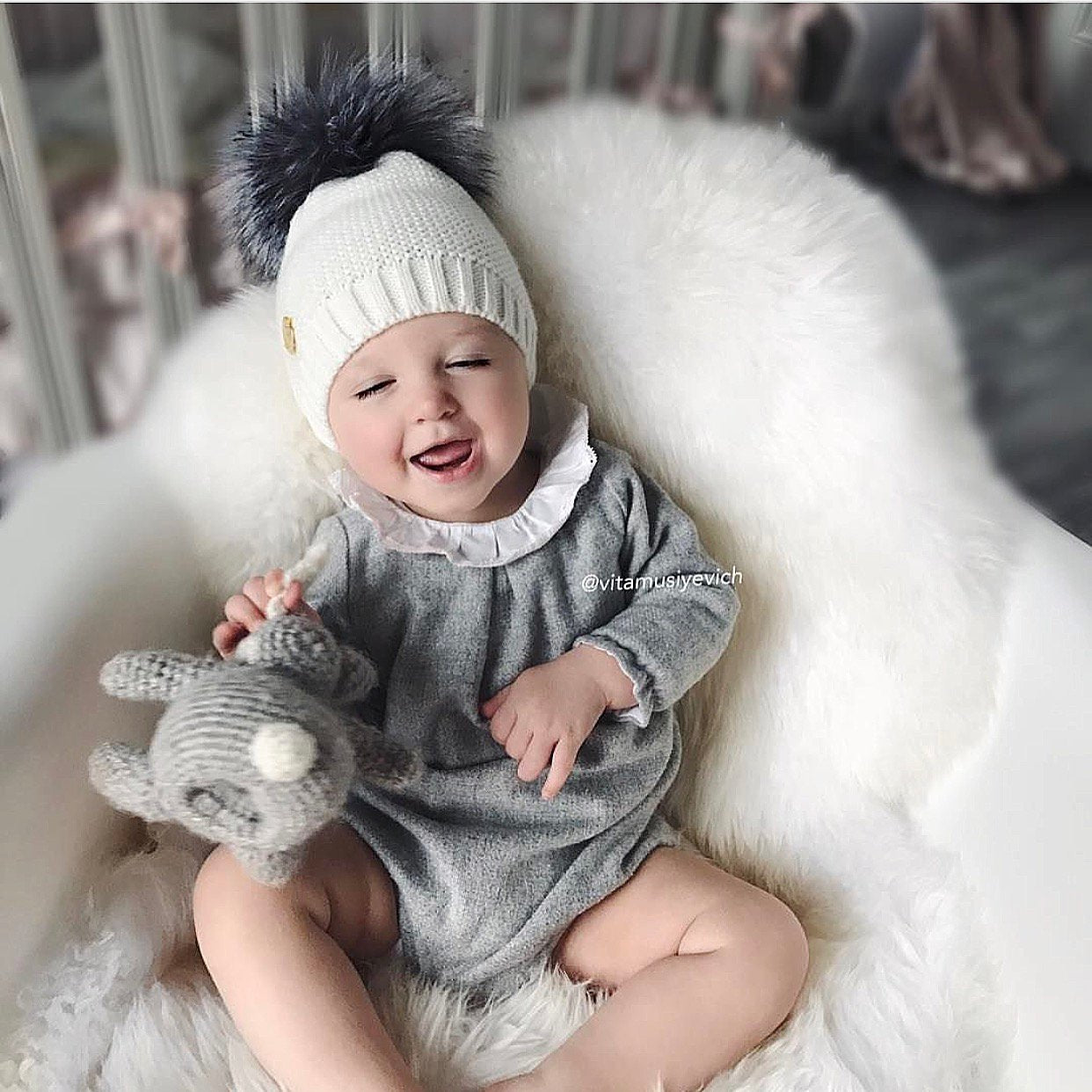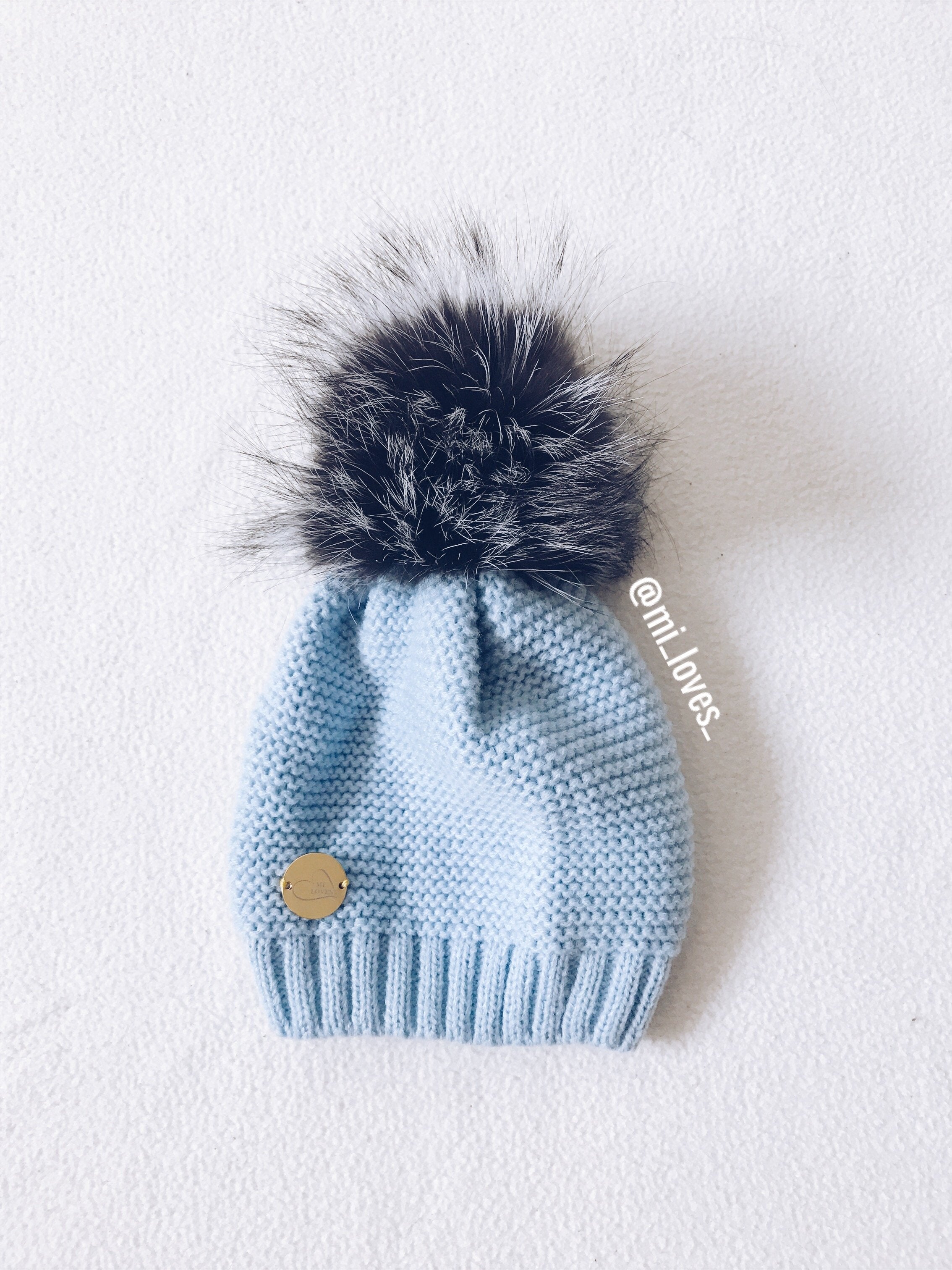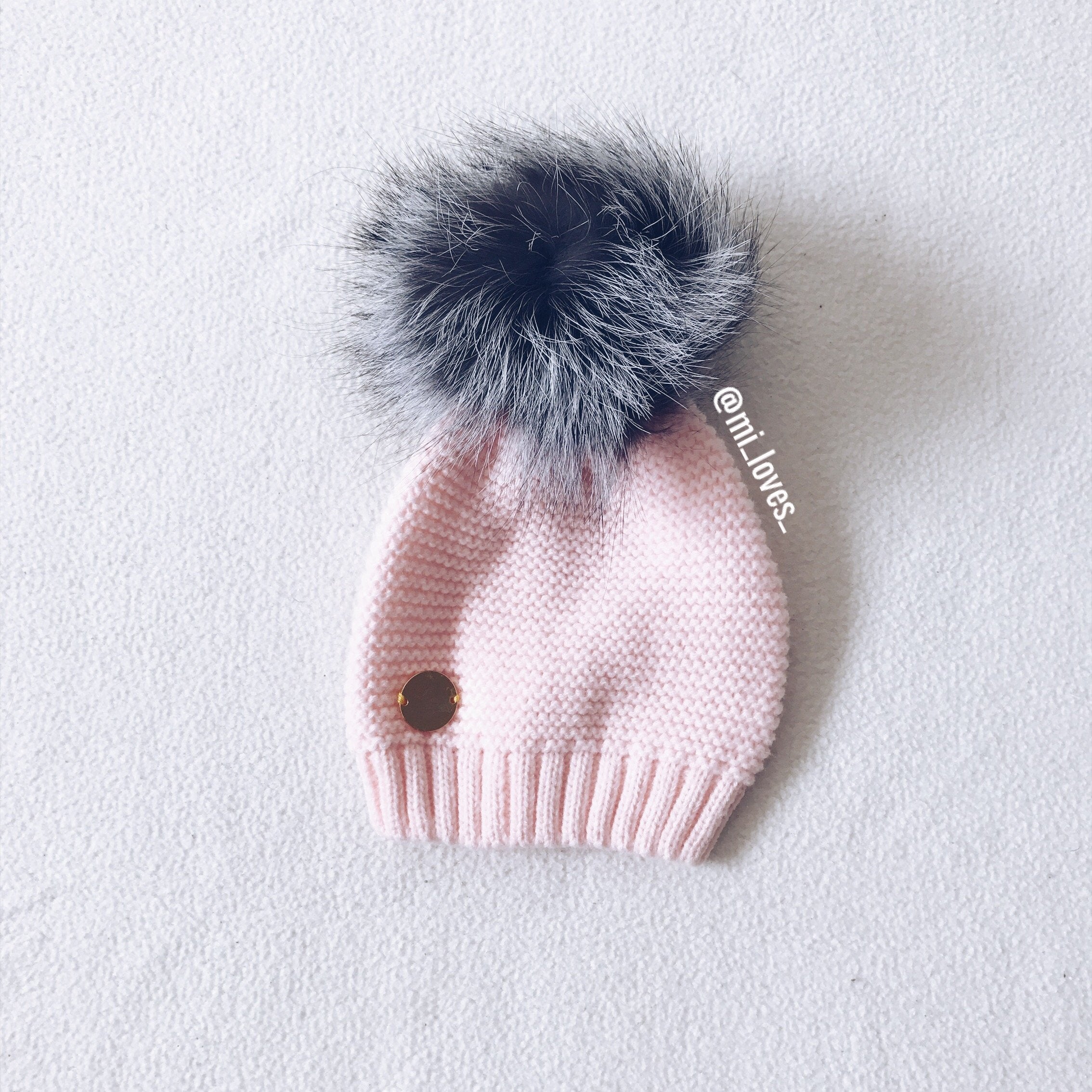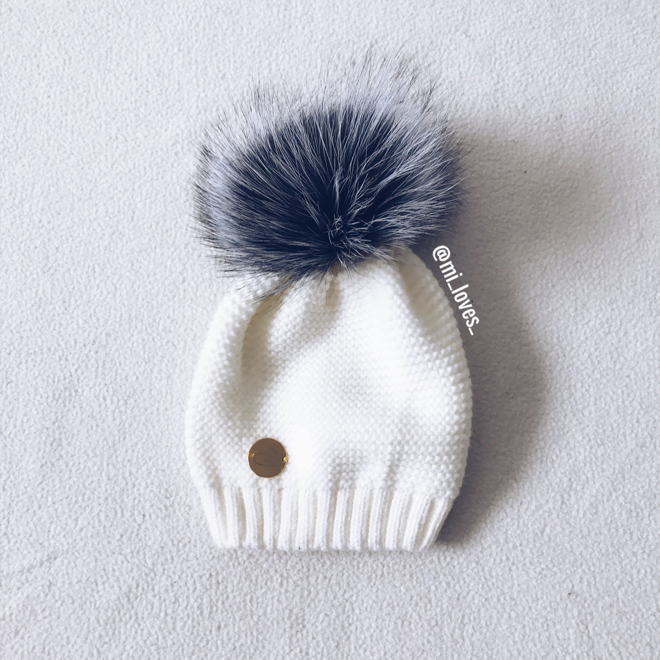 MILOVES Signature Single Pompom hat with Silver fur pompom.