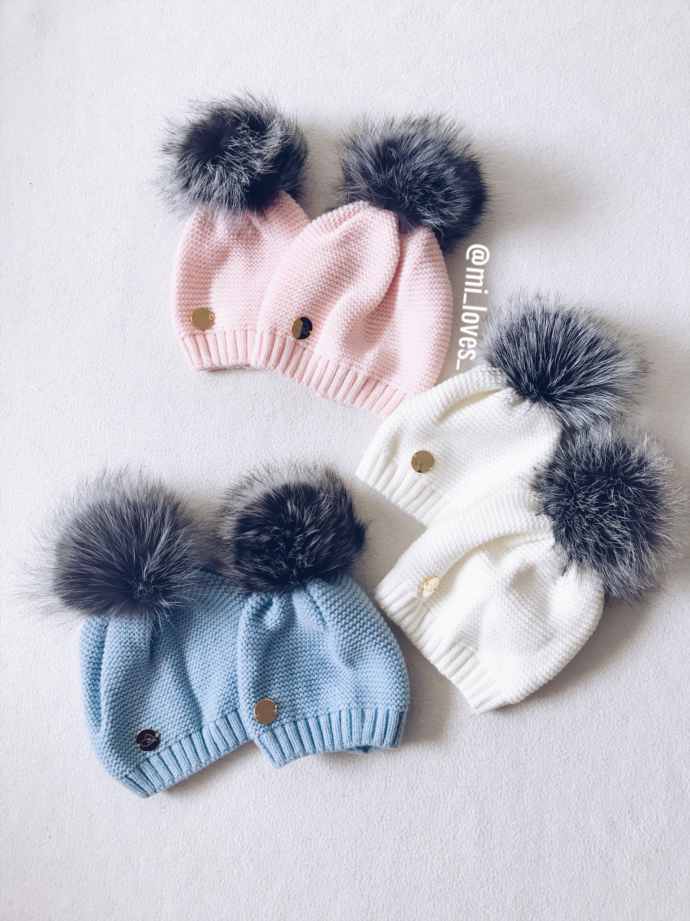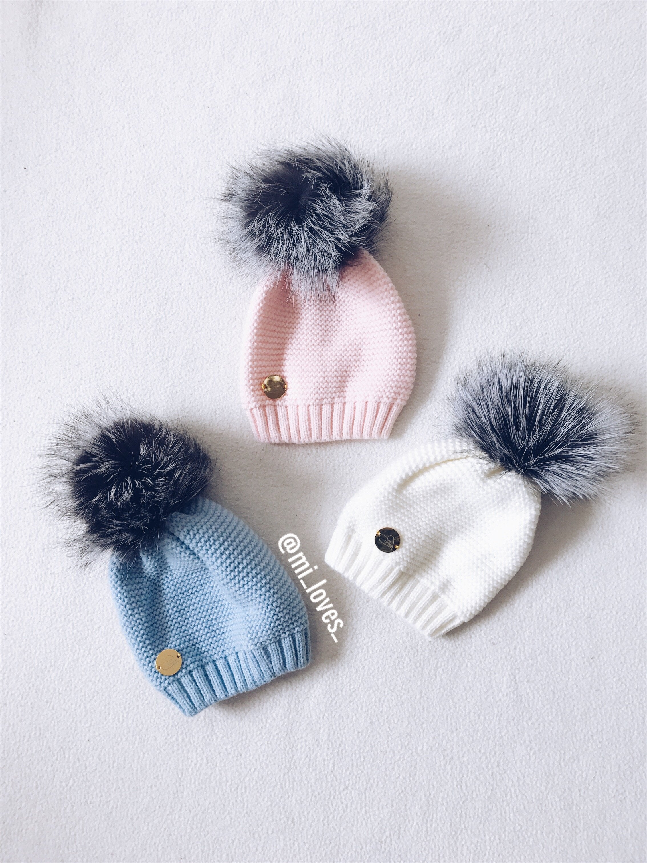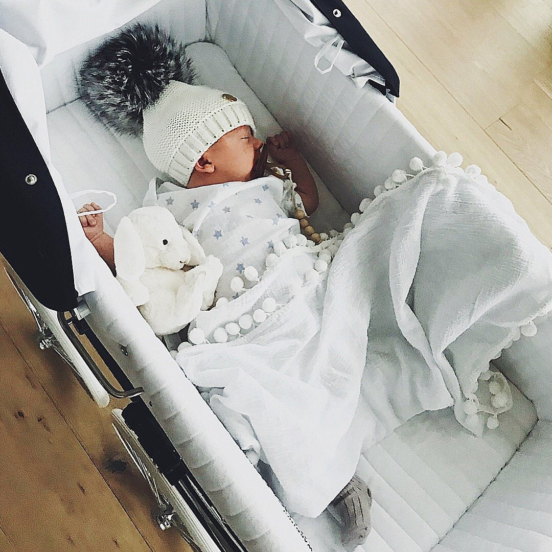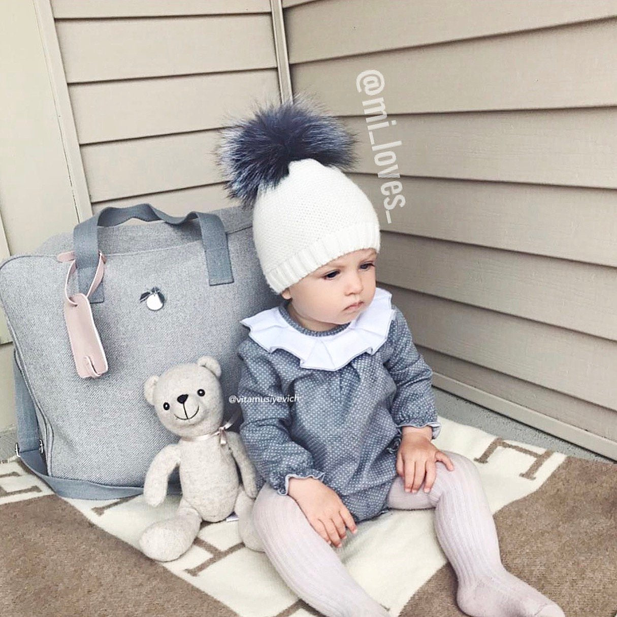 MILOVES Signature Single Pompom hat with Silver fur pompom.