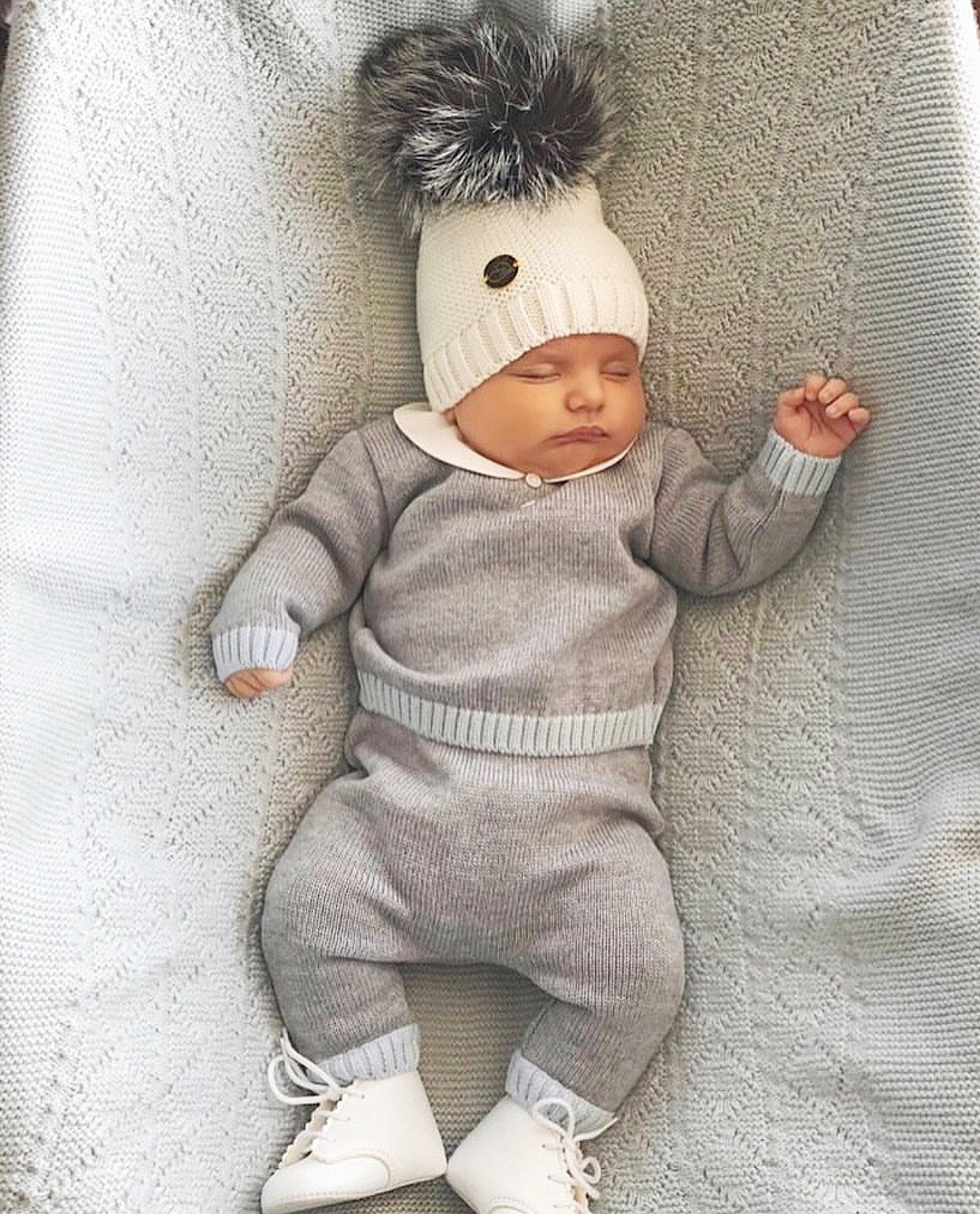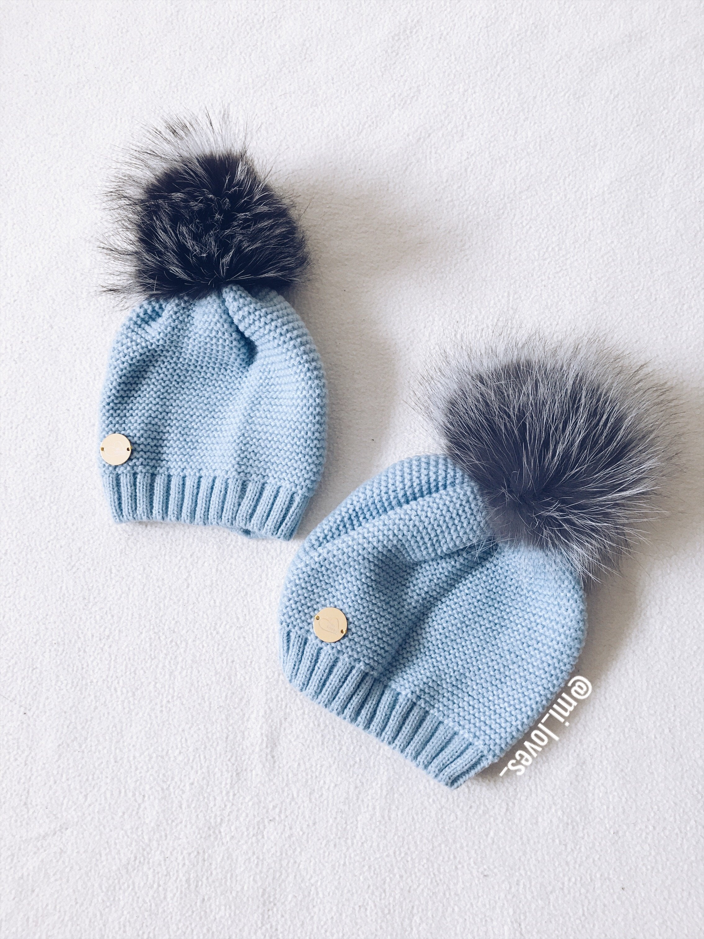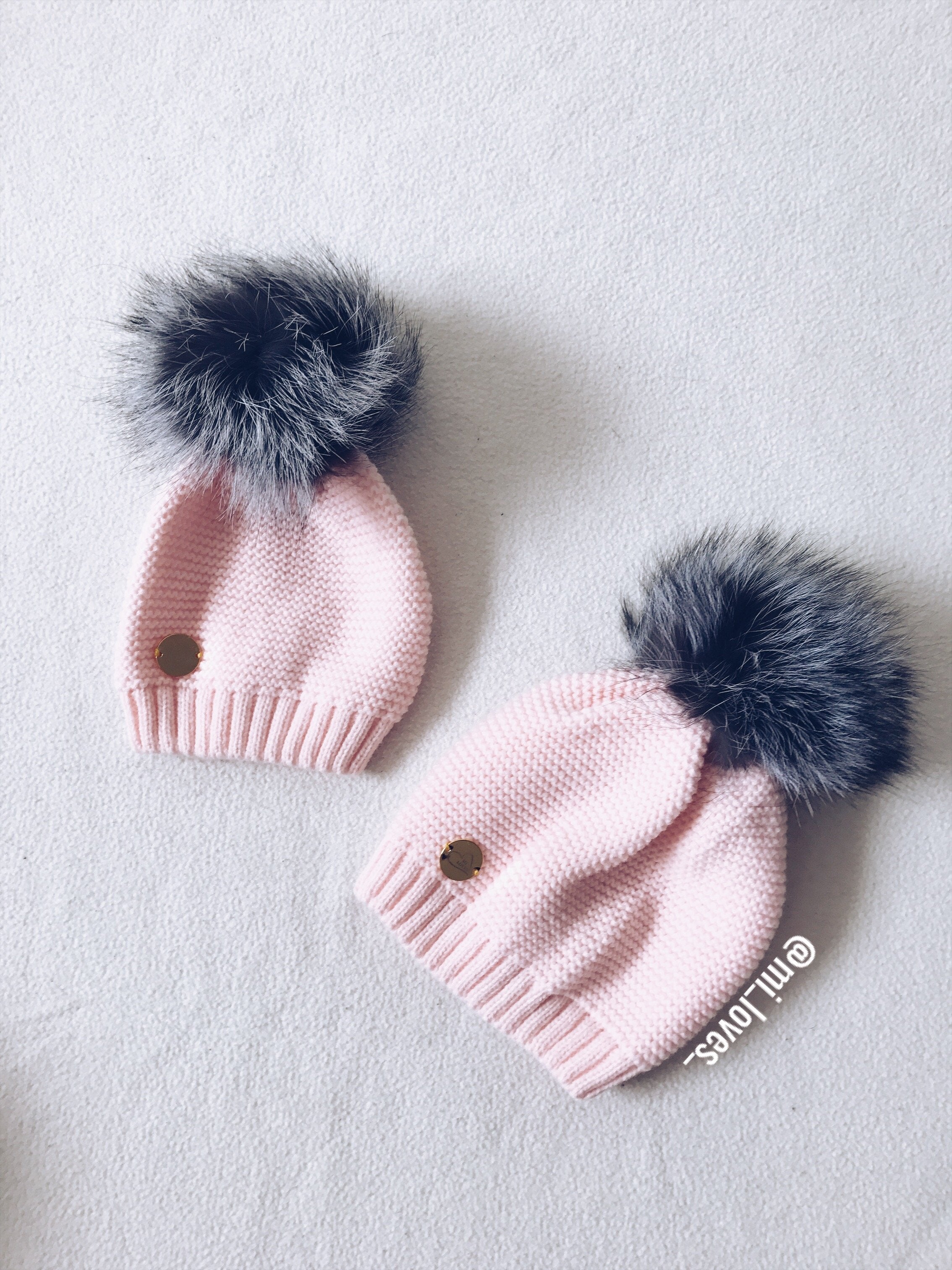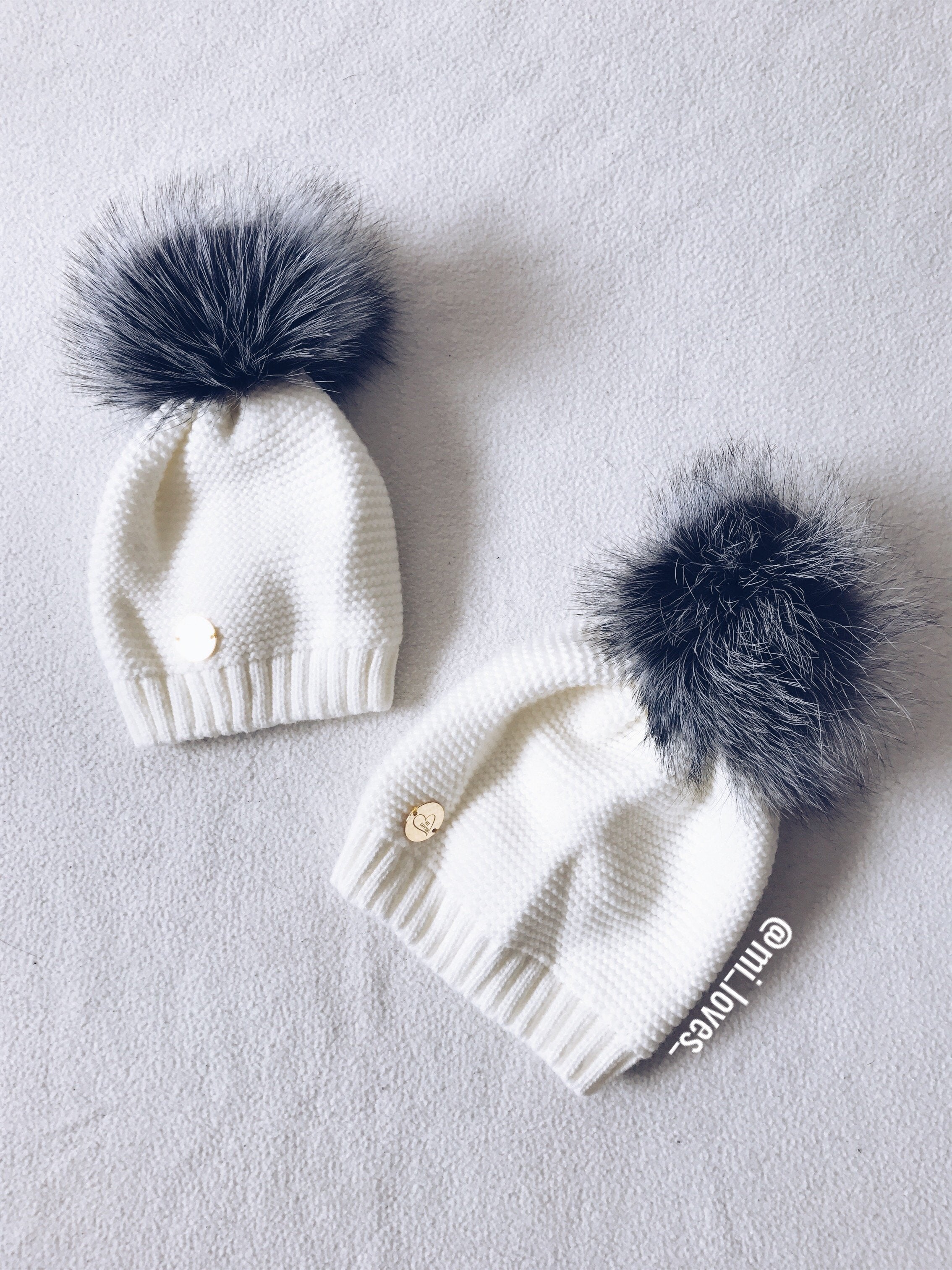 MILOVES Signature Single Pompom hat with Silver fur pompom.