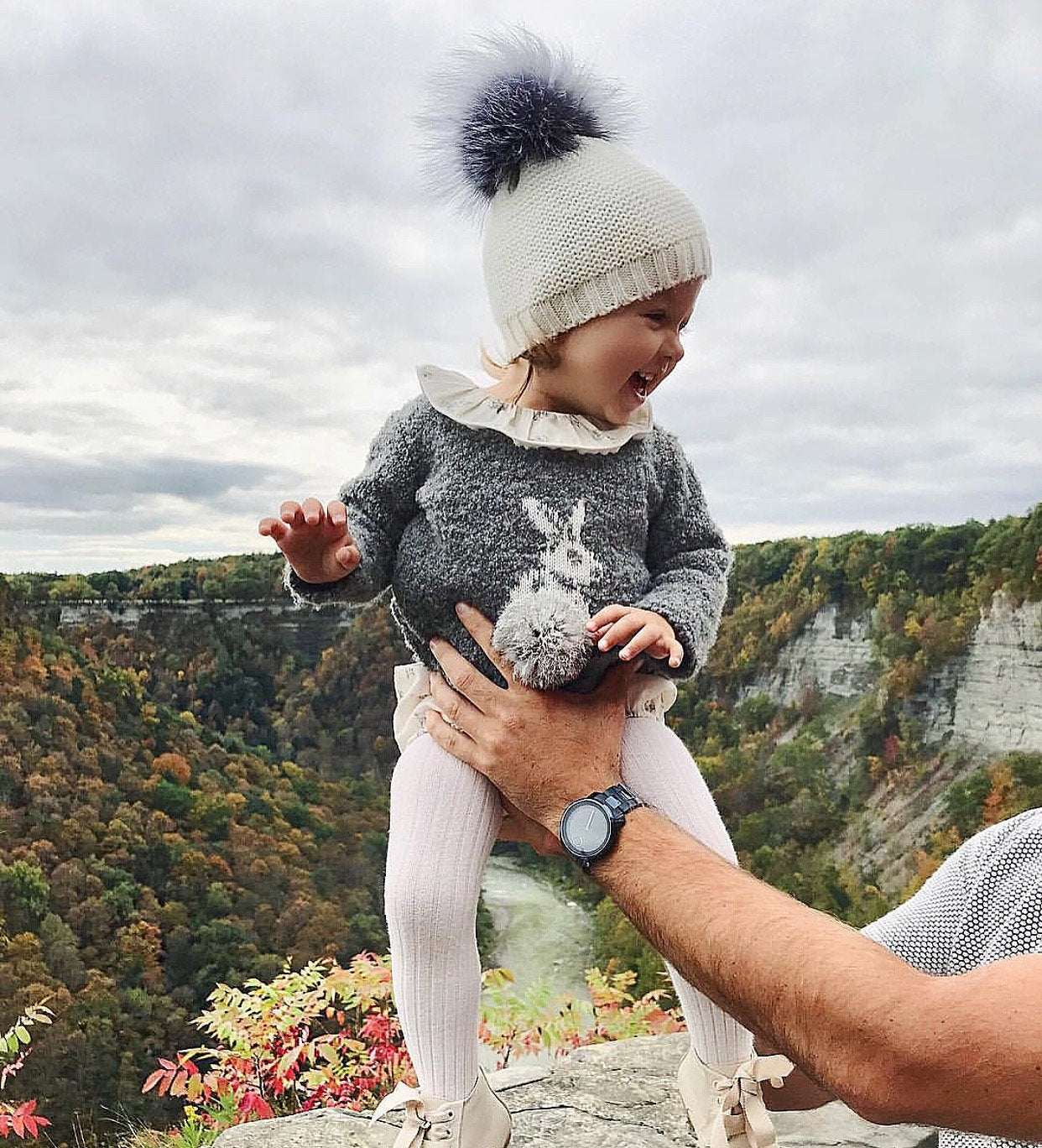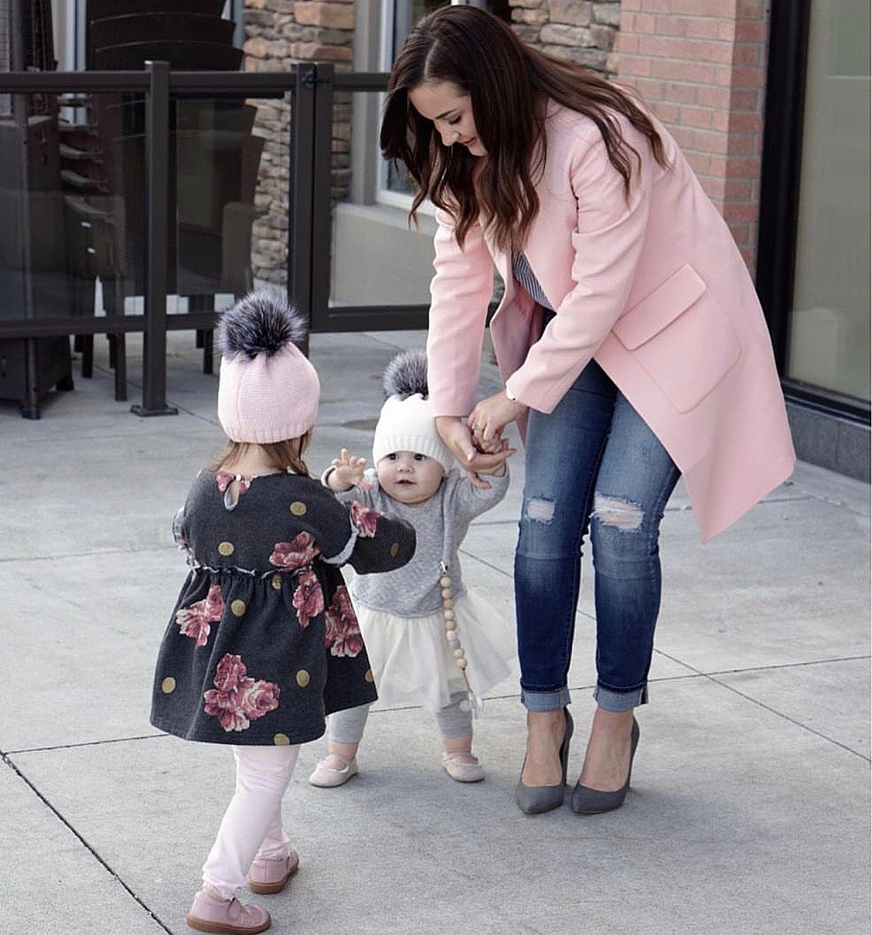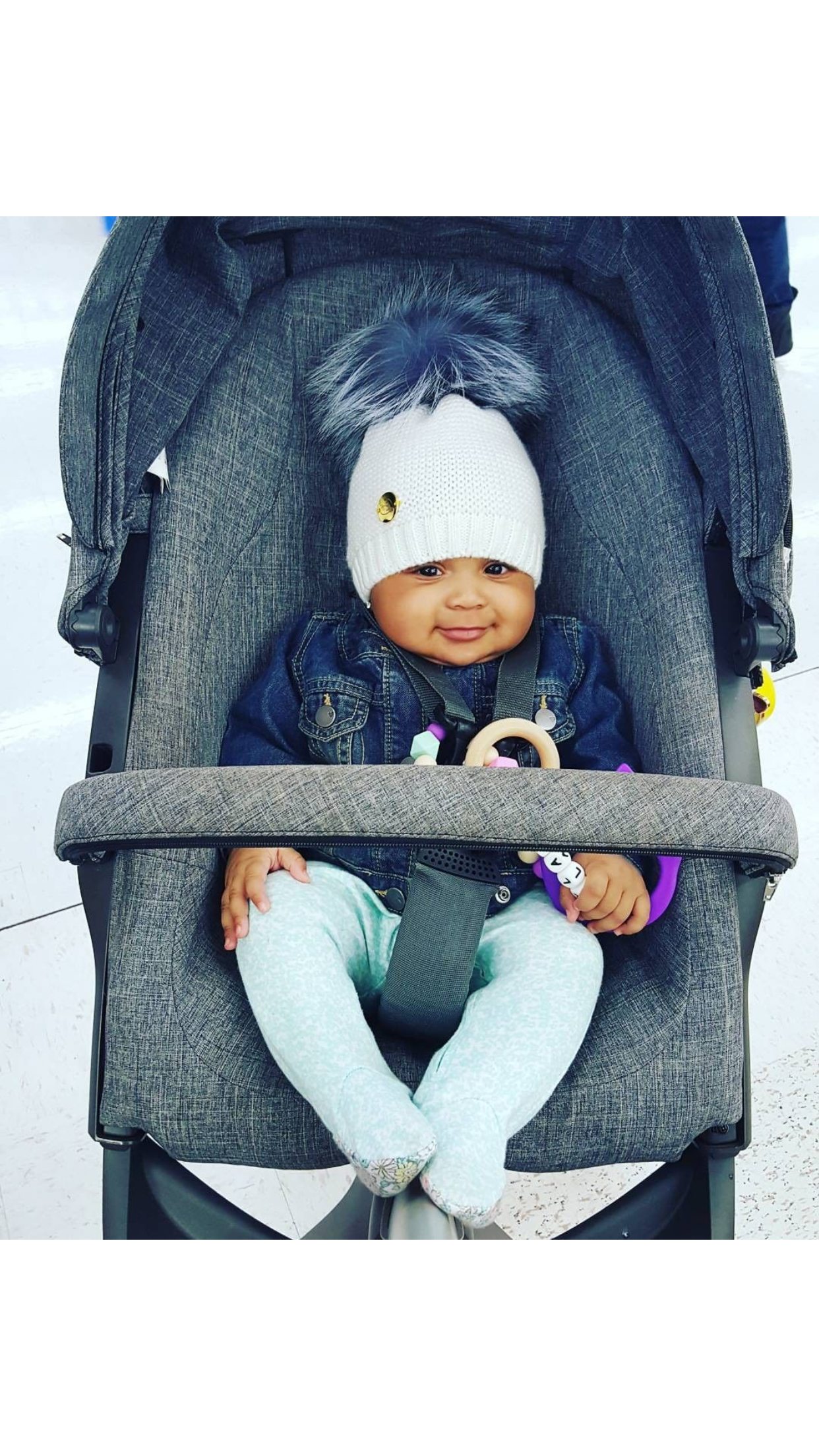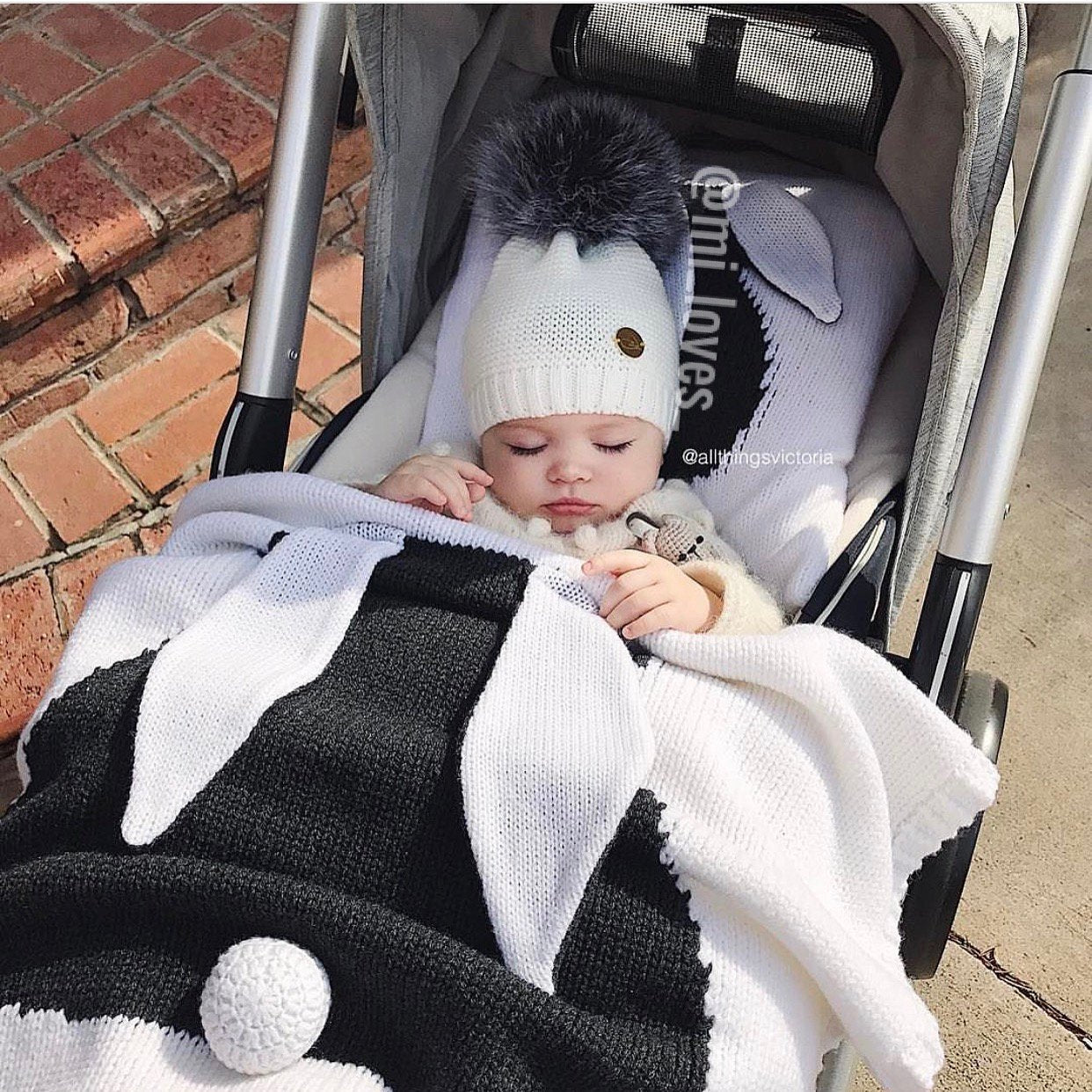 MILOVES Signature Single Pompom hat with Silver fur pompom.
