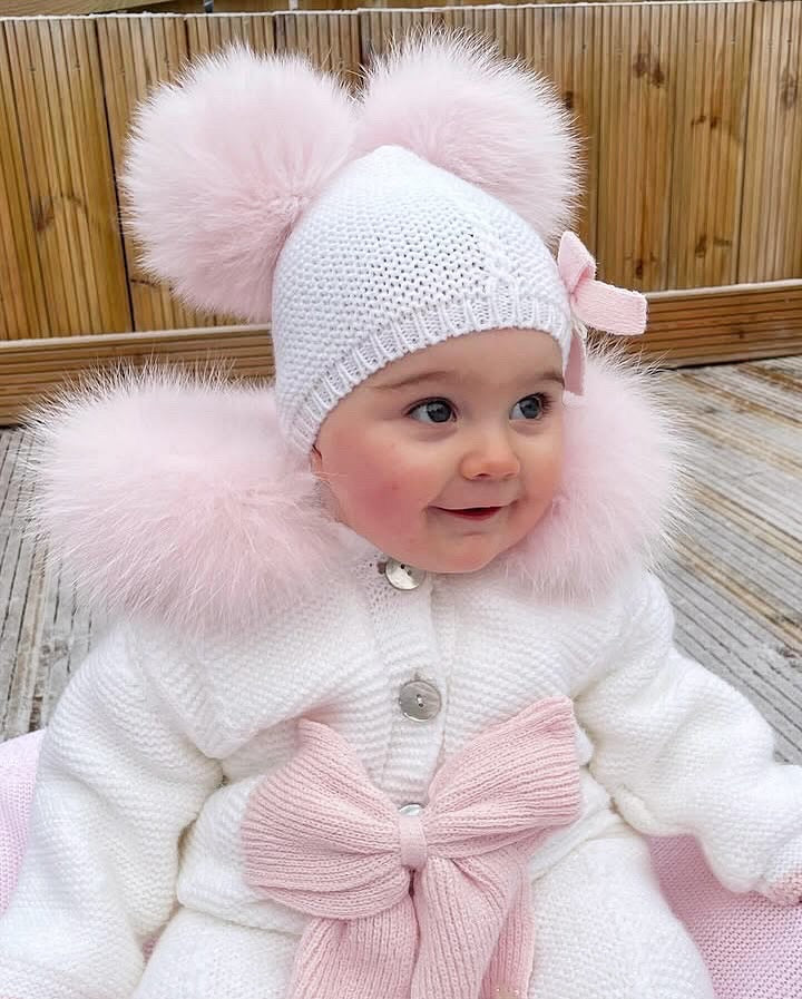 Ivory MI LOVES SIGNATURE Little Doll Double pompom hat.