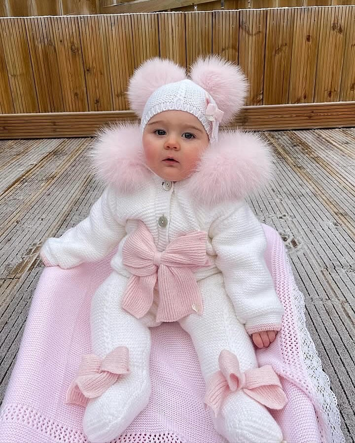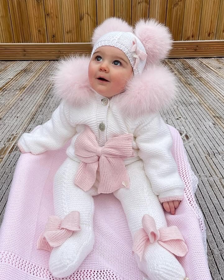 Matching Pramsuit and Cardigan (Sold Separately )also available on the website.